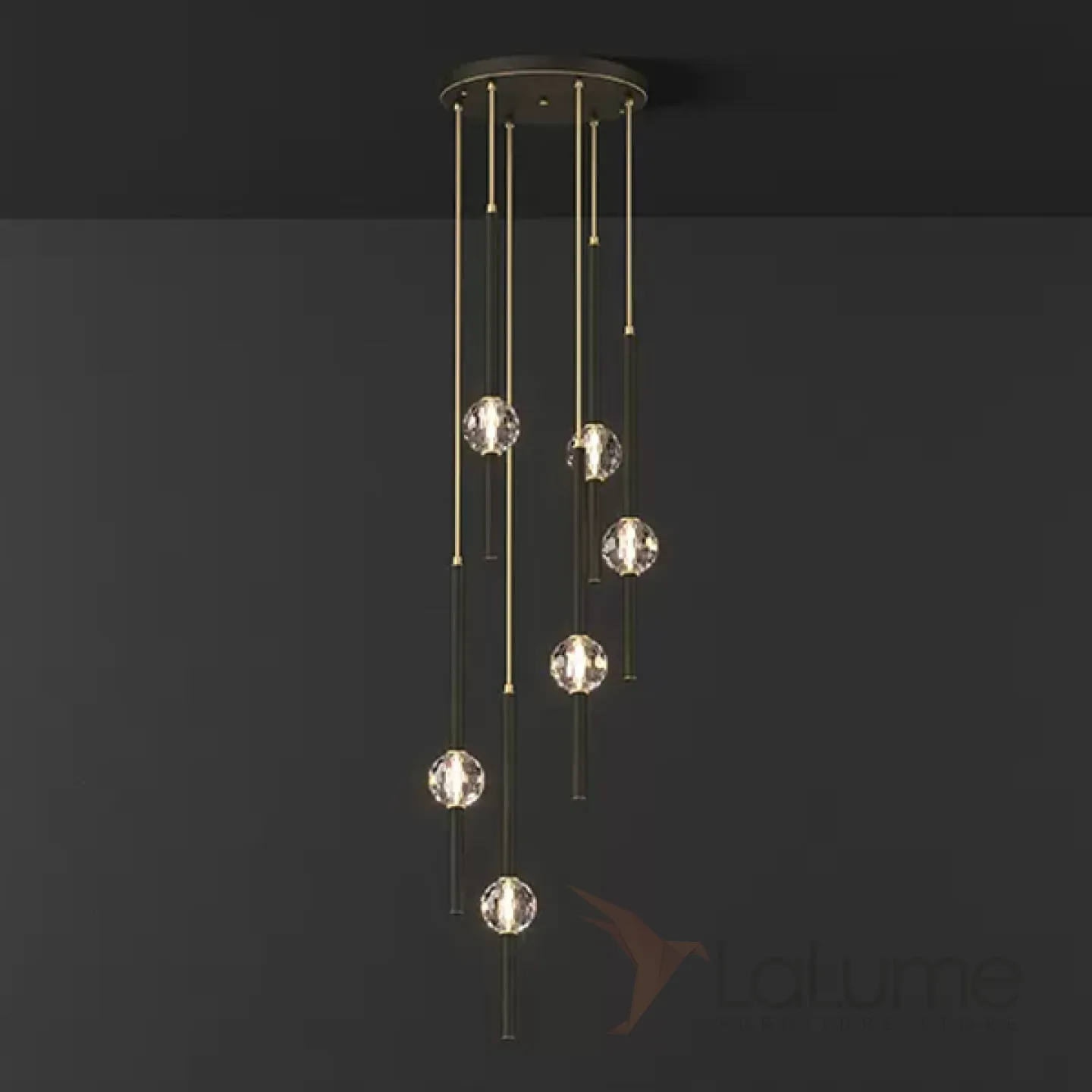 Готовая комбинация подвесных светодиодных светильников с хрустальными шарообразными плафонами SOCRATES COMBO D30 L6 Black