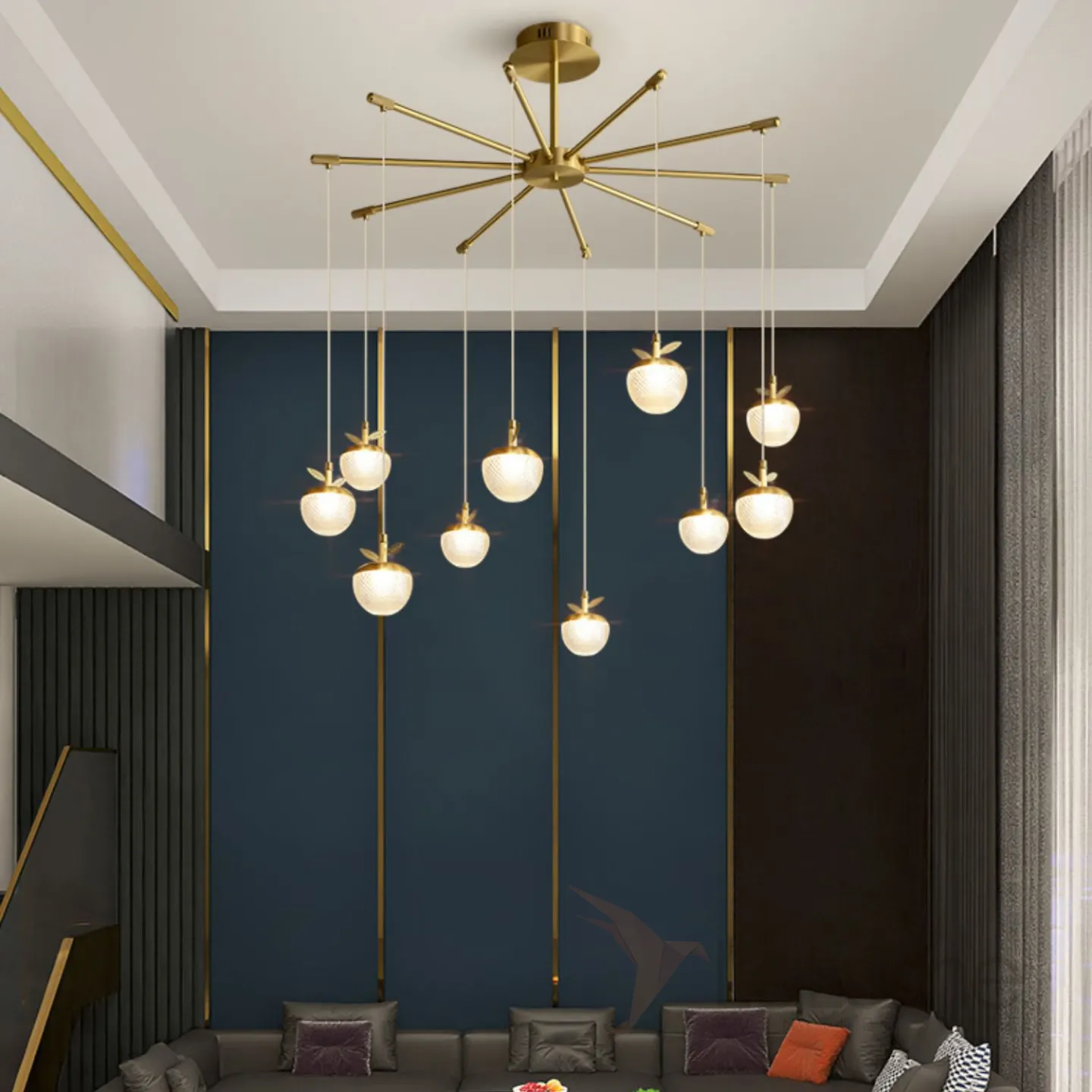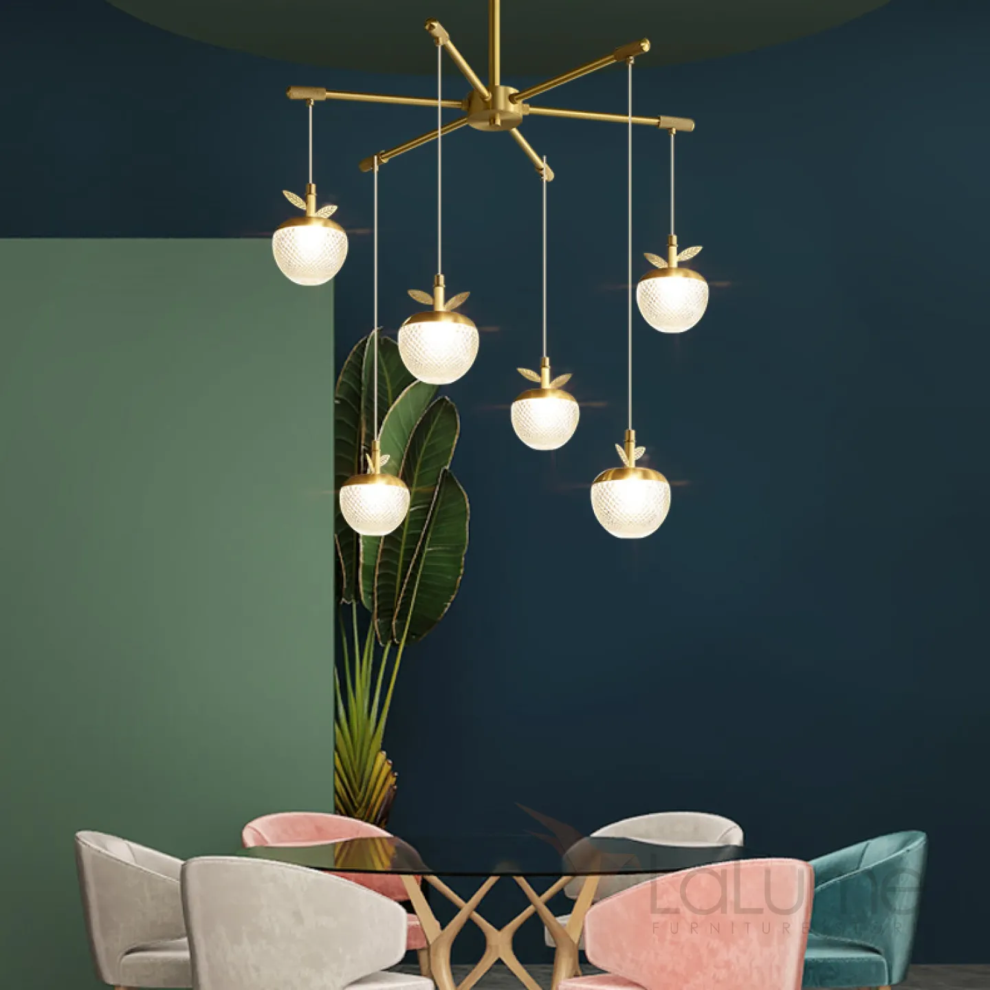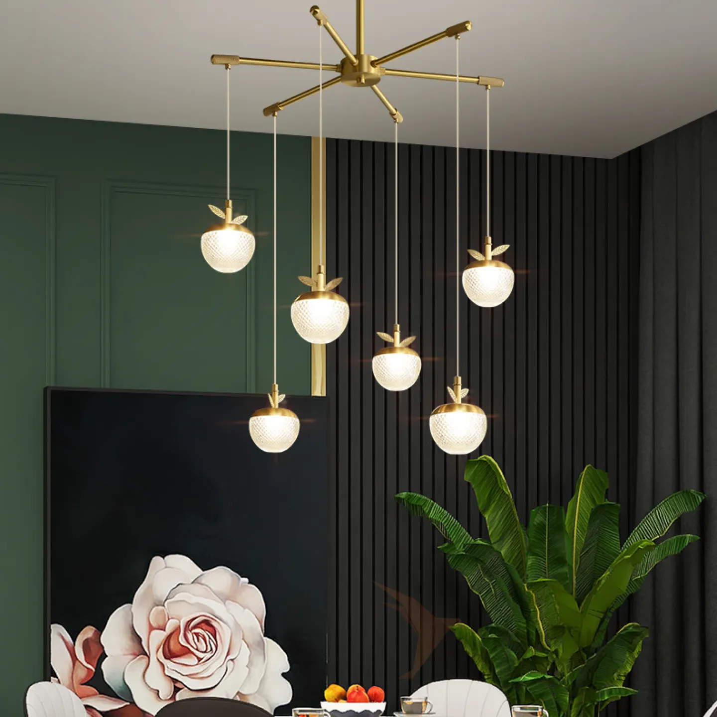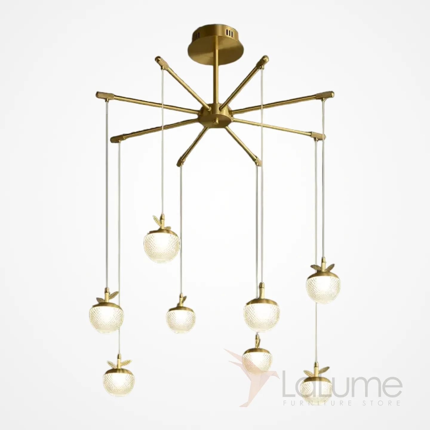 Готовая комбинация подвесных светодиодных светильников c шарообразными рельефными плафонами, стилизованными под ягоды с латунными листьями JUNONA COMBO D85