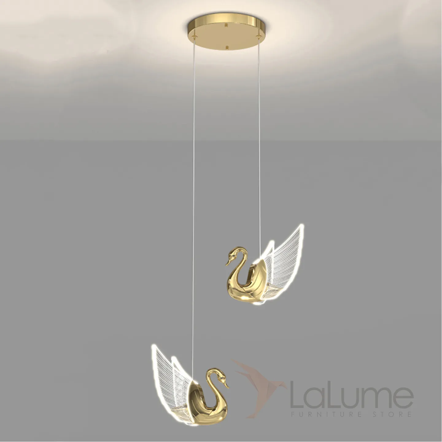 Готовая комбинация подвесных светодиодных светильников с плафонами в виде лебедей со светящимися крыльями BIRDIE COMBO D22
