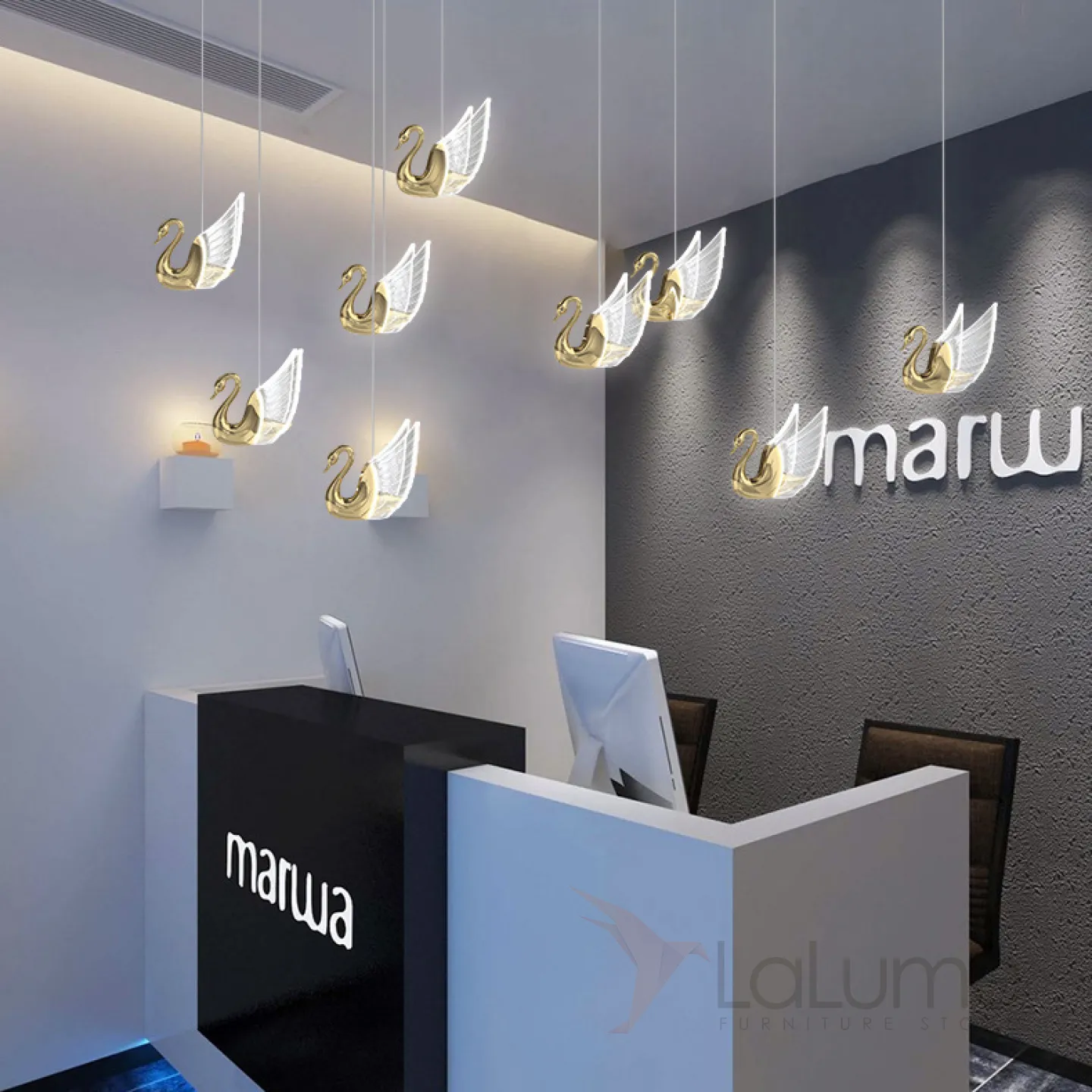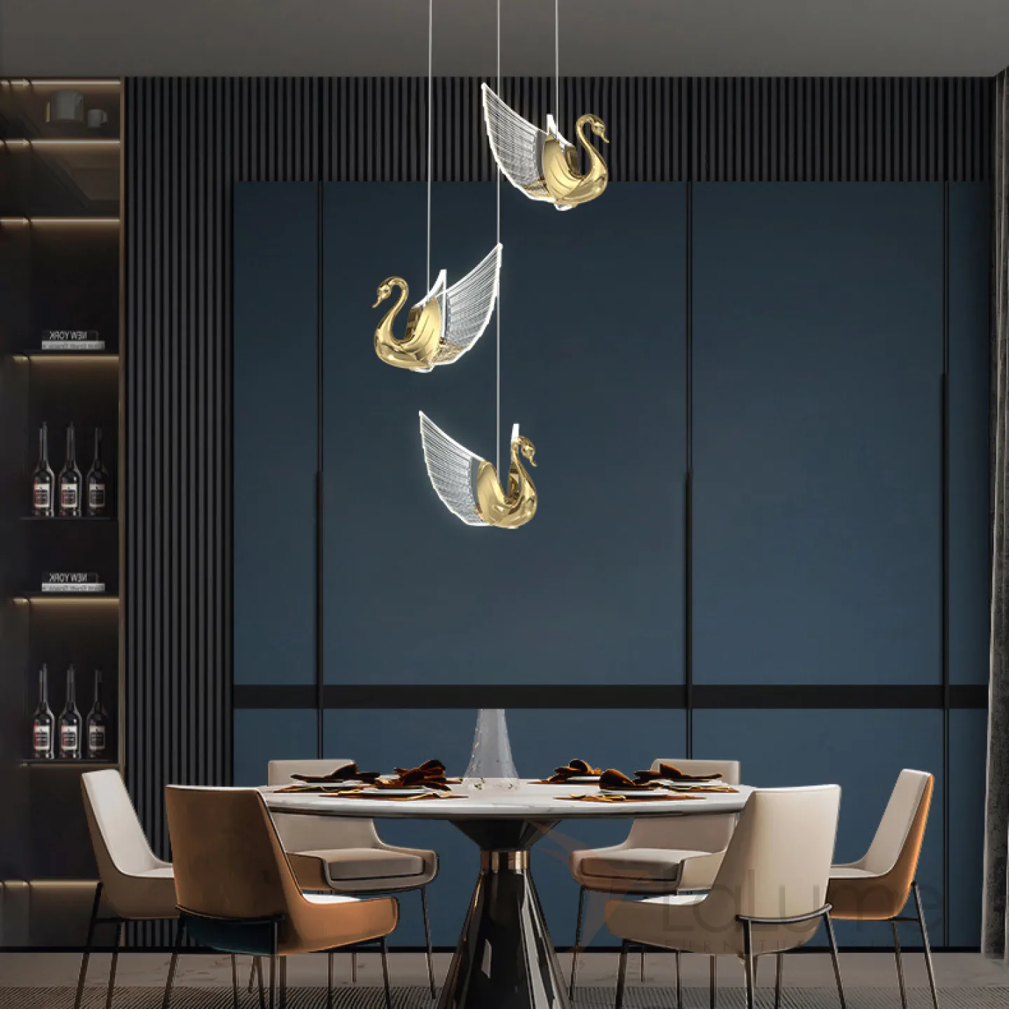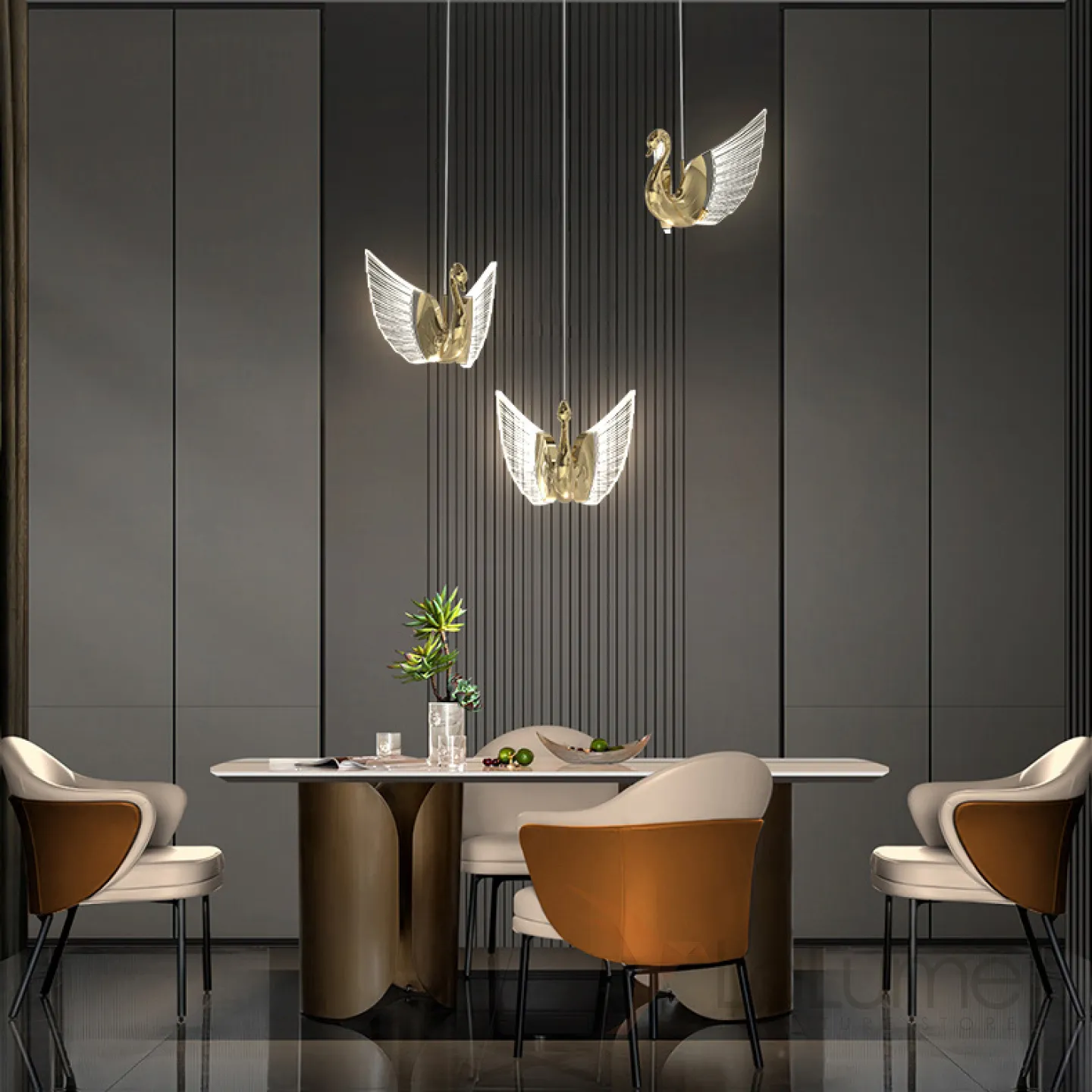 Готовая комбинация подвесных светодиодных светильников с плафонами в виде лебедей со светящимися крыльями BIRDIE COMBO D45