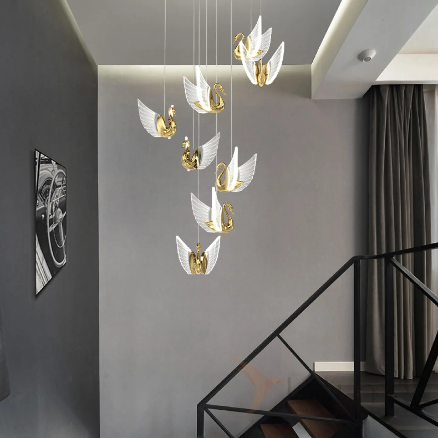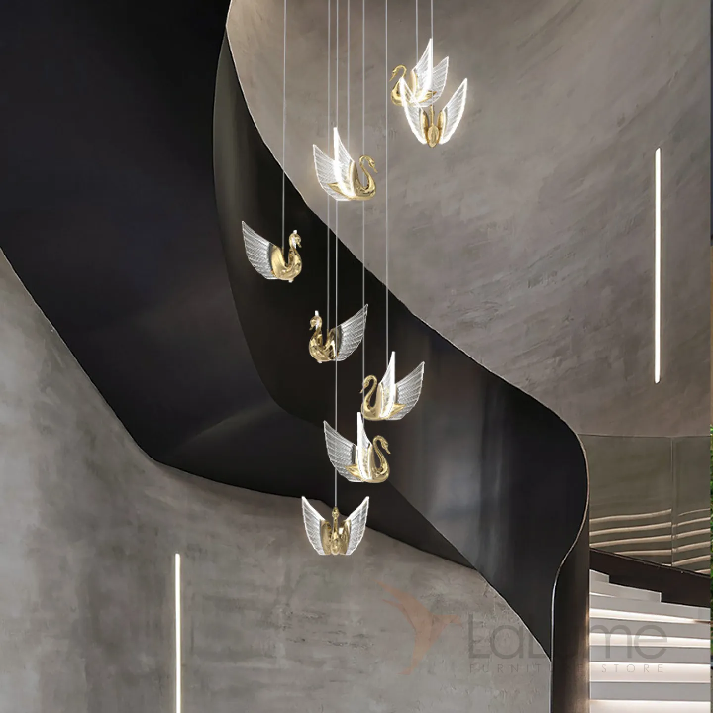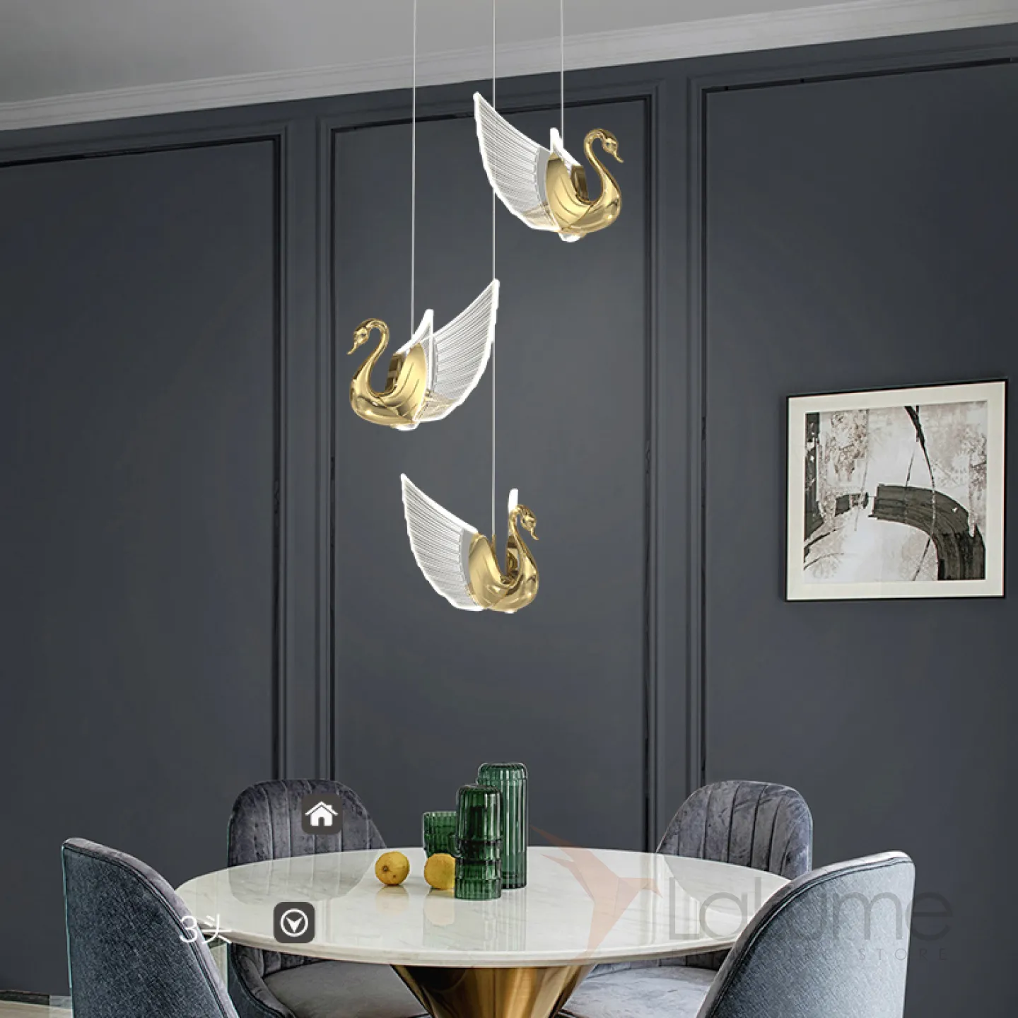 Готовая комбинация подвесных светодиодных светильников с плафонами в виде лебедей со светящимися крыльями BIRDIE COMBO D45