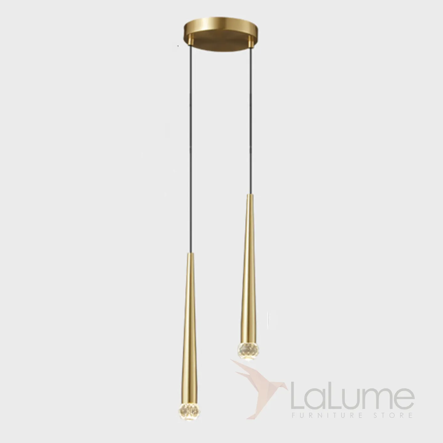 Готовая комбинация подвесных светодиодных светильников с плафонами удлиненной конической формы и декором в виде хрустальных камней MAGRIT LUX MORE L2 Brass