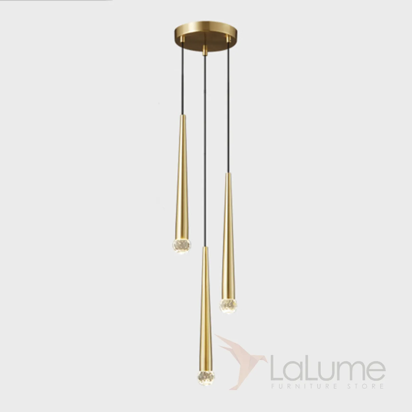 Готовая комбинация подвесных светодиодных светильников с плафонами удлиненной конической формы и декором в виде хрустальных камней MAGRIT LUX MORE L3 Brass