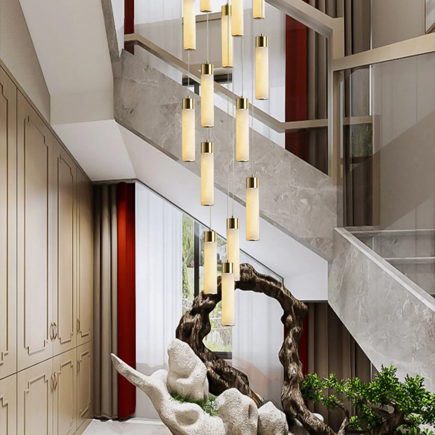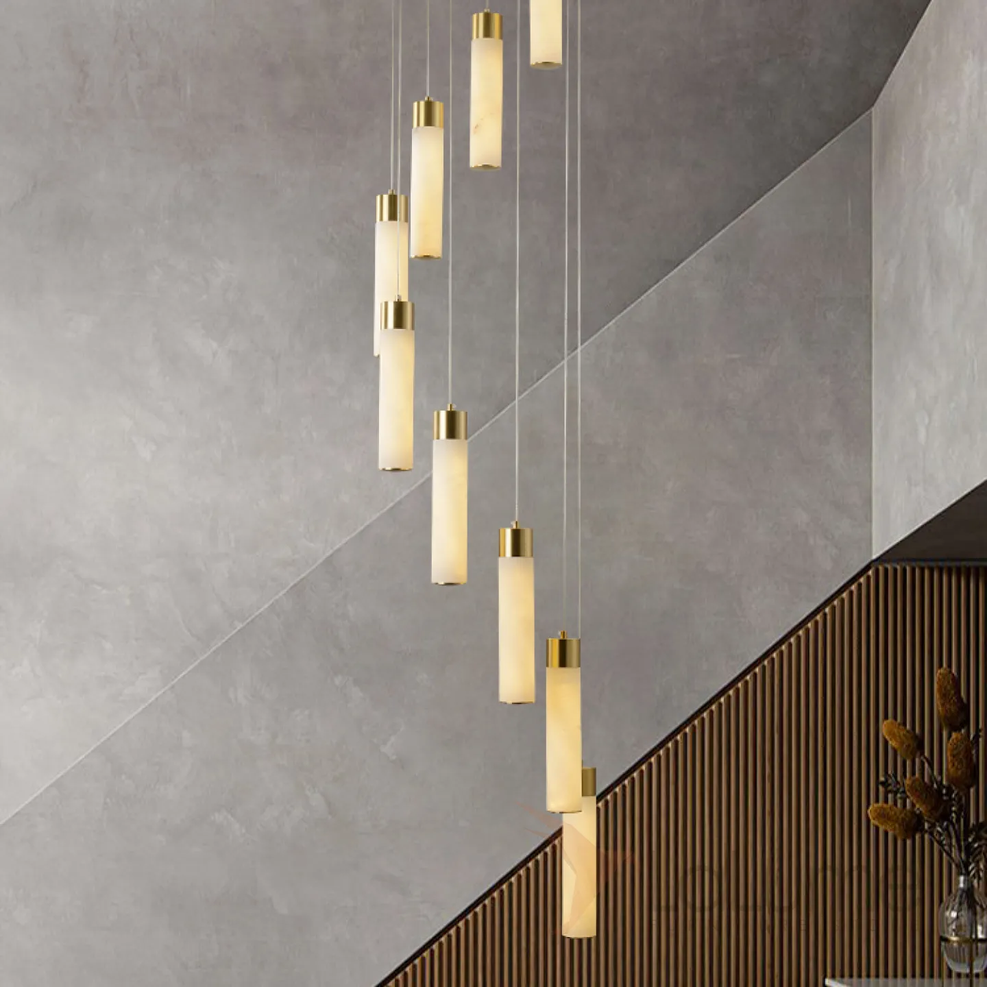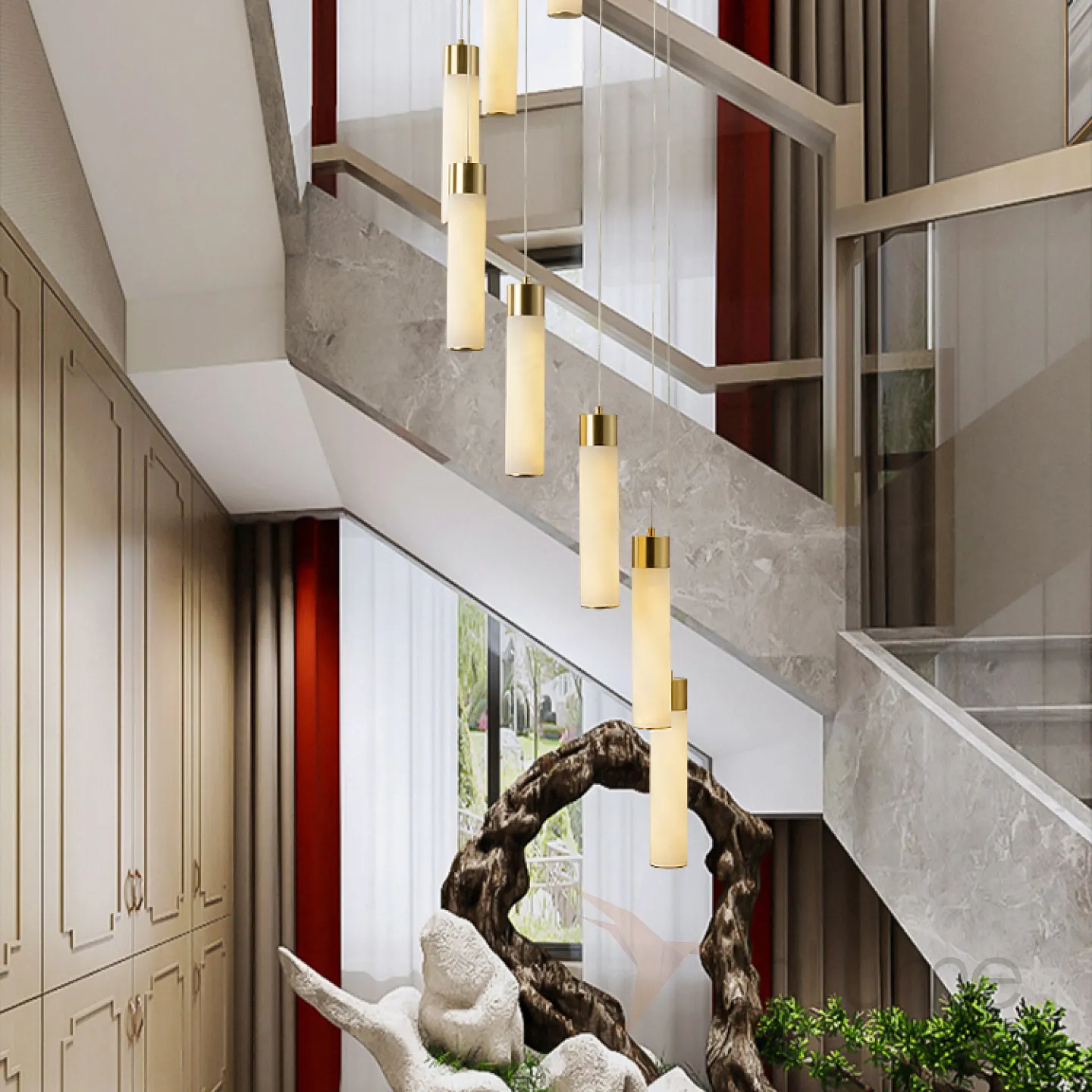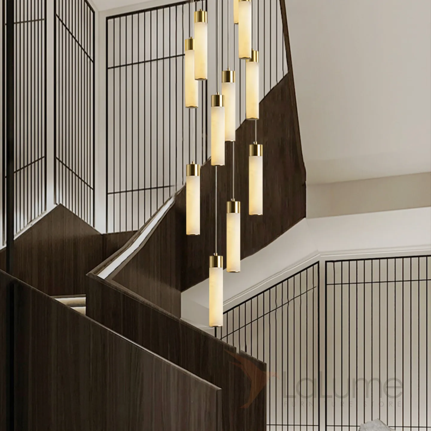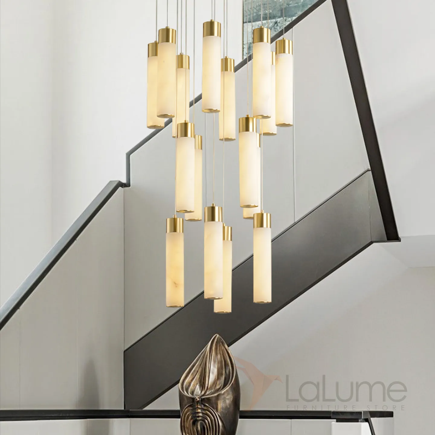 Готовая комбинация подвесных светодиодных светильников c цилиндрическими плафонами из натурального белого мрамора COMTESSE D60