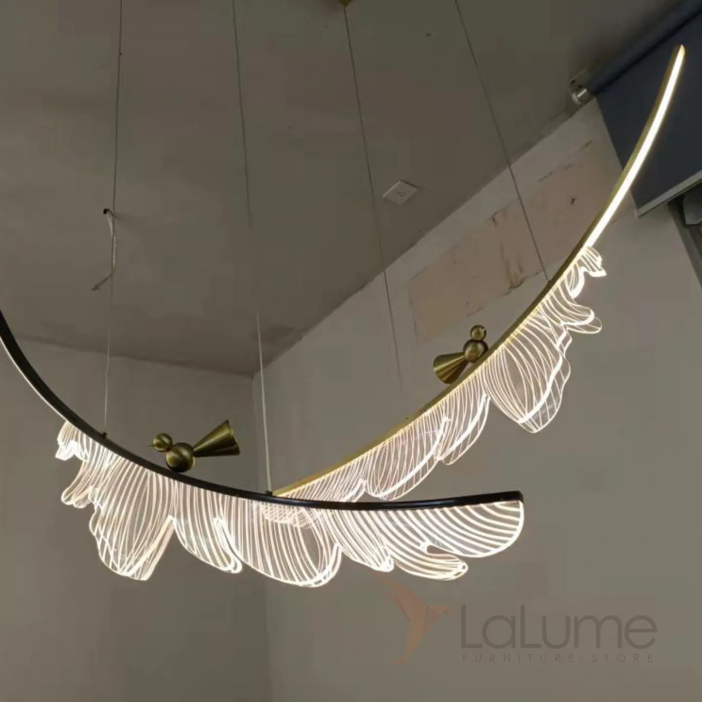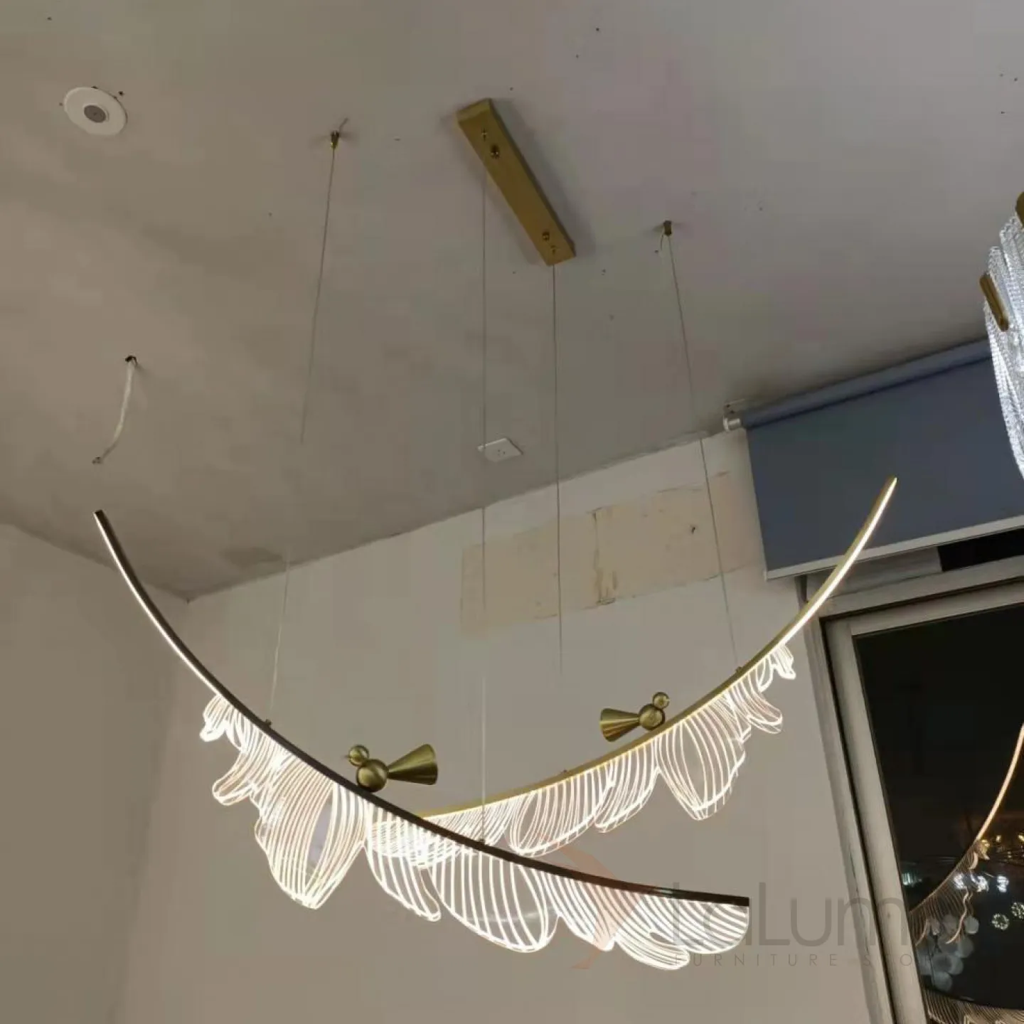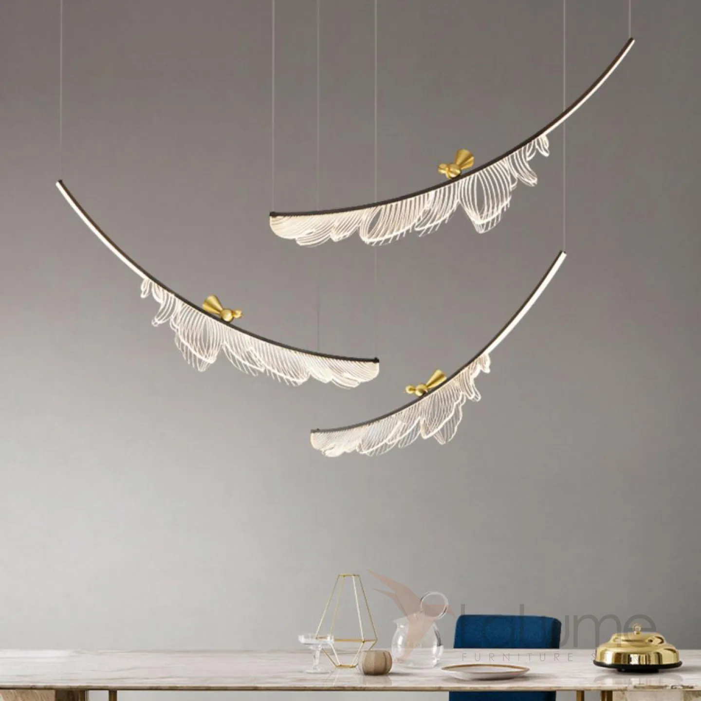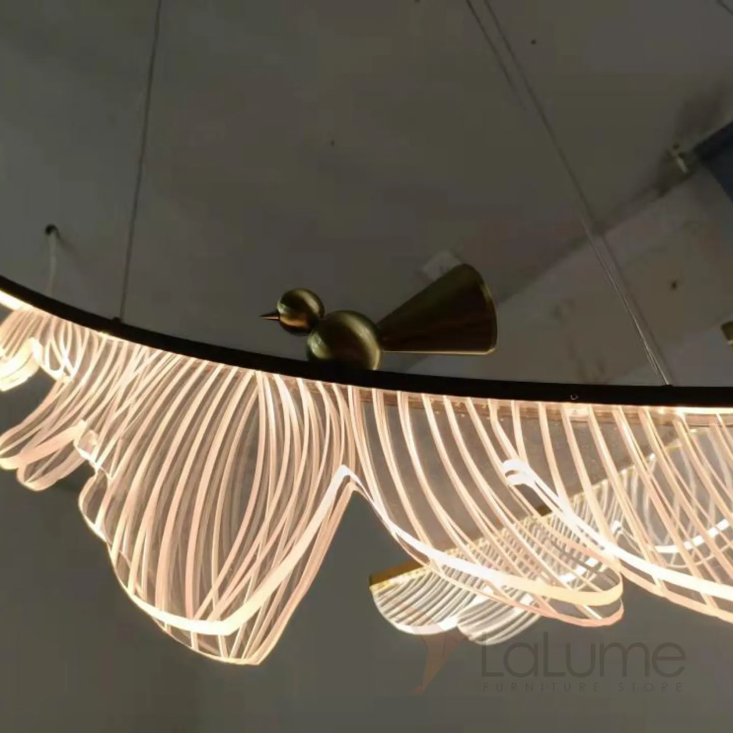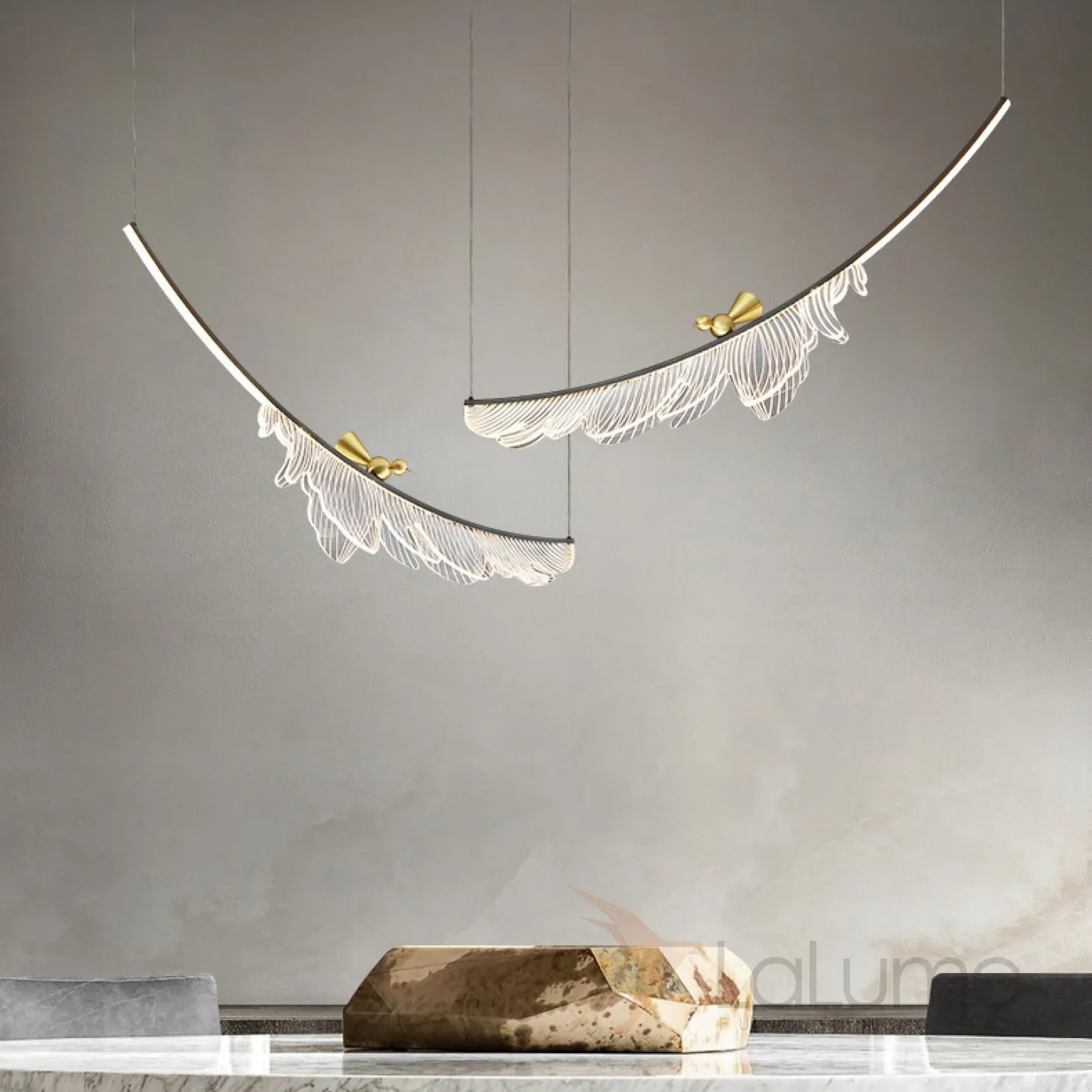 Готовая комбинация подвесных светодиодных светильников с листовидными плафонами и декоративными птицами из металла COLIBRI COMBO L157