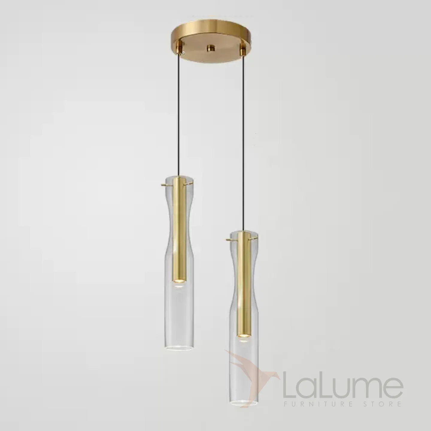 Готовая комбинация подвесных светодиодных светильников с двумя цилиндрическими плафонами в стеклянном корпусе в форме песочных часов MANI DUO Brass