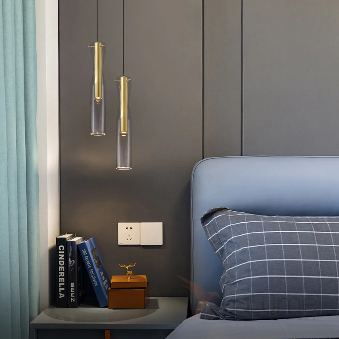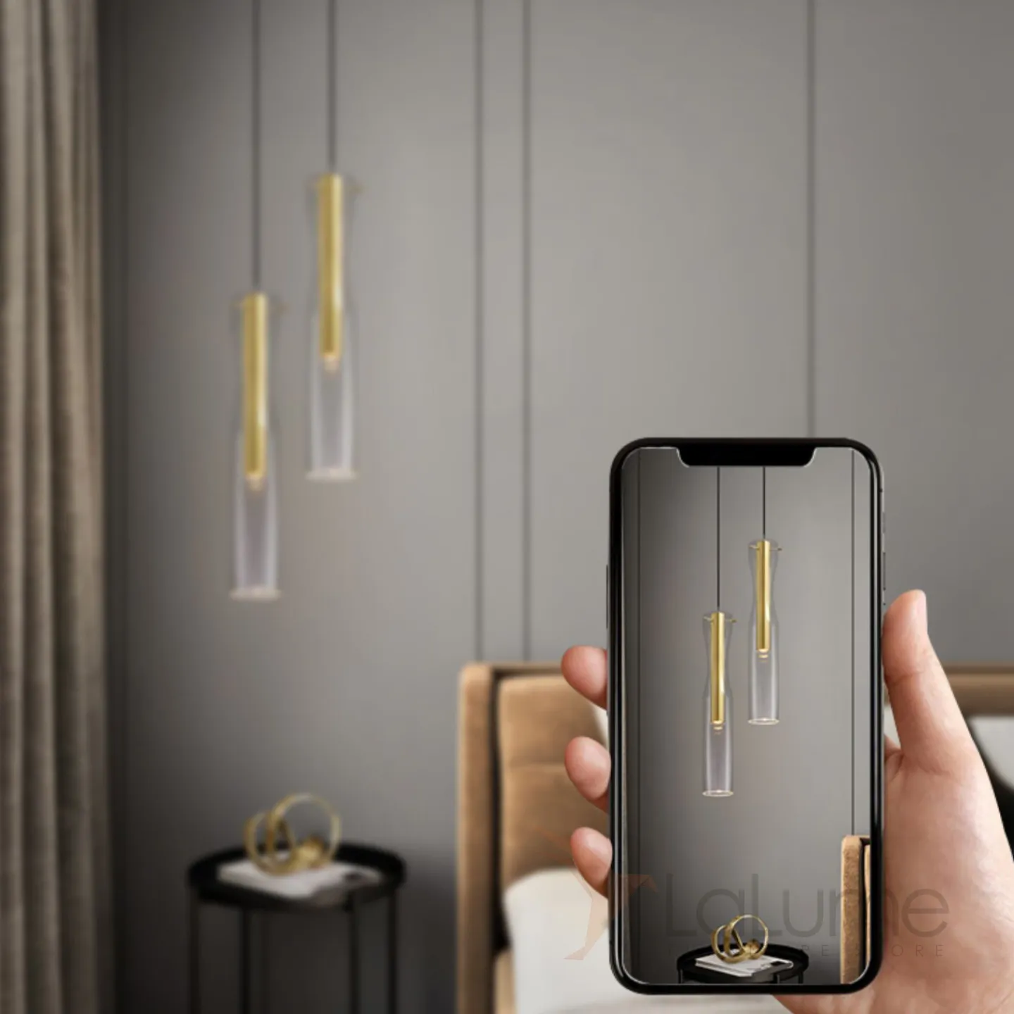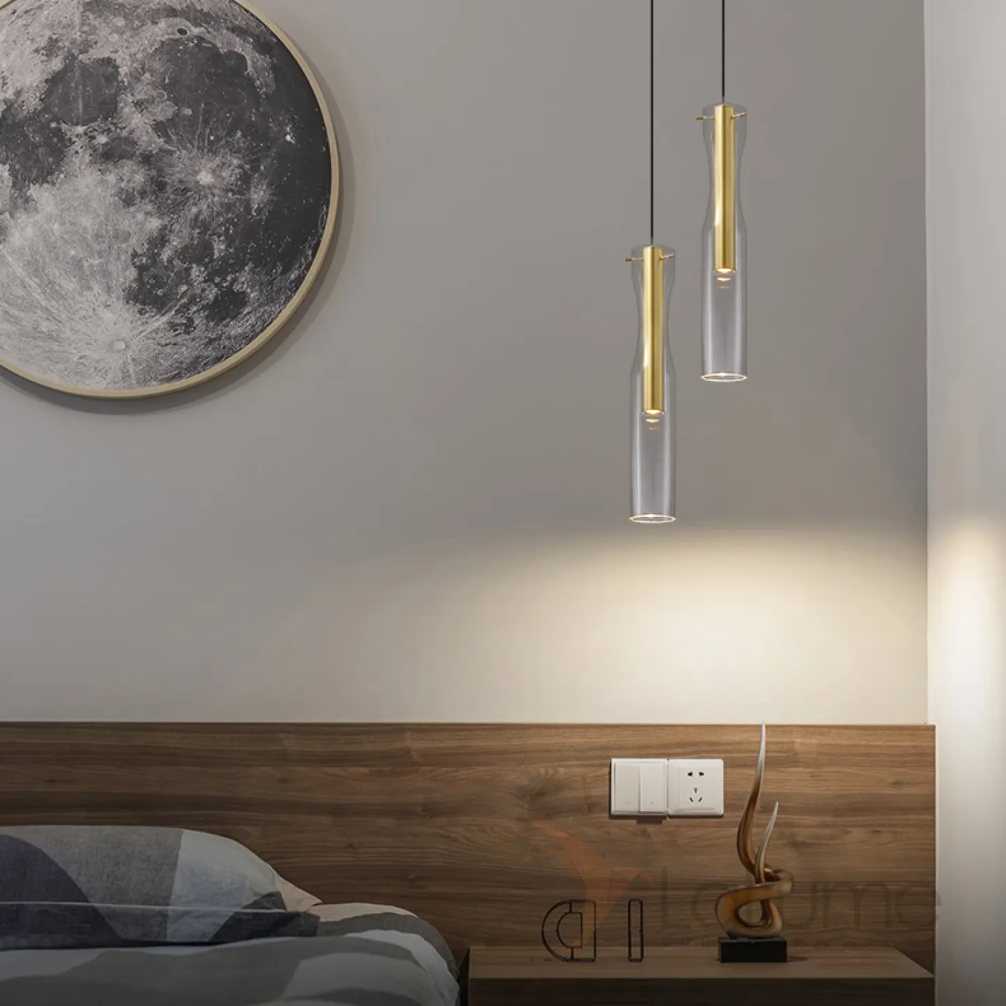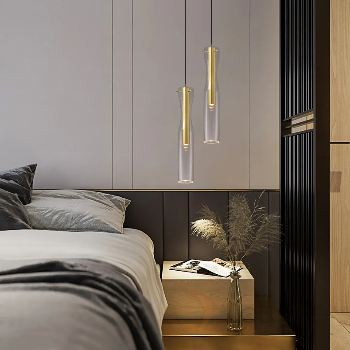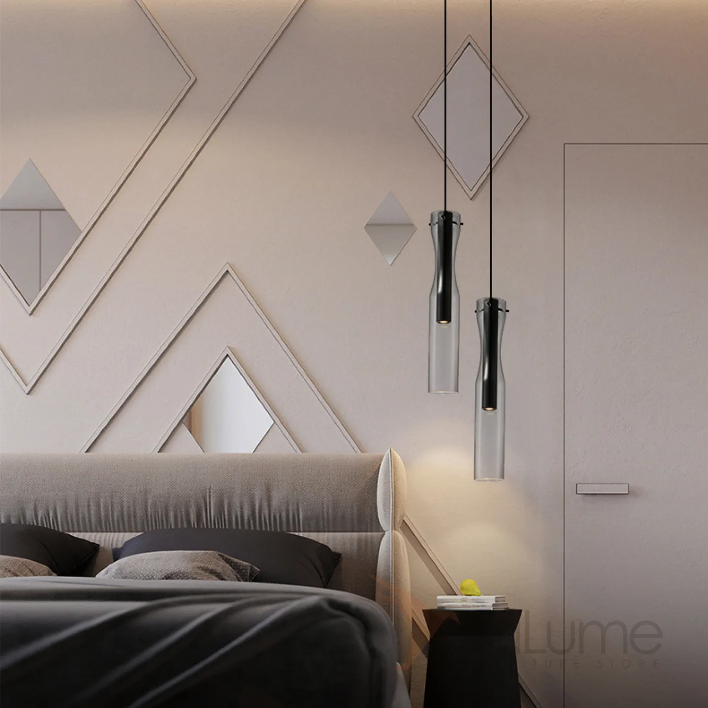 Готовая комбинация подвесных светодиодных светильников с двумя цилиндрическими плафонами в стеклянном корпусе в форме песочных часов MANI DUO Black