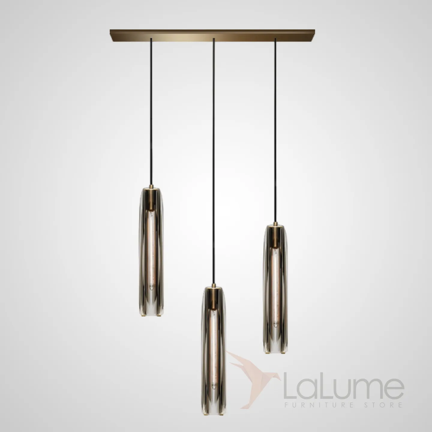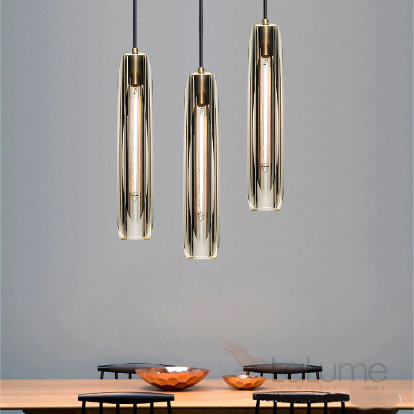 Готовая комбинация подвесных светильников c тремя вытянутыми цилиндрическими плафонами из ограненного хрусталя К9 ERFURT TRIO