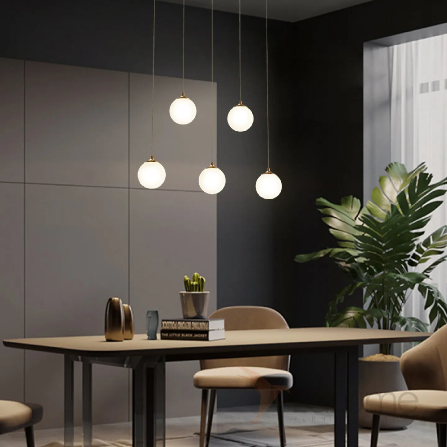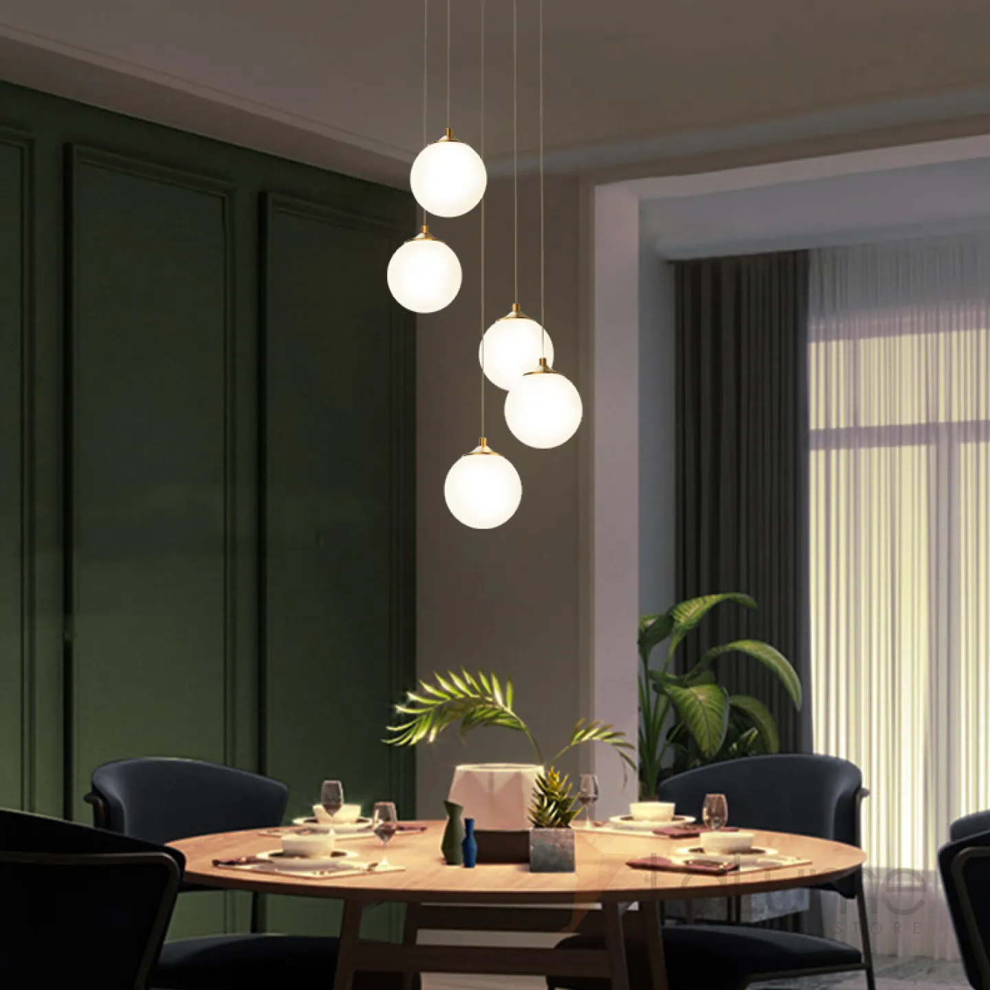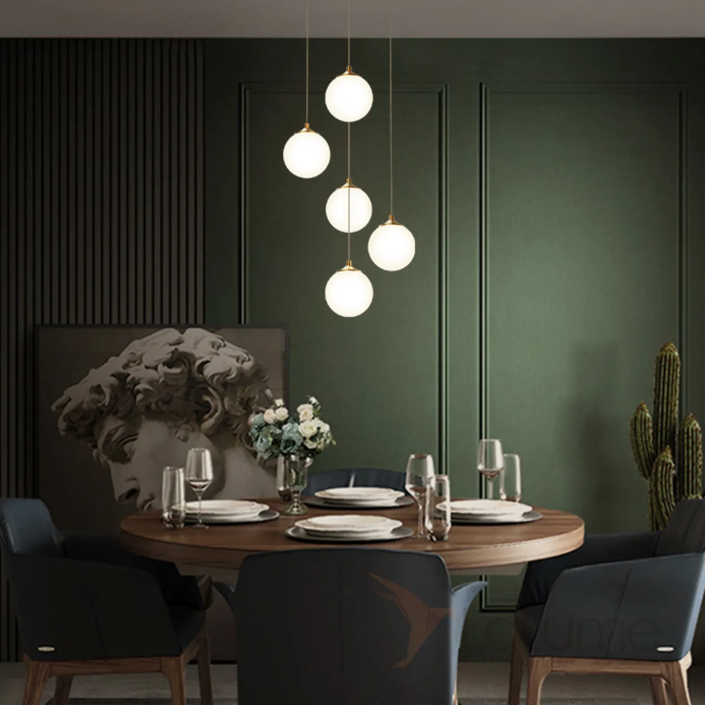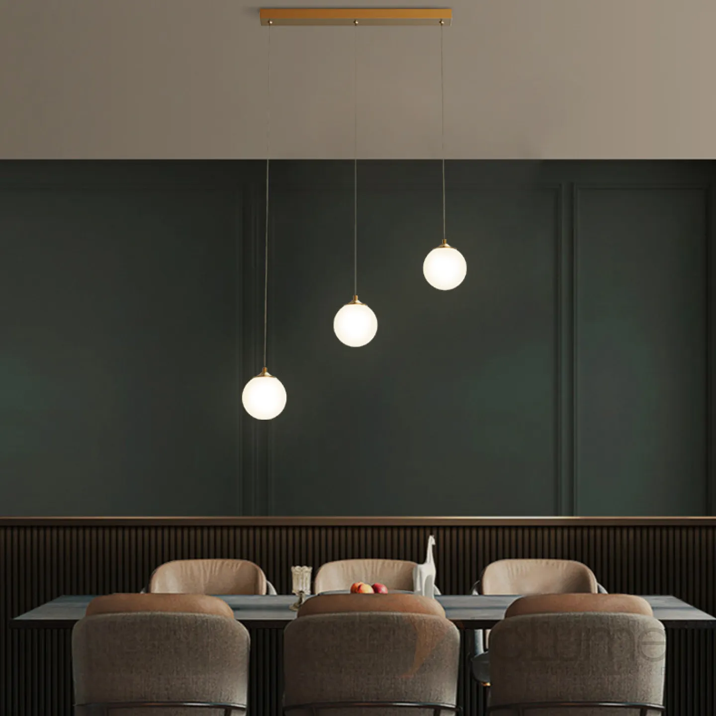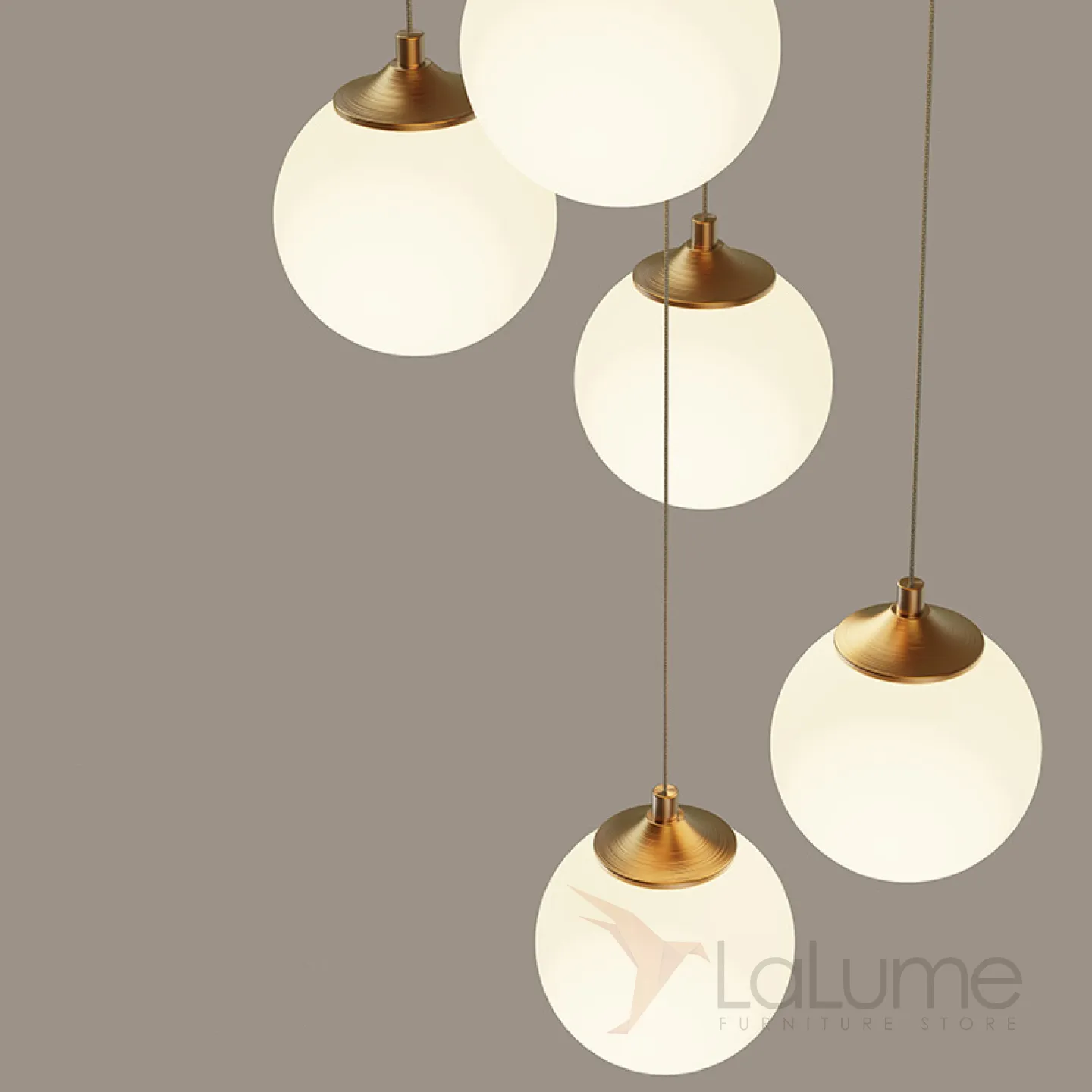 Готовая комбинация подвесных светильников с белыми матовыми плафонами шарообразной формы BARTA L62