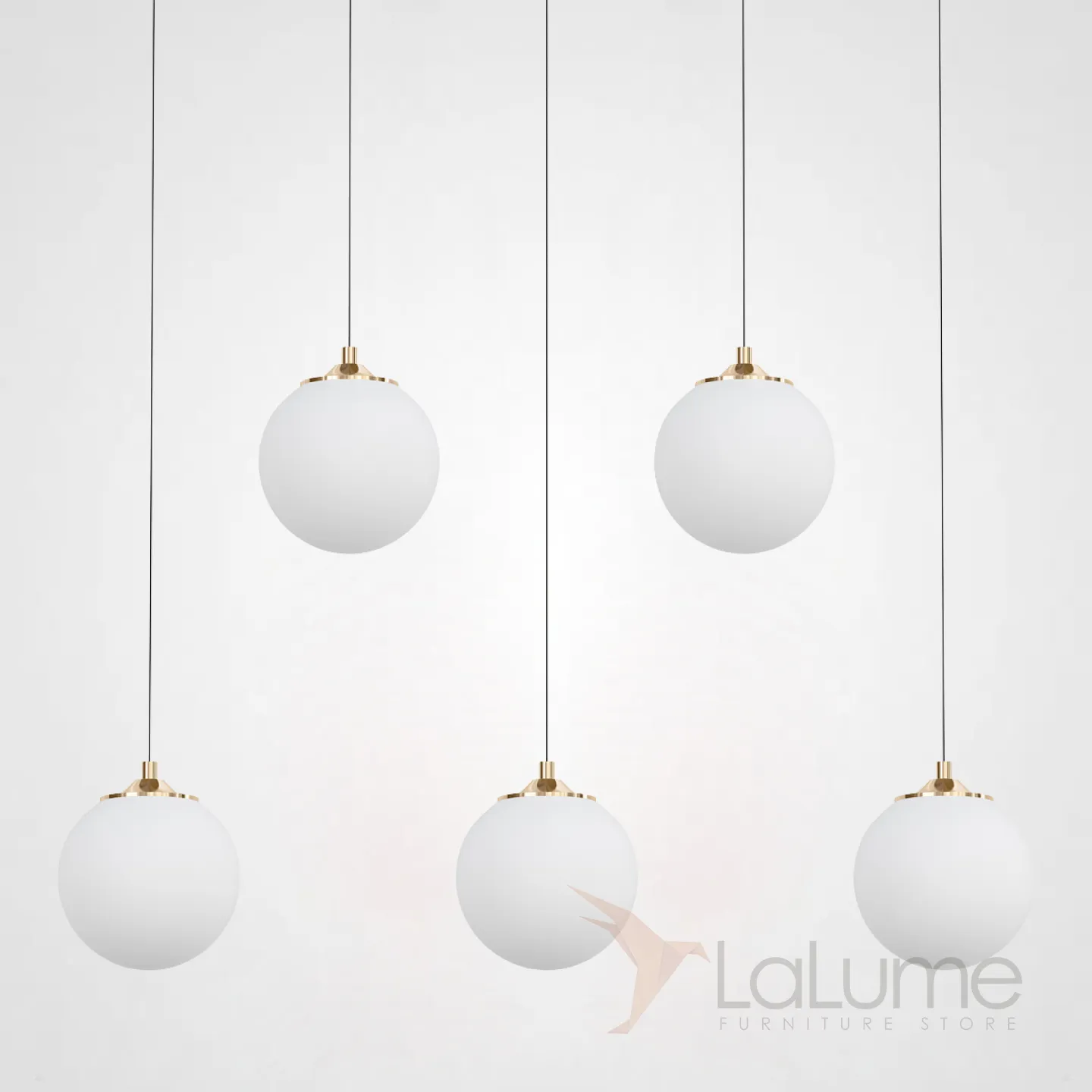 Готовая комбинация подвесных светильников с белыми матовыми плафонами шарообразной формы BARTA L70