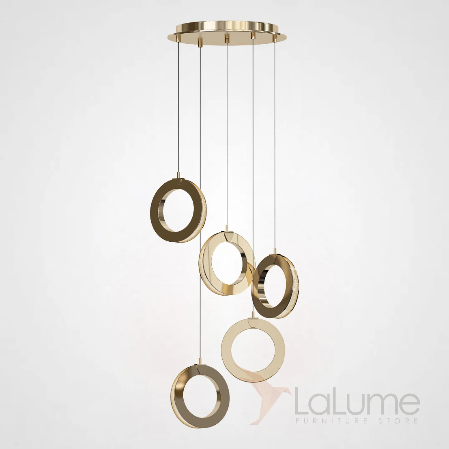 Готовая комбинация подвесных светодиодных светильников с кольцевидными плафонами с прозрачными рельефными рассеивателями по контуру корпуса CARLIN L5