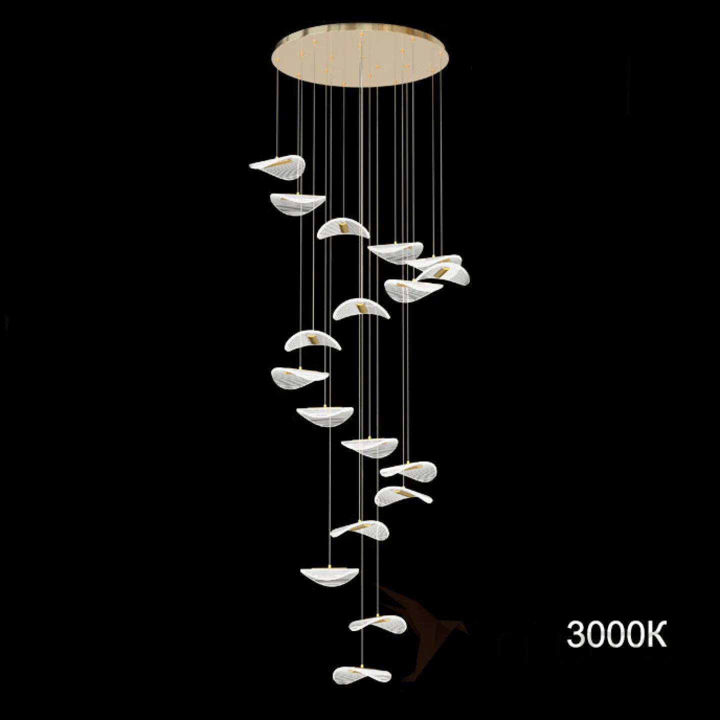 Готовая комбинация подвесных светильников с листовидными прозрачными плафонами с гравировкой DELFINA D50 L18 3000К