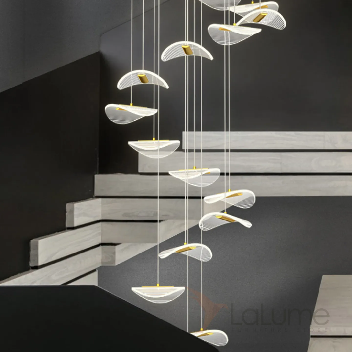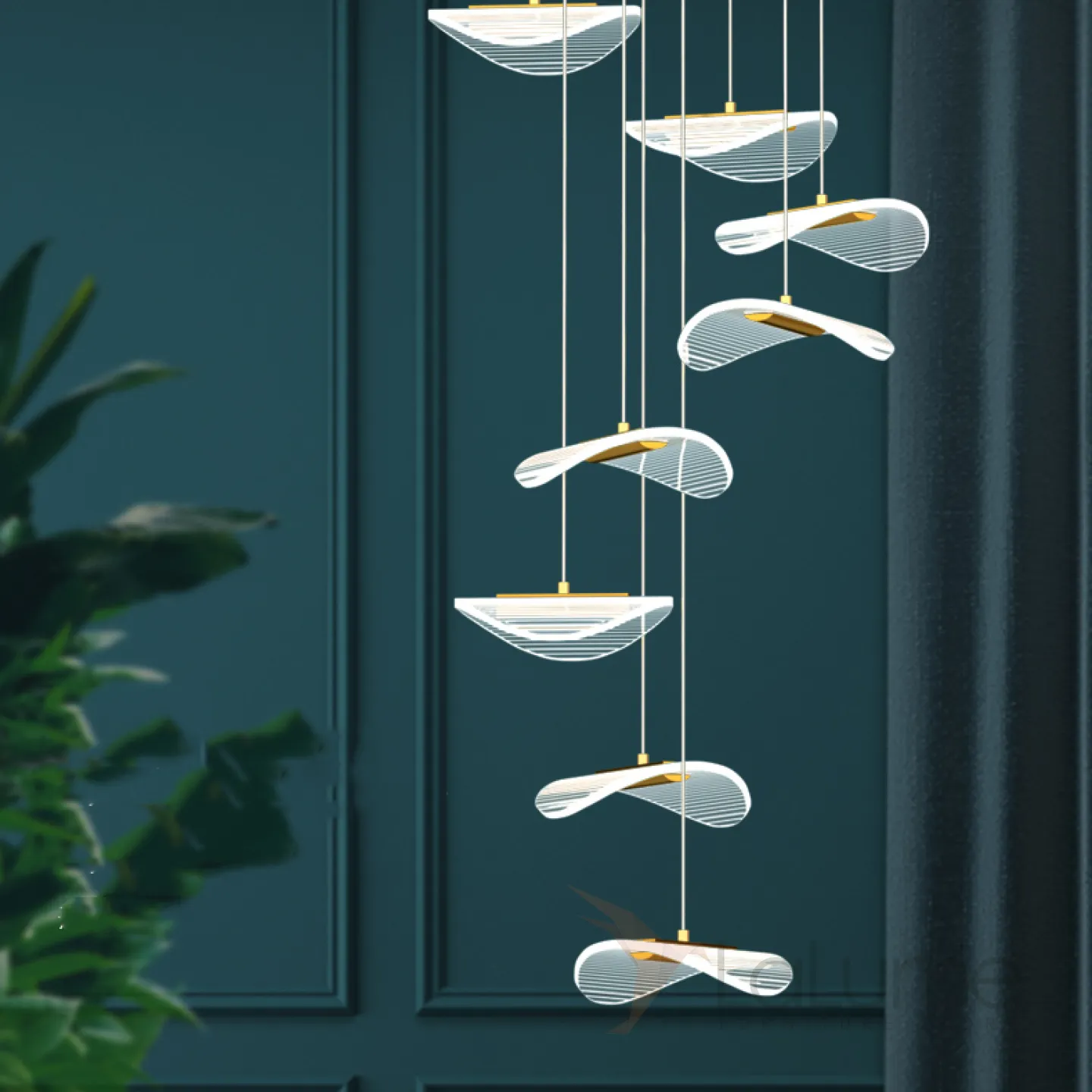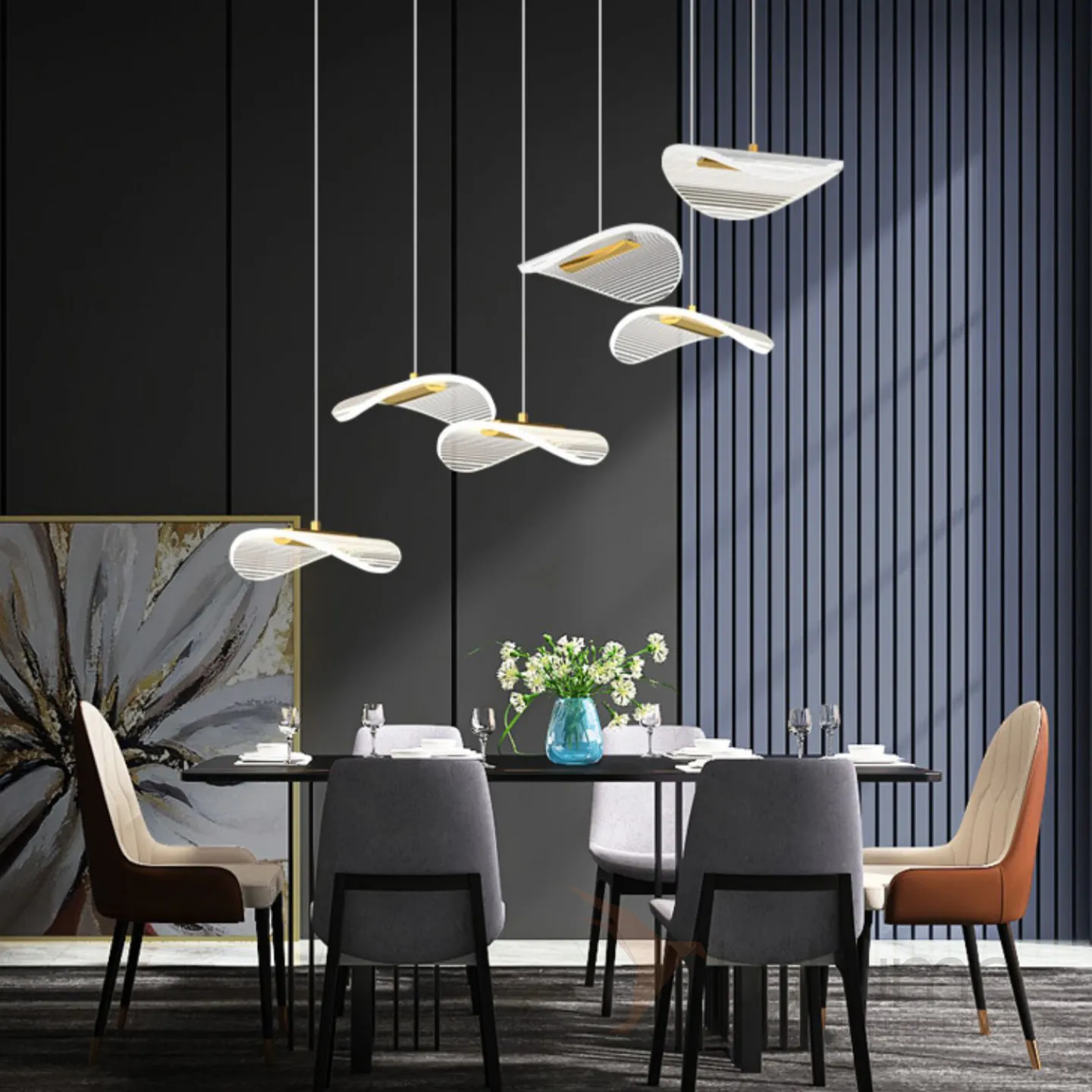 Готовая комбинация подвесных светильников с листовидными прозрачными плафонами с гравировкой DELFINA D80 3000К