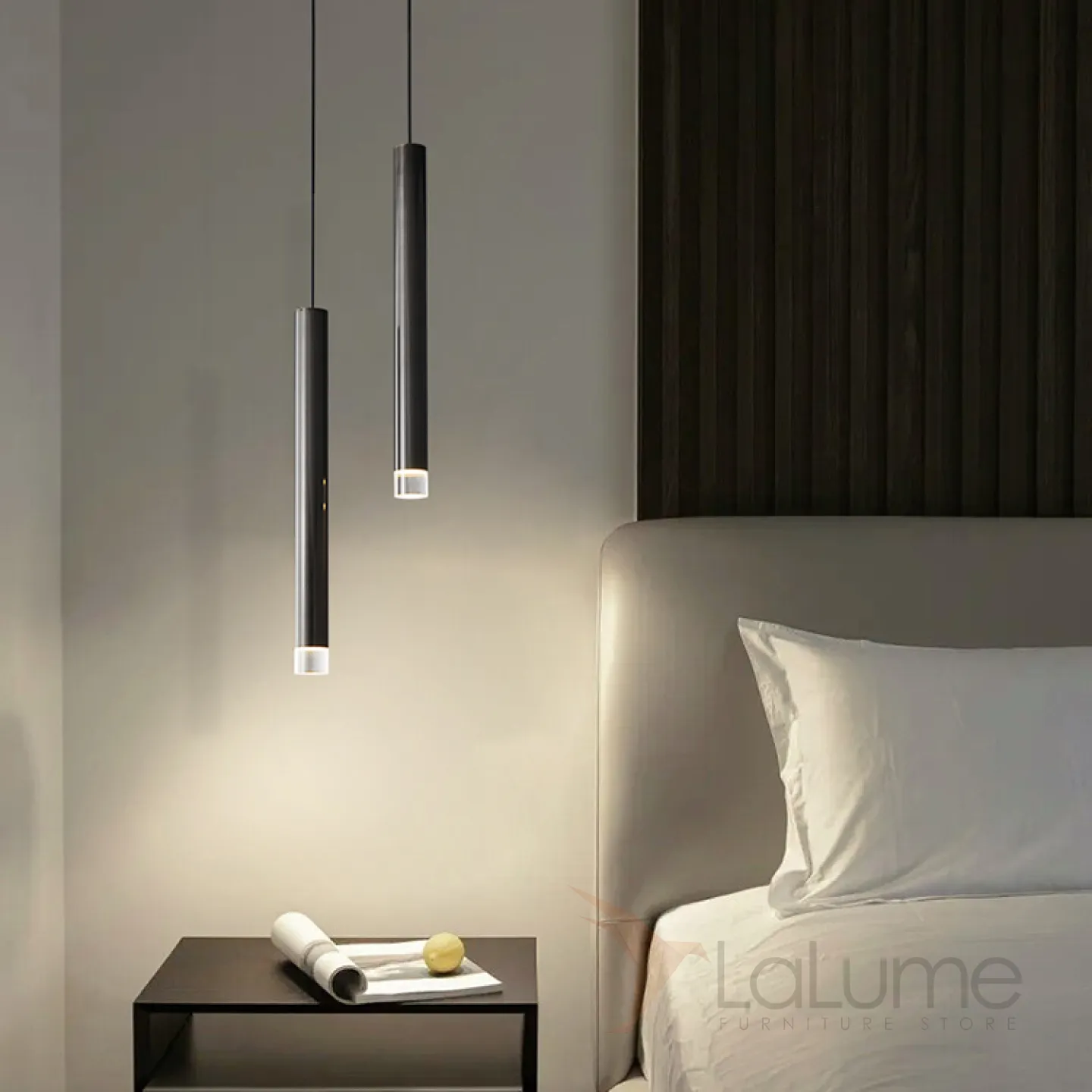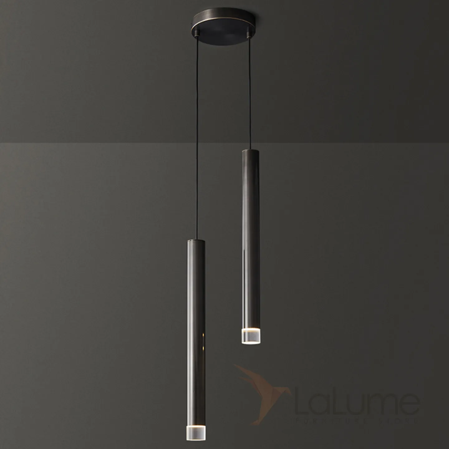 Готовая комбинация подвесных светильников с двумя цилиндрическими стеклянными плафонами на вытянутом трубчатом каркасе GIFT COMBO D15 Black
