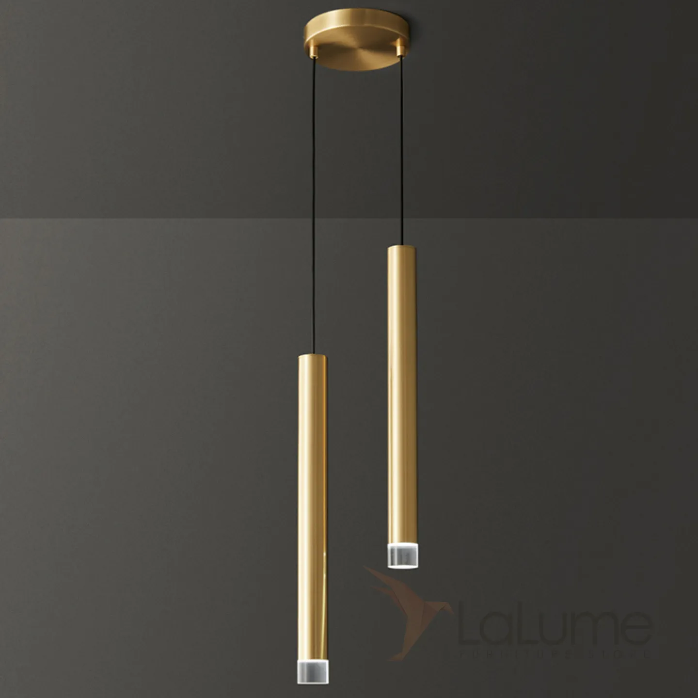 Готовая комбинация подвесных светильников с двумя цилиндрическими стеклянными плафонами на вытянутом трубчатом каркасе GIFT COMBO D15 Brass