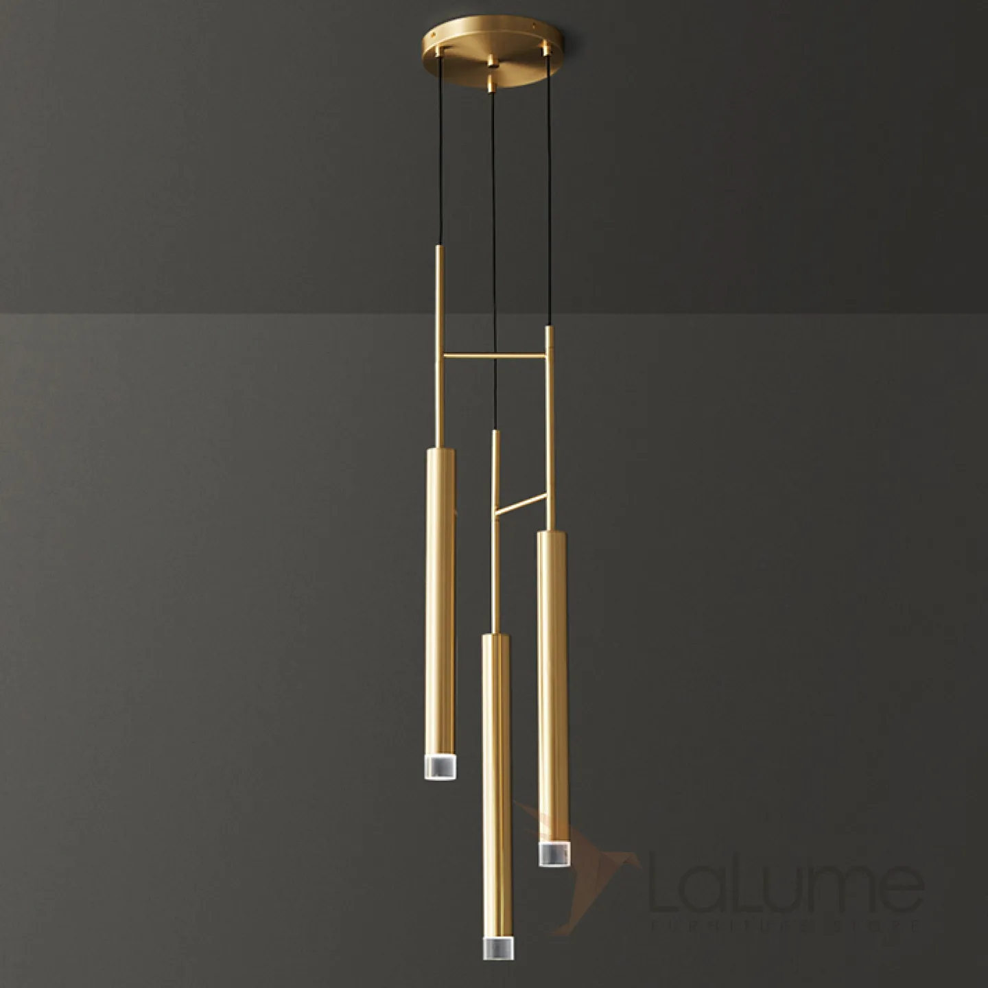 Готовая комбинация подвесных светильников с двумя цилиндрическими стеклянными плафонами на вытянутом трубчатом каркасе GIFT COMBO D20 Brass