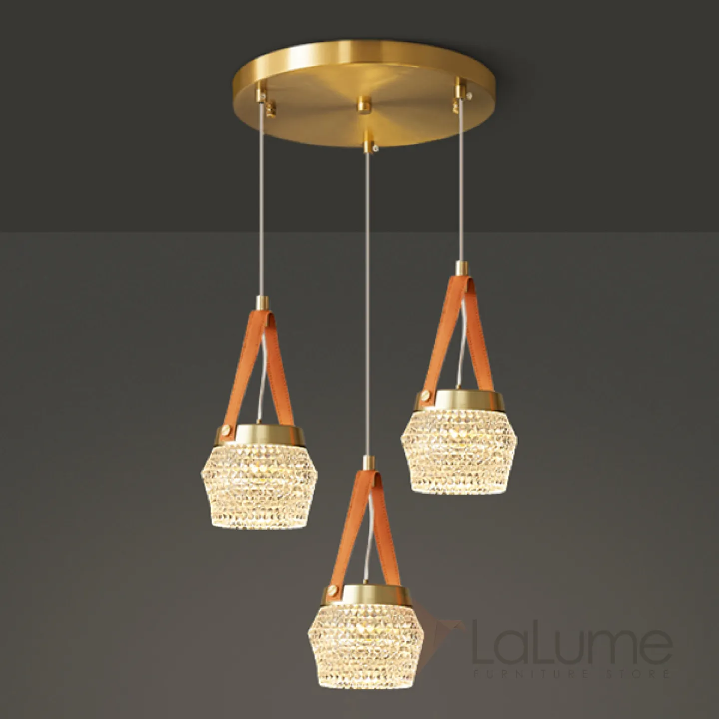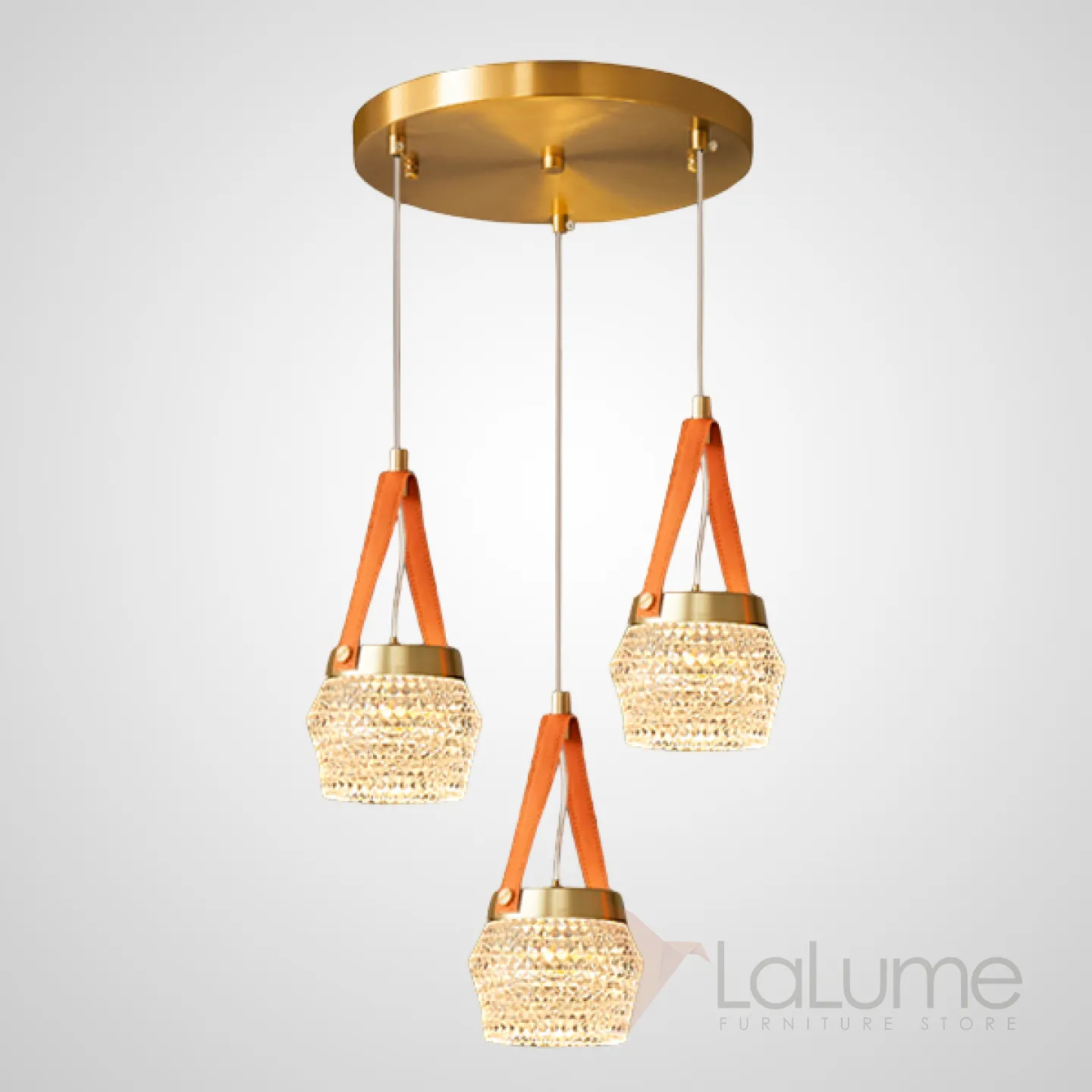 Готовая комбинация подвесных светодиодных светильников с многогранными рельефными плафонами на красных кожаных ремешках CAROL COMBO D30