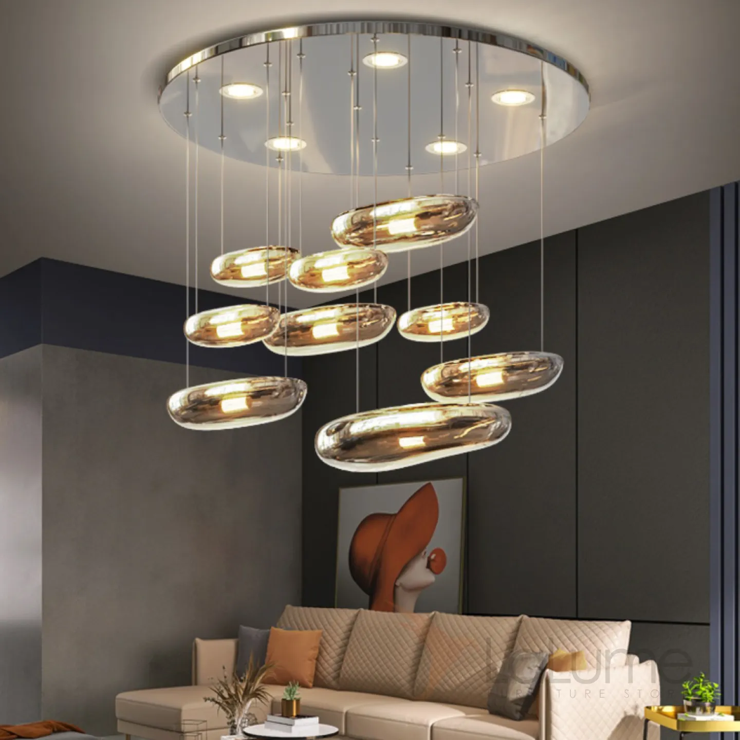 Серия подвесных светодиодных светильников с вытянутыми округлыми плафонами из выдувного стекла MANNA D60