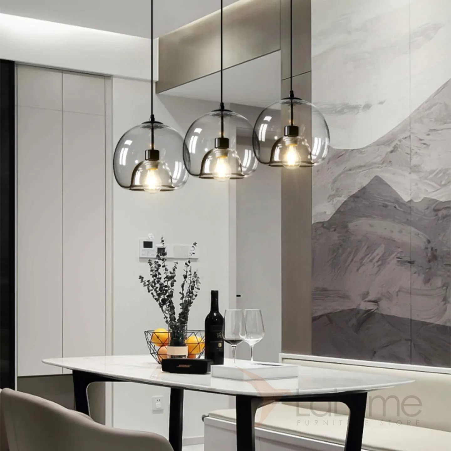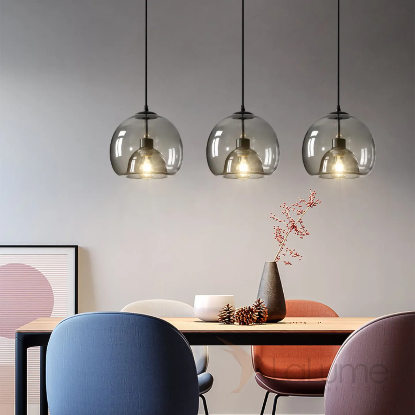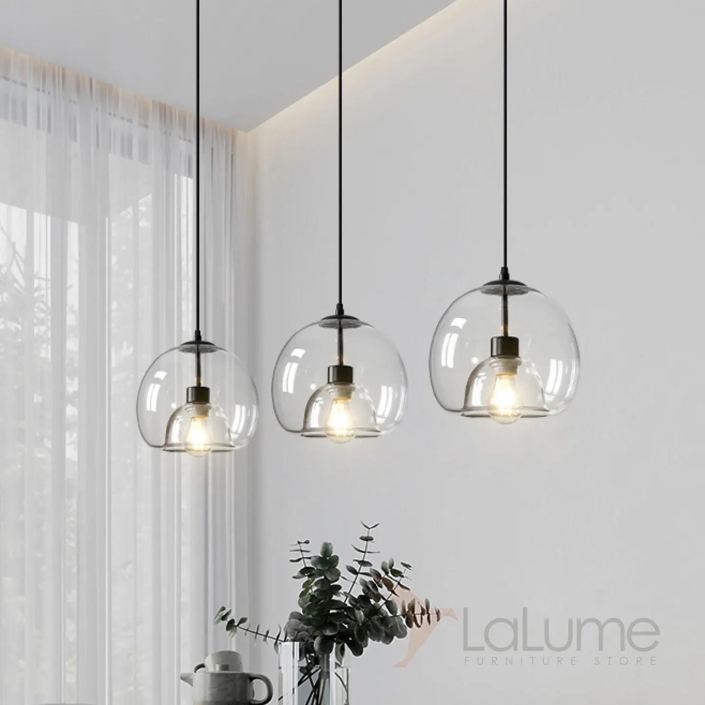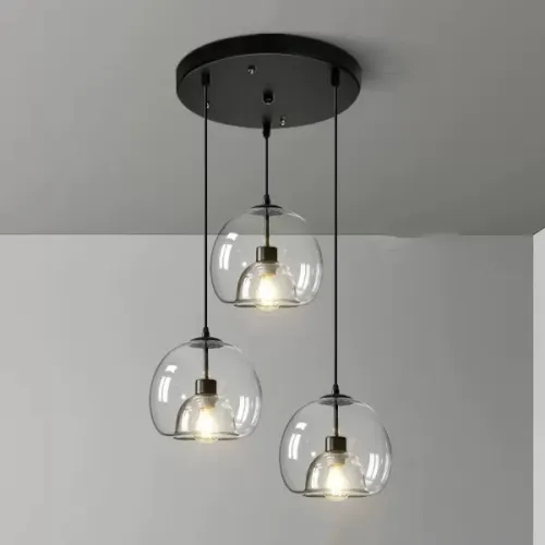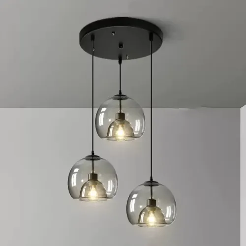 Готовая комбинация подвесных светильников с двойными шарообразными плафонами из тонированного и прозрачного стекла FOCUS TRIO L80 Transparent