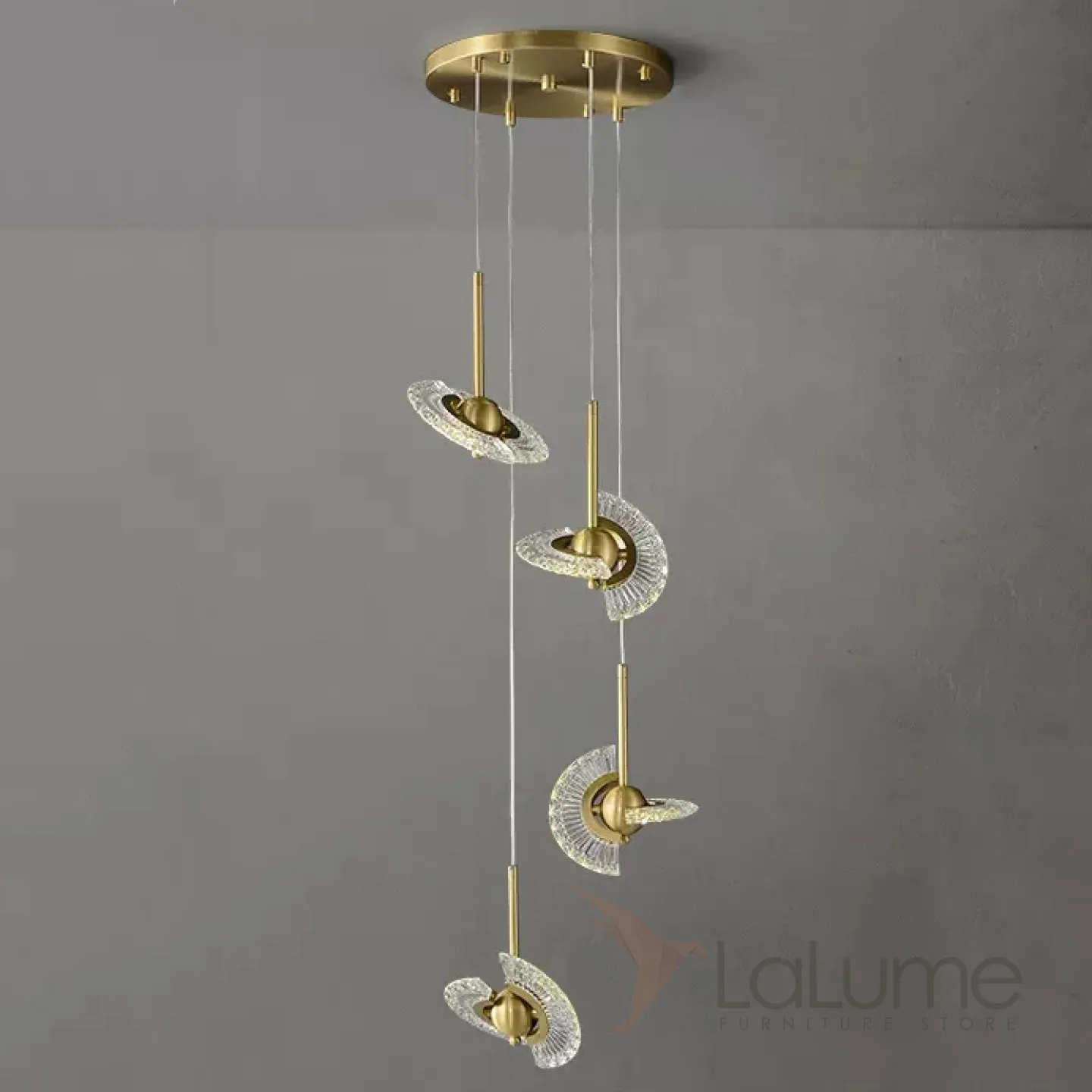 Готовая комбинация подвесных светильников с плафонами в виде комбинации двух ажурных поворотных лопастей и шаровидного центра PHOENIX LUX COMBO D36 L4