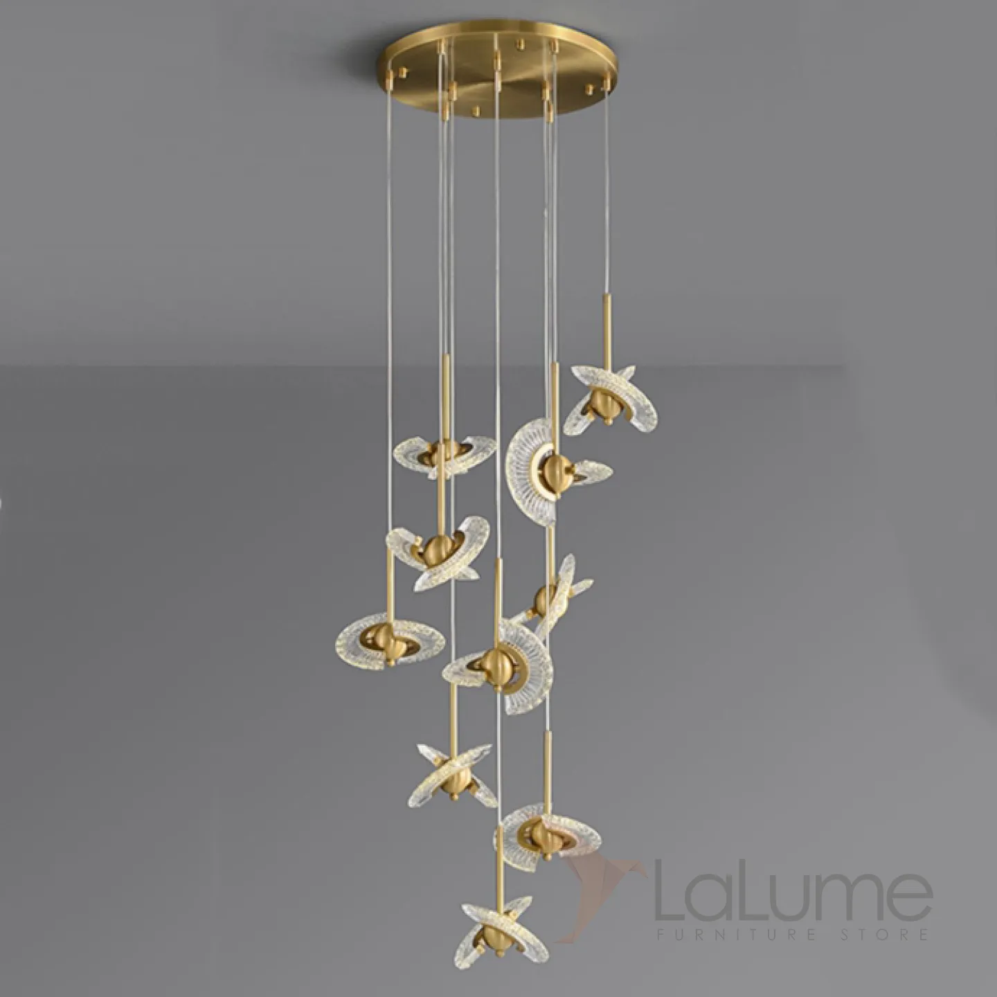 Готовая комбинация подвесных светильников с плафонами в виде комбинации двух ажурных поворотных лопастей и шаровидного центра PHOENIX LUX COMBO D48 L10