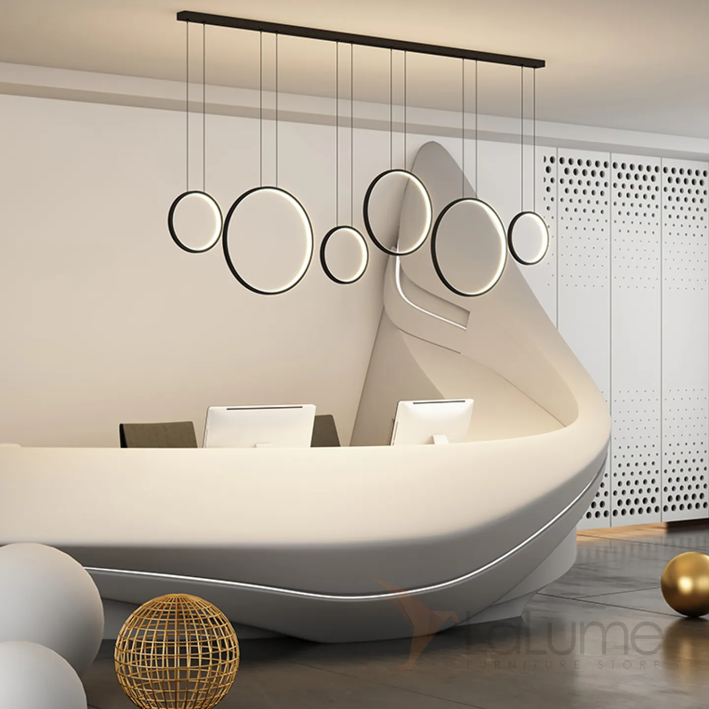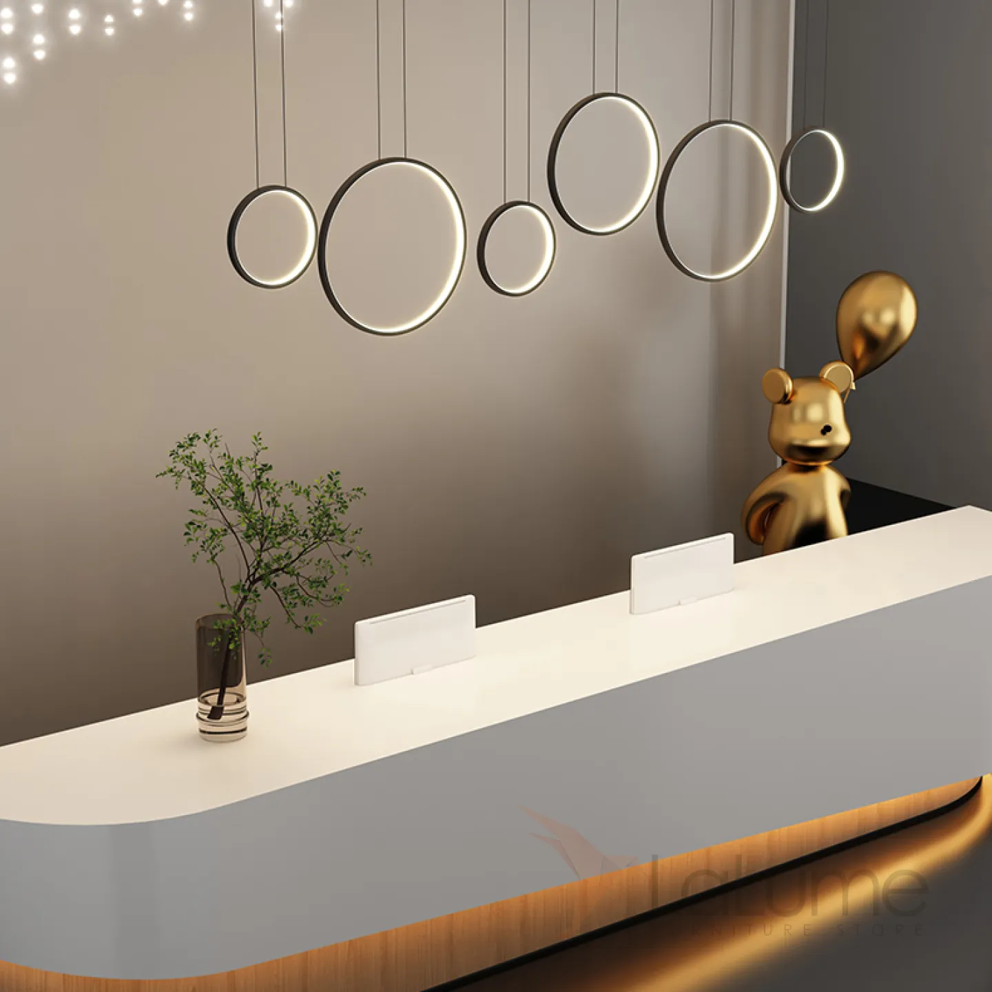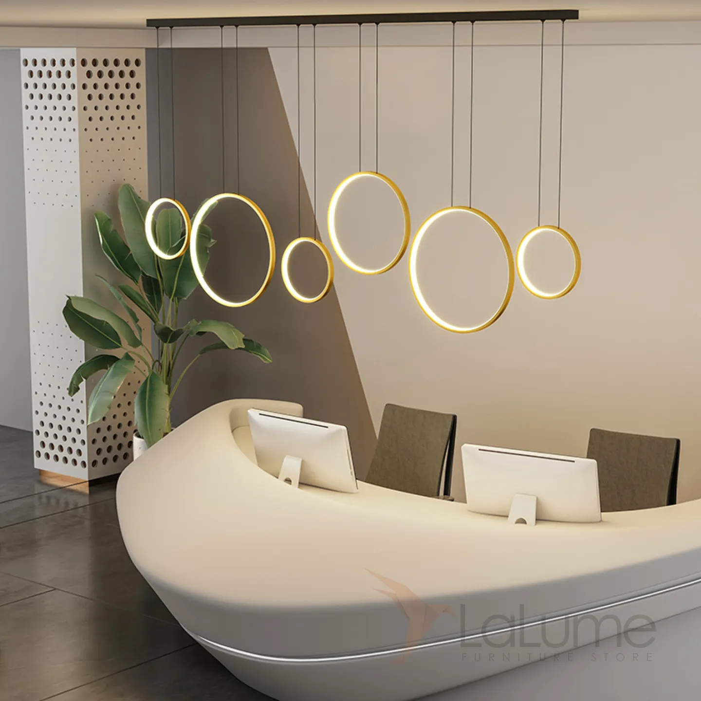 Готовая комбинация подвесных светодиодных светильников в виде композиции из колец разного диаметра FREDDO L170 Brass