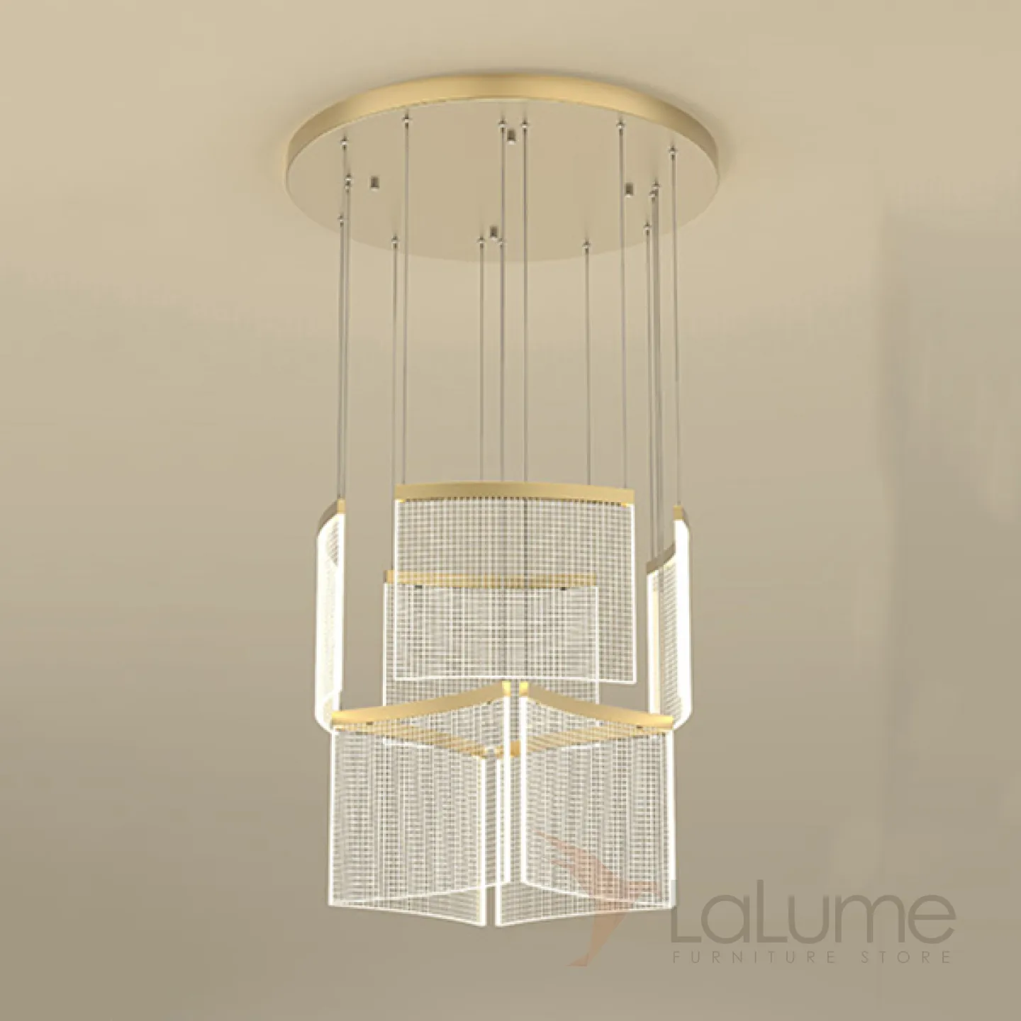 Готовая комбинация подвесных светодиодных светильников c прозрачными прямоугольными плафонами с клетчатой гравировкой AKSELINE D60