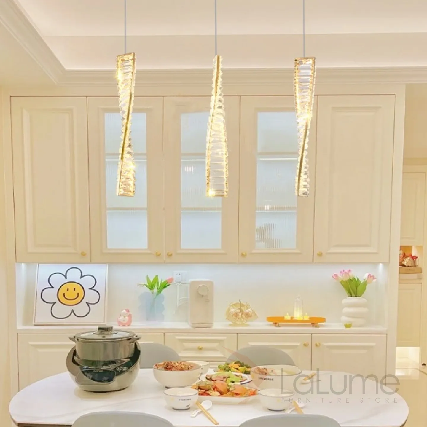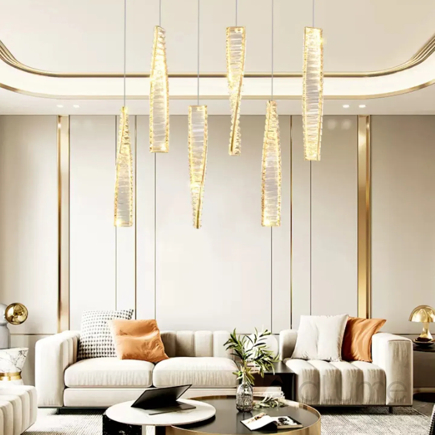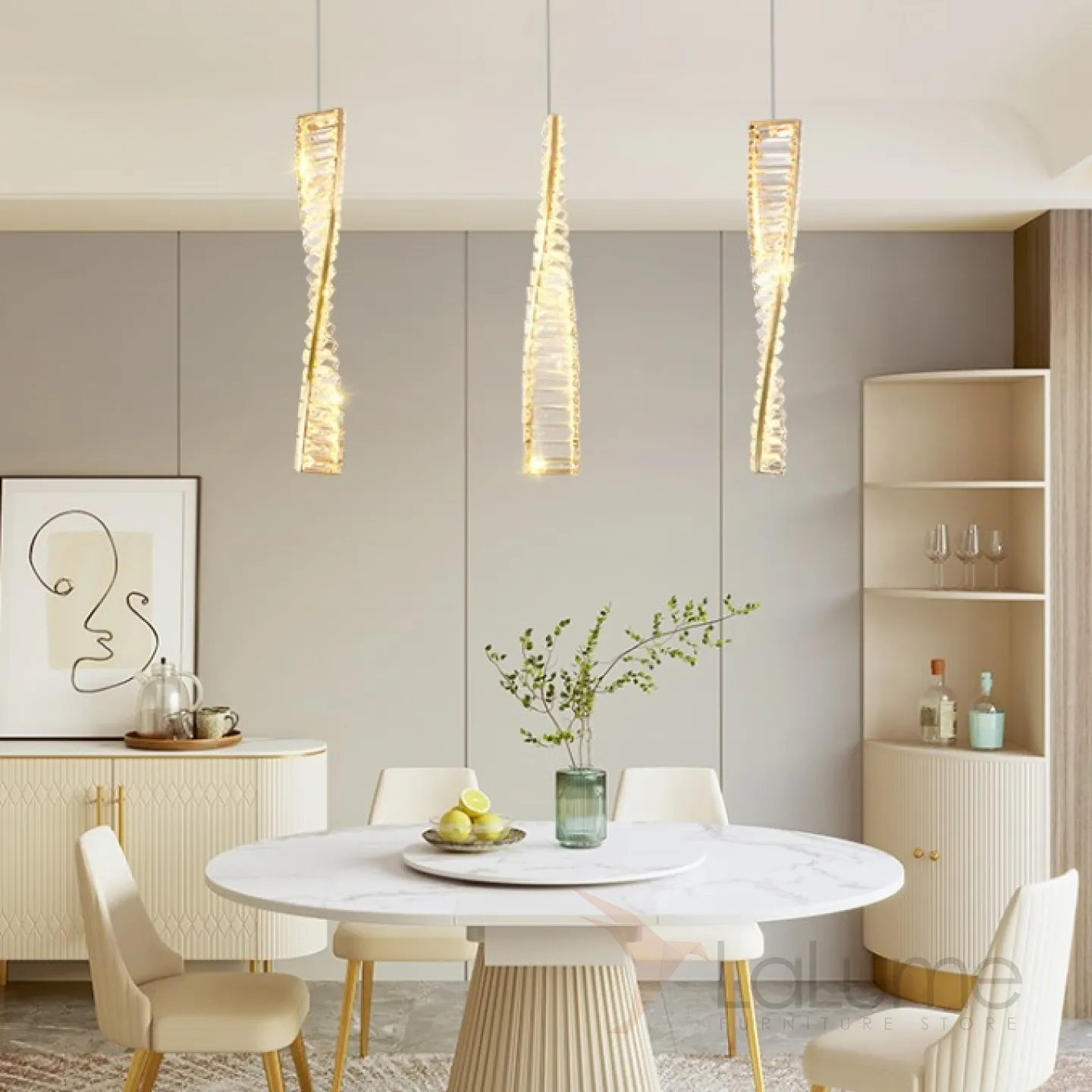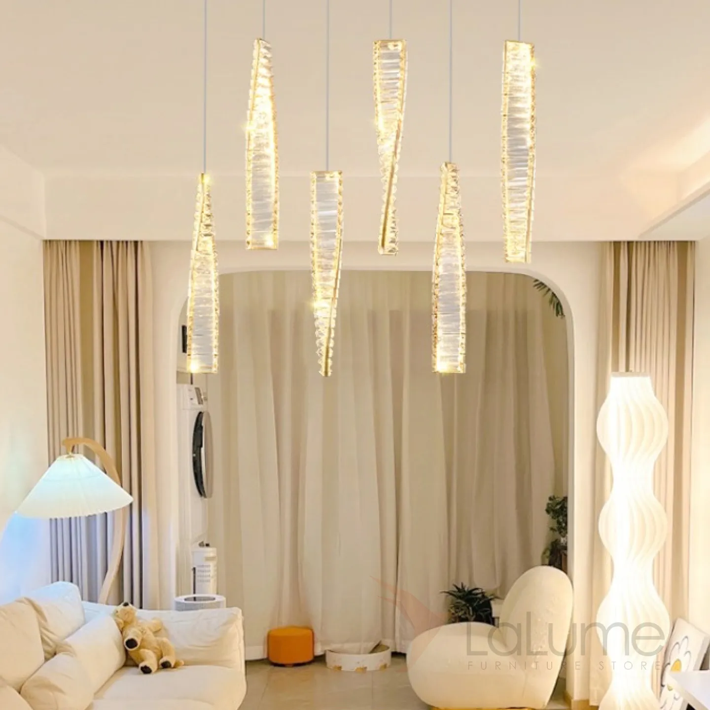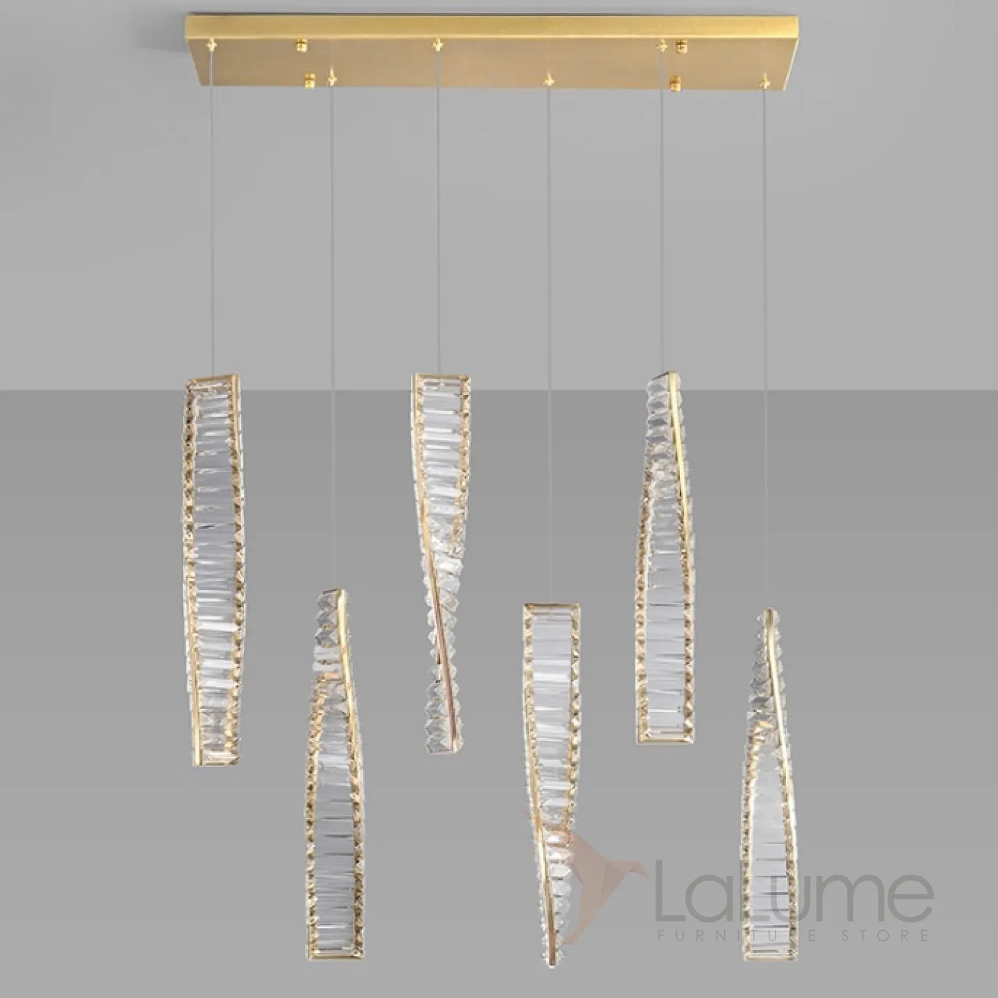 Готовая комбинация подвесных светодиодных светильников со спиралевидными плафонами из многогранных хрустальных пластин BERTOLDA X COMBO L80