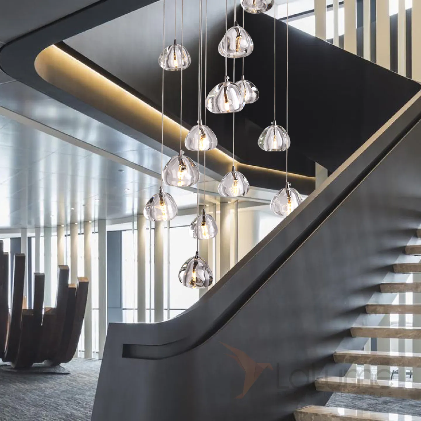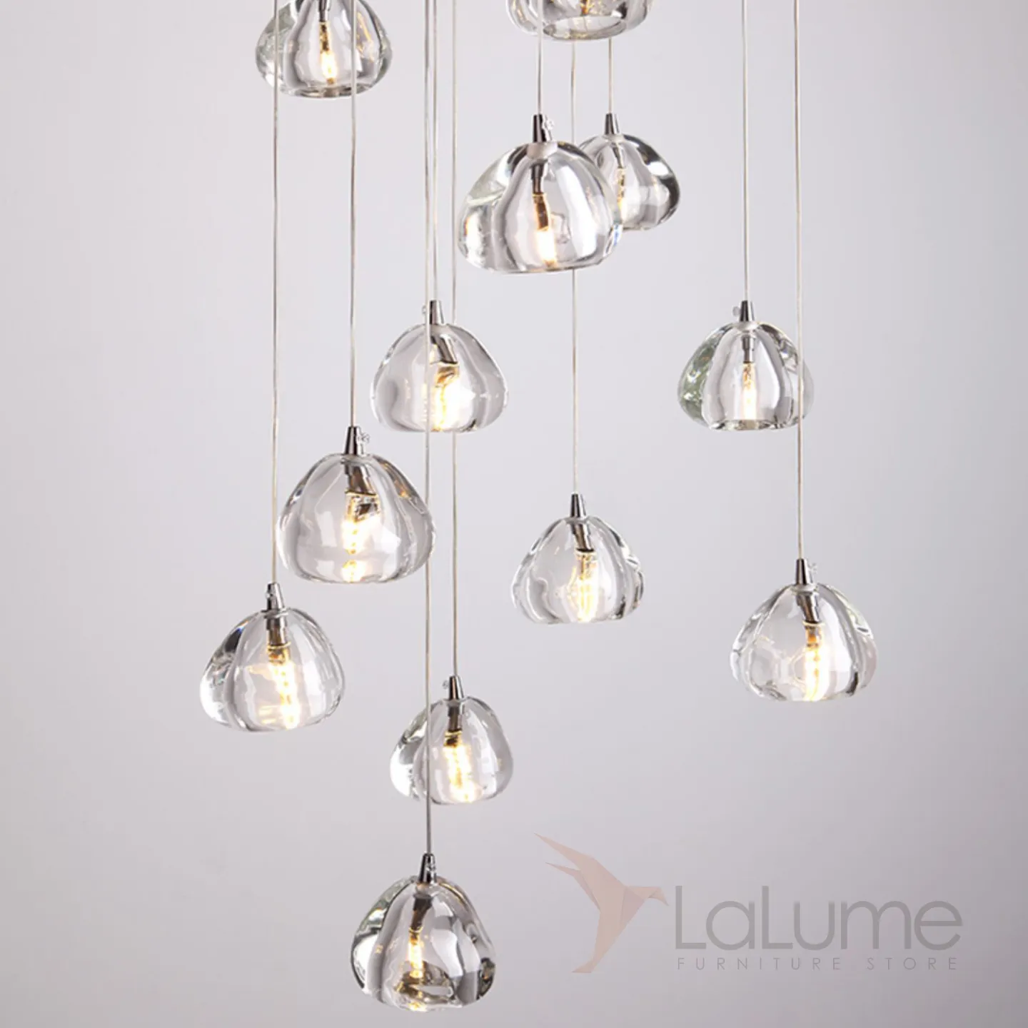 Готовая комбинация подвесных светильников с каплевидными плафонами из прозрачного и янтарного стекла METEORA B COMBO D60 Amber