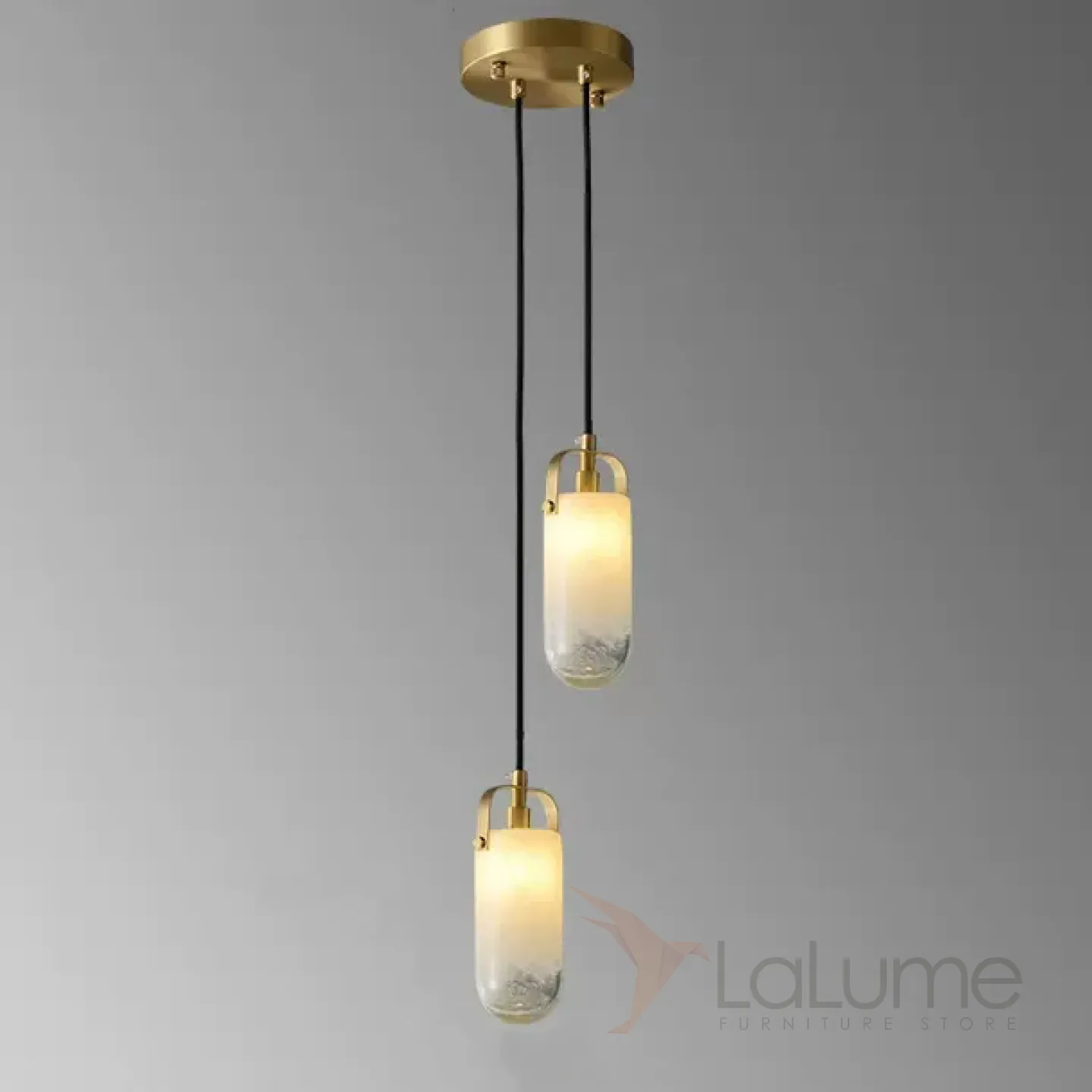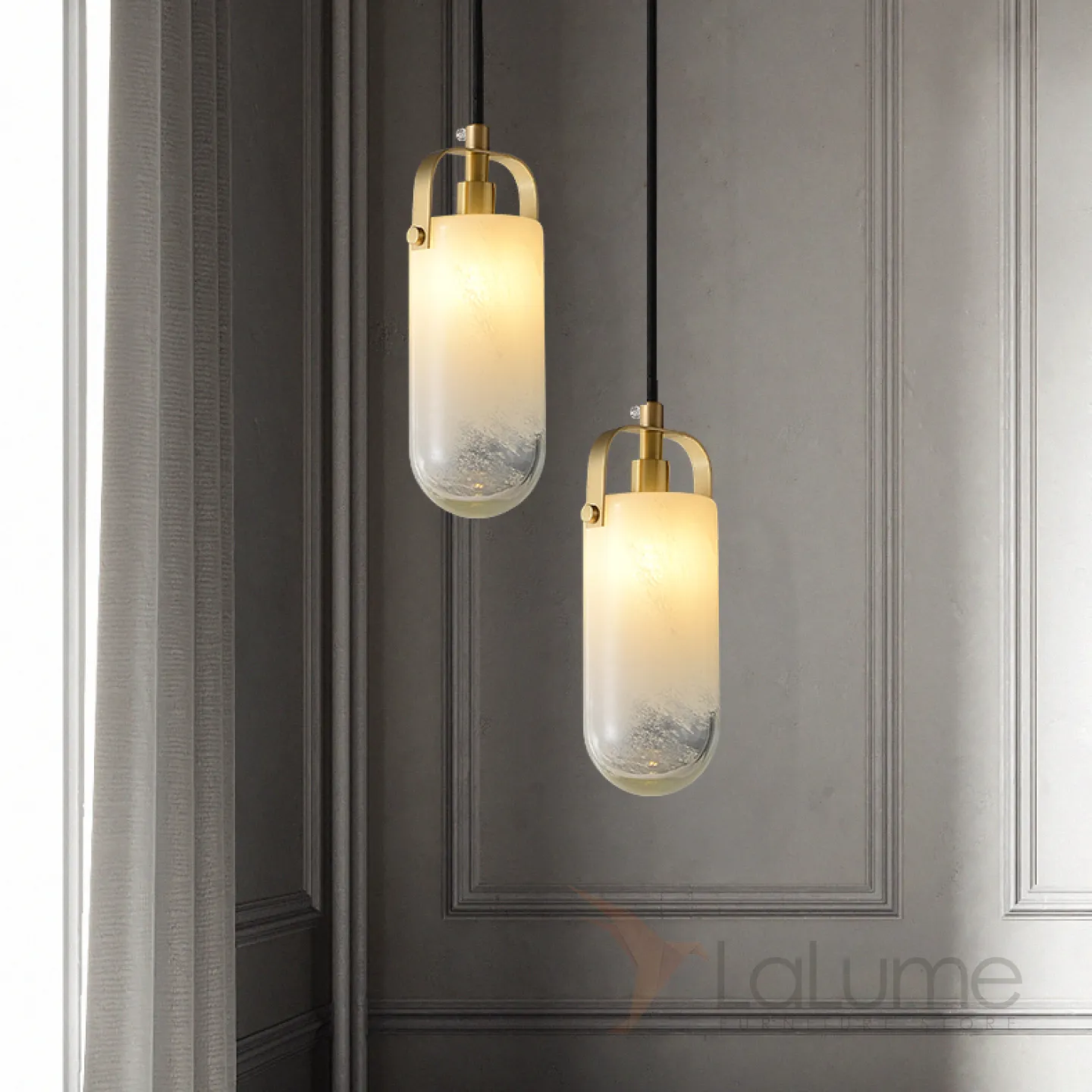 Готовая комбинация подвесных светильников с двумя стеклянными плафонами цилиндрической формы с эффектом льда LIESEL DUO