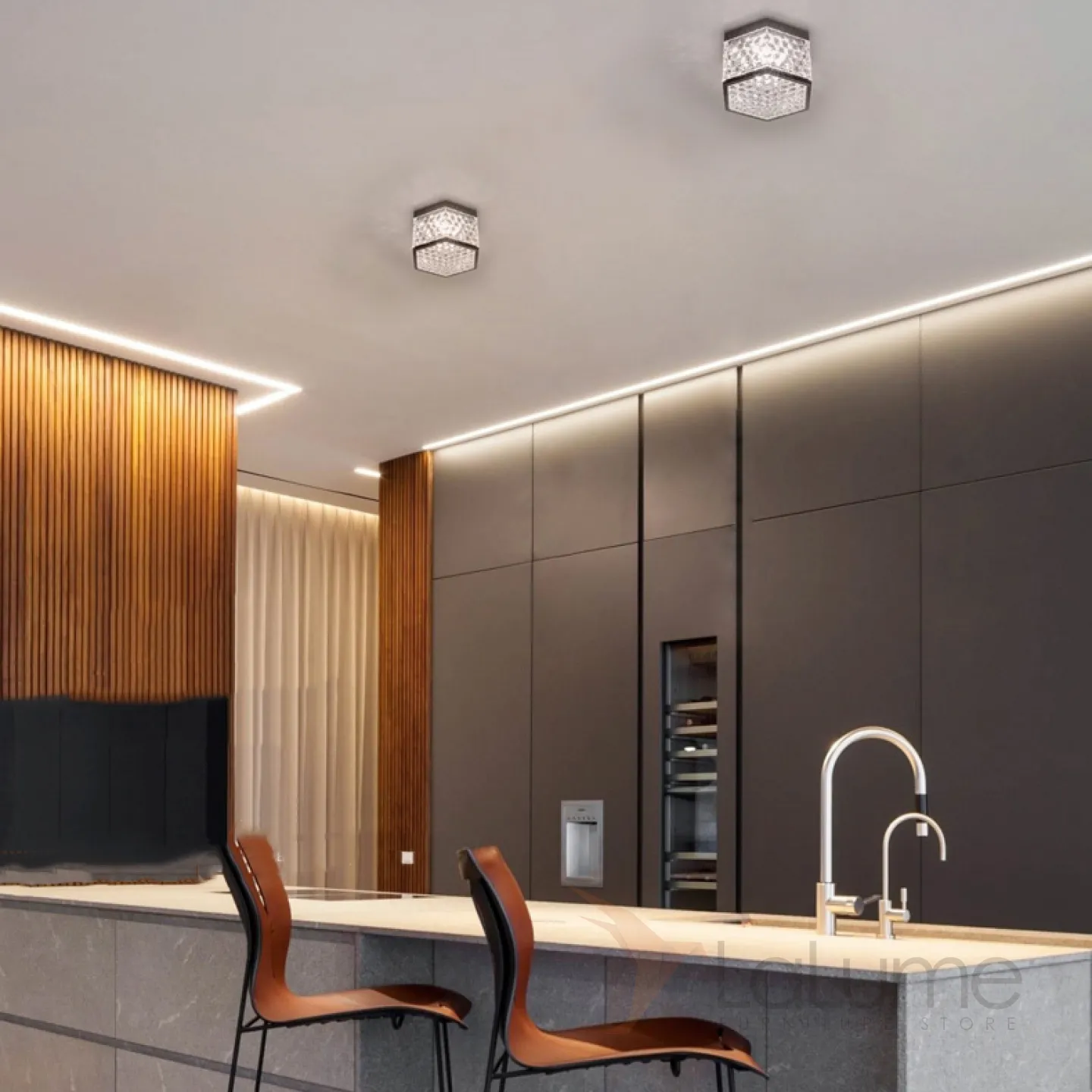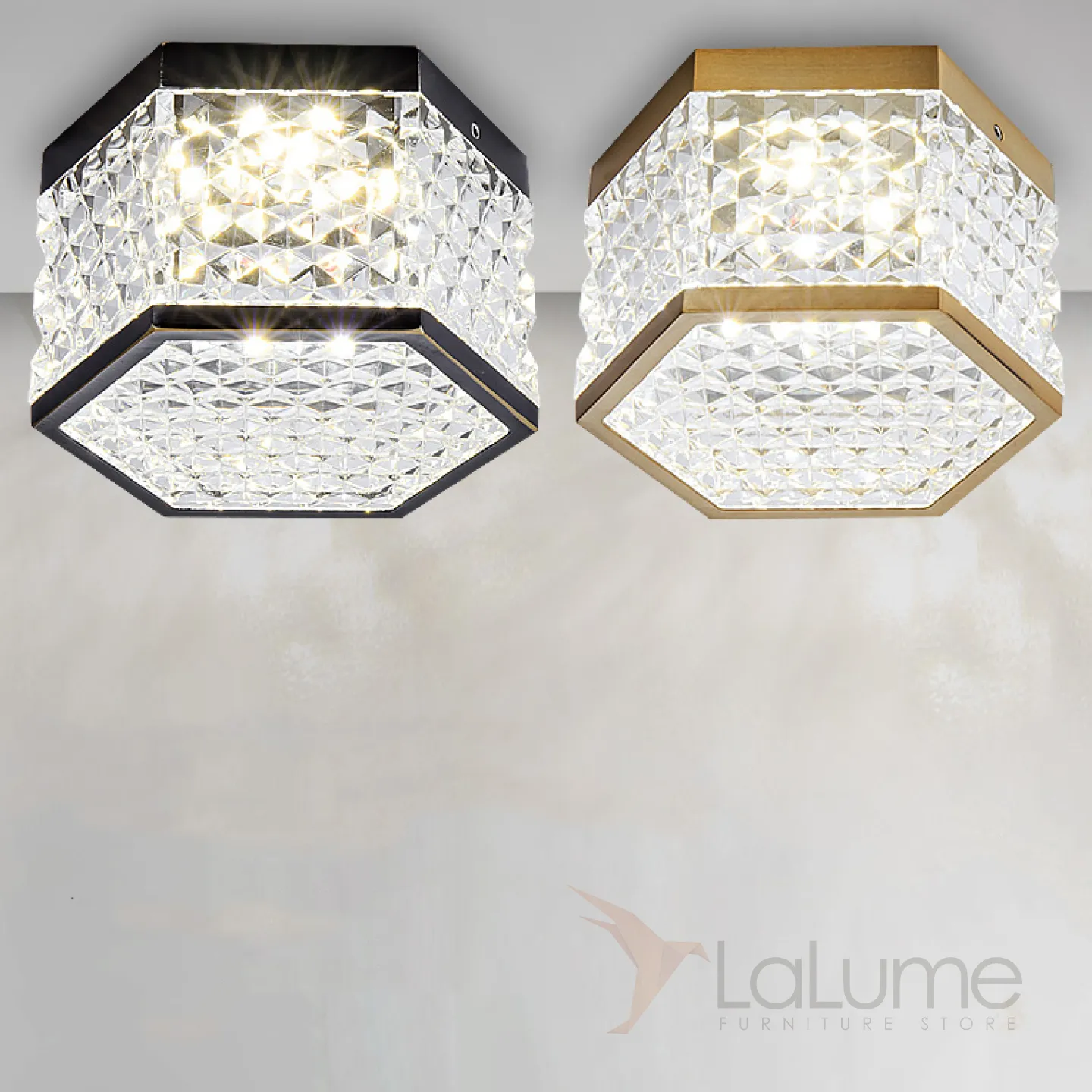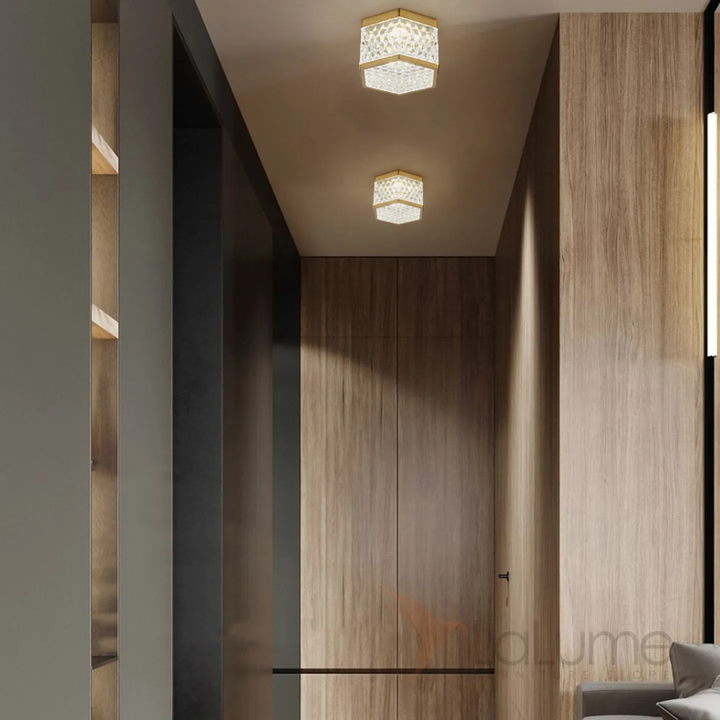 Серия накладных светодиодных светильников с плафоном в форме шестигранника с панцирной поверхностью PARTY Brass 3000К 5W