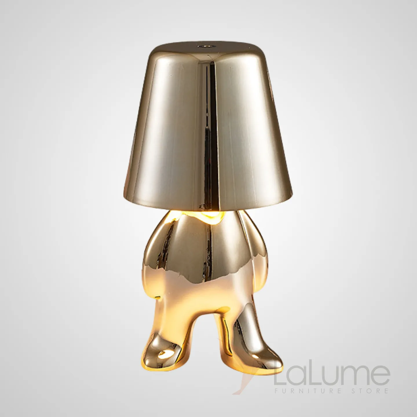 Серия настольных светодиодных ламп для детской с коническими абажурами и основанием в виде человечков в разных позах ELF E