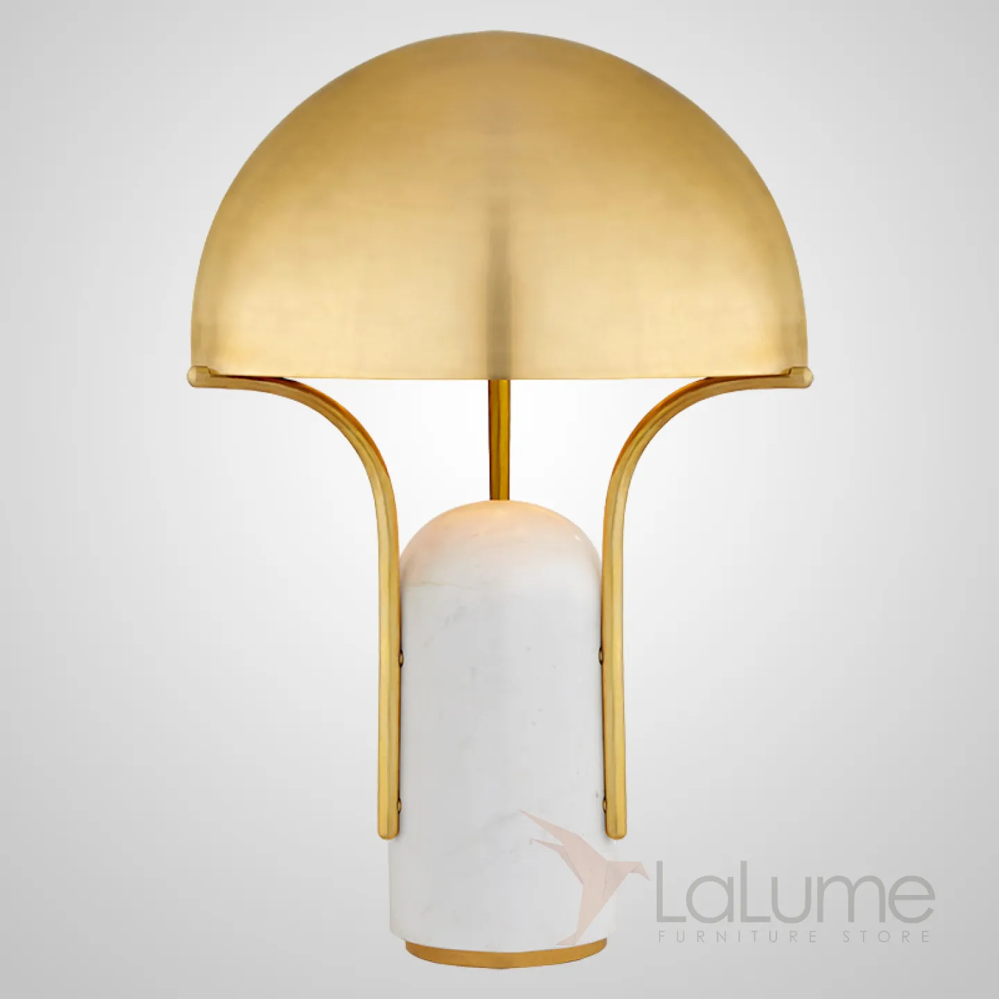 Настольная лампа с металлическим плафоном купольной формы на цилиндрическом основании из белого мрамора DAITY