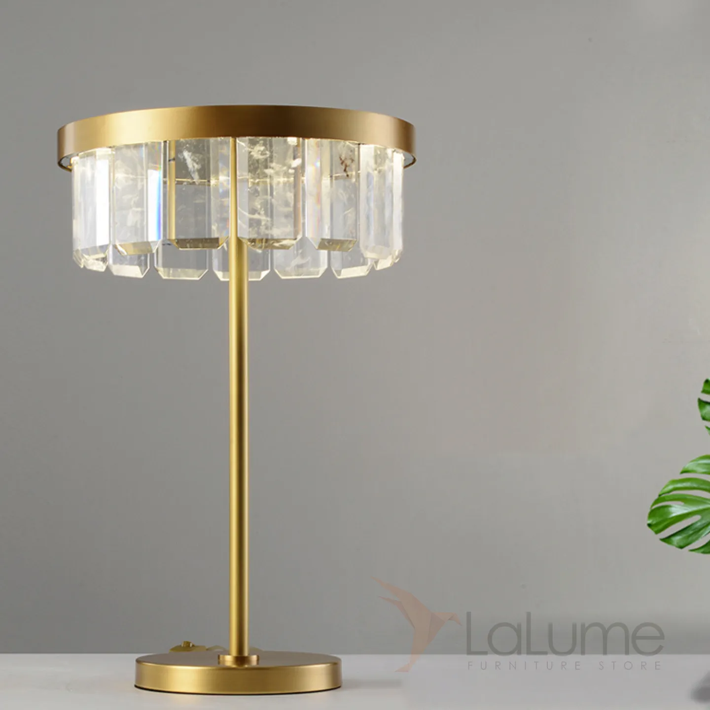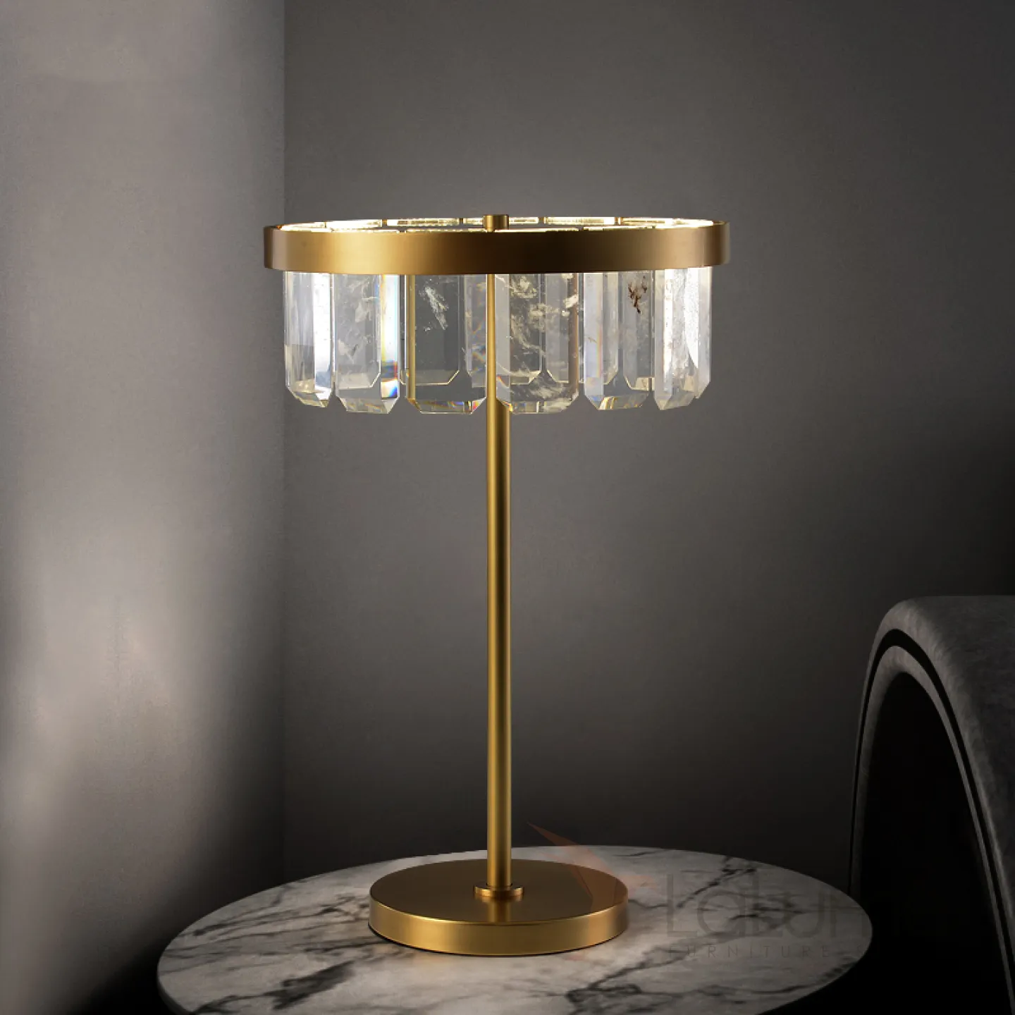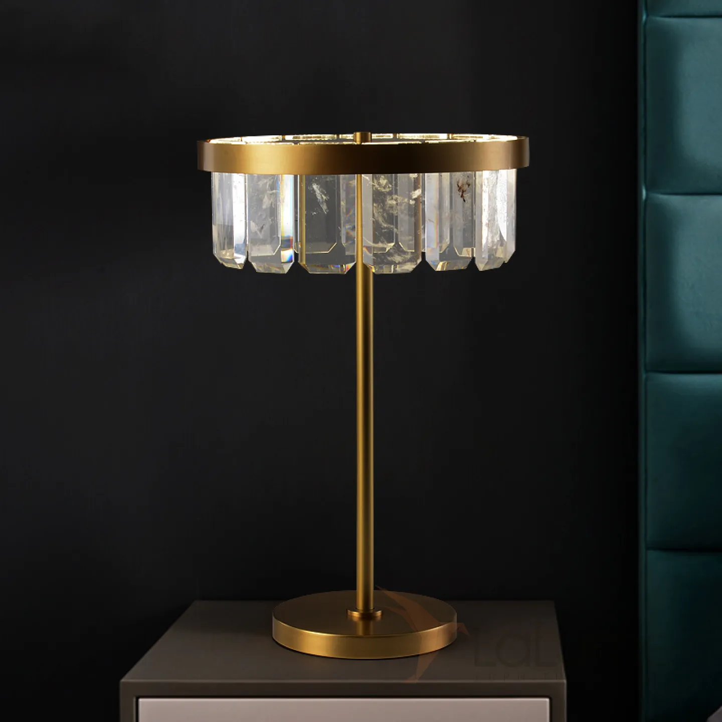 Серия настольных светодиодных светильников с абажуром из прямоугольных хрустальных пластин на одной и двух стойках CAPELLA TAB A