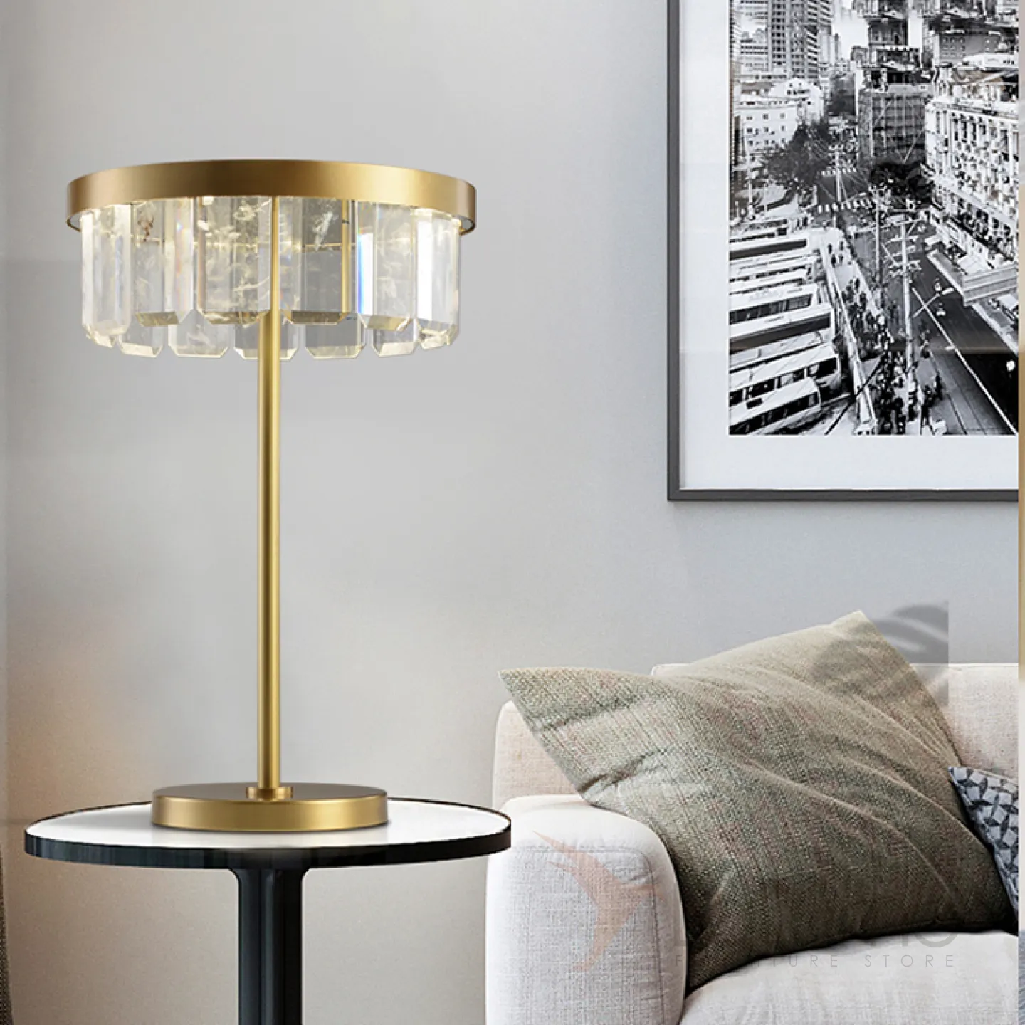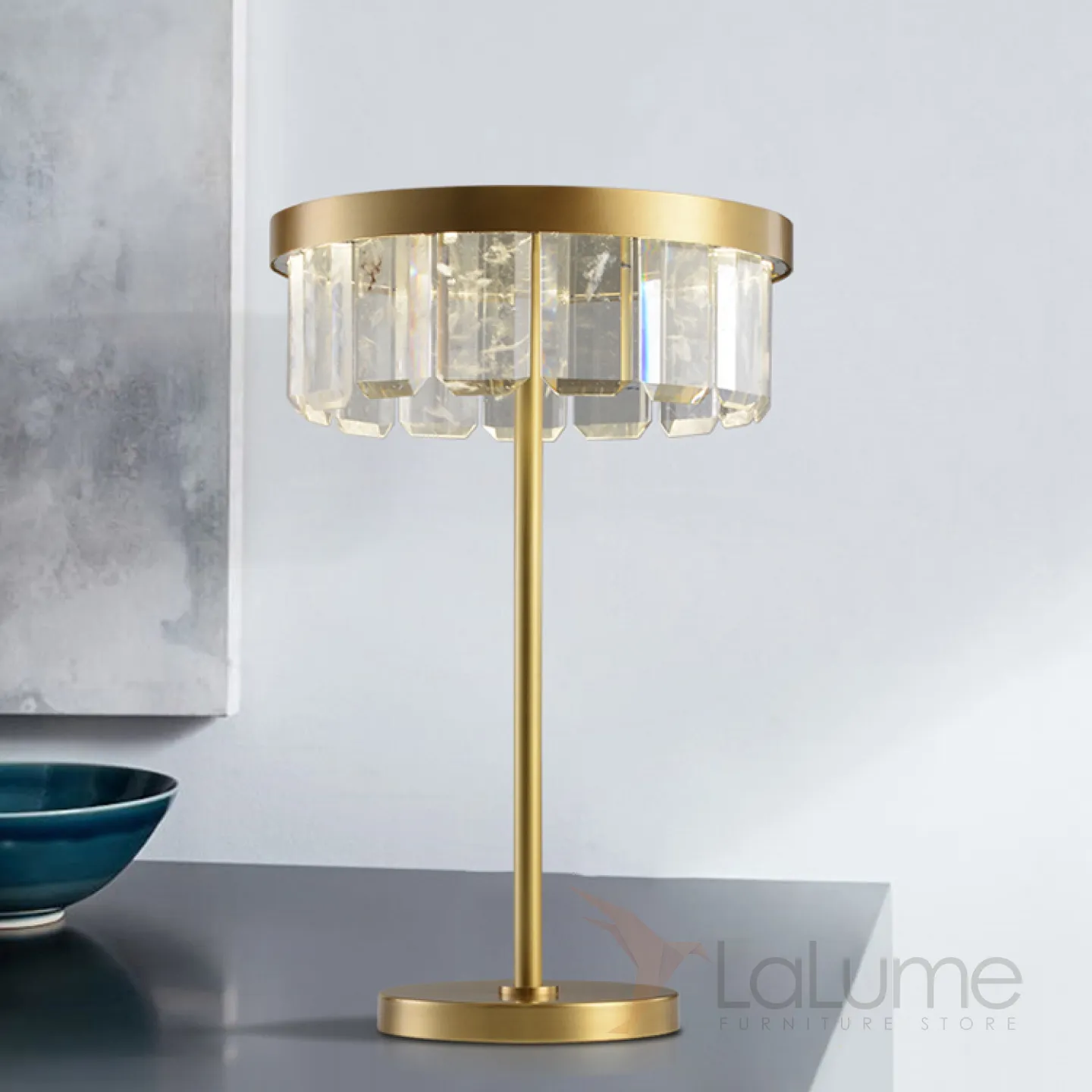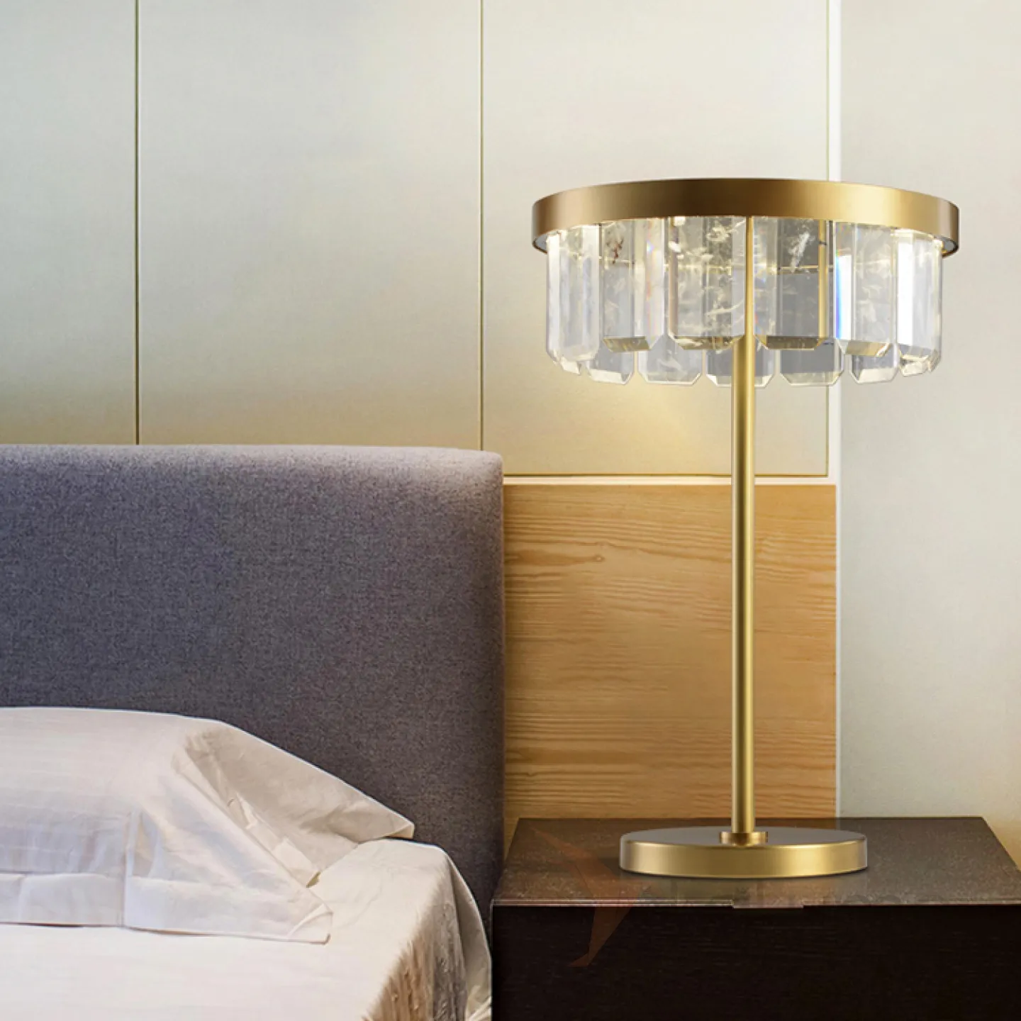Серия настольных светодиодных светильников с абажуром из прямоугольных хрустальных пластин на одной и двух стойках CAPELLA TAB A