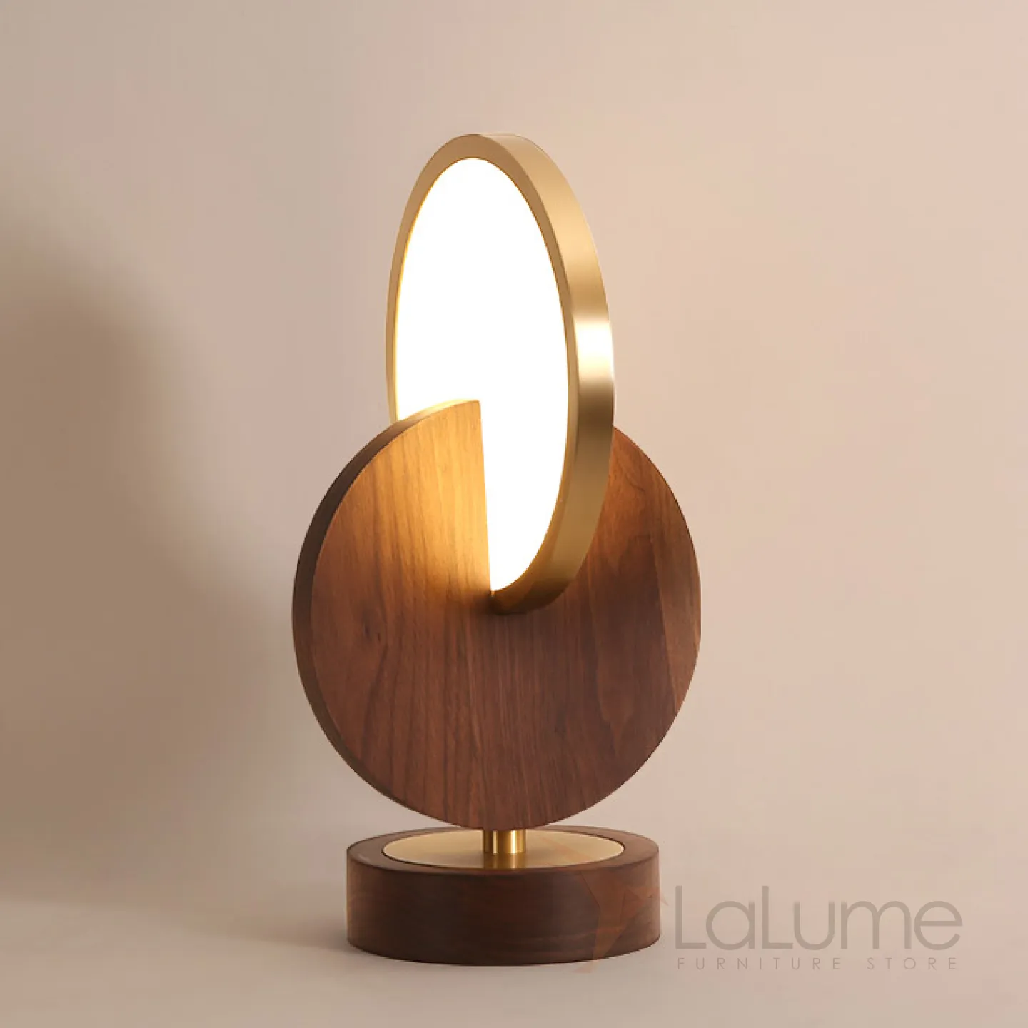 Светодиодная настольная лампа из пересекающихся дисков GLATT WOOD TAB Dark brown