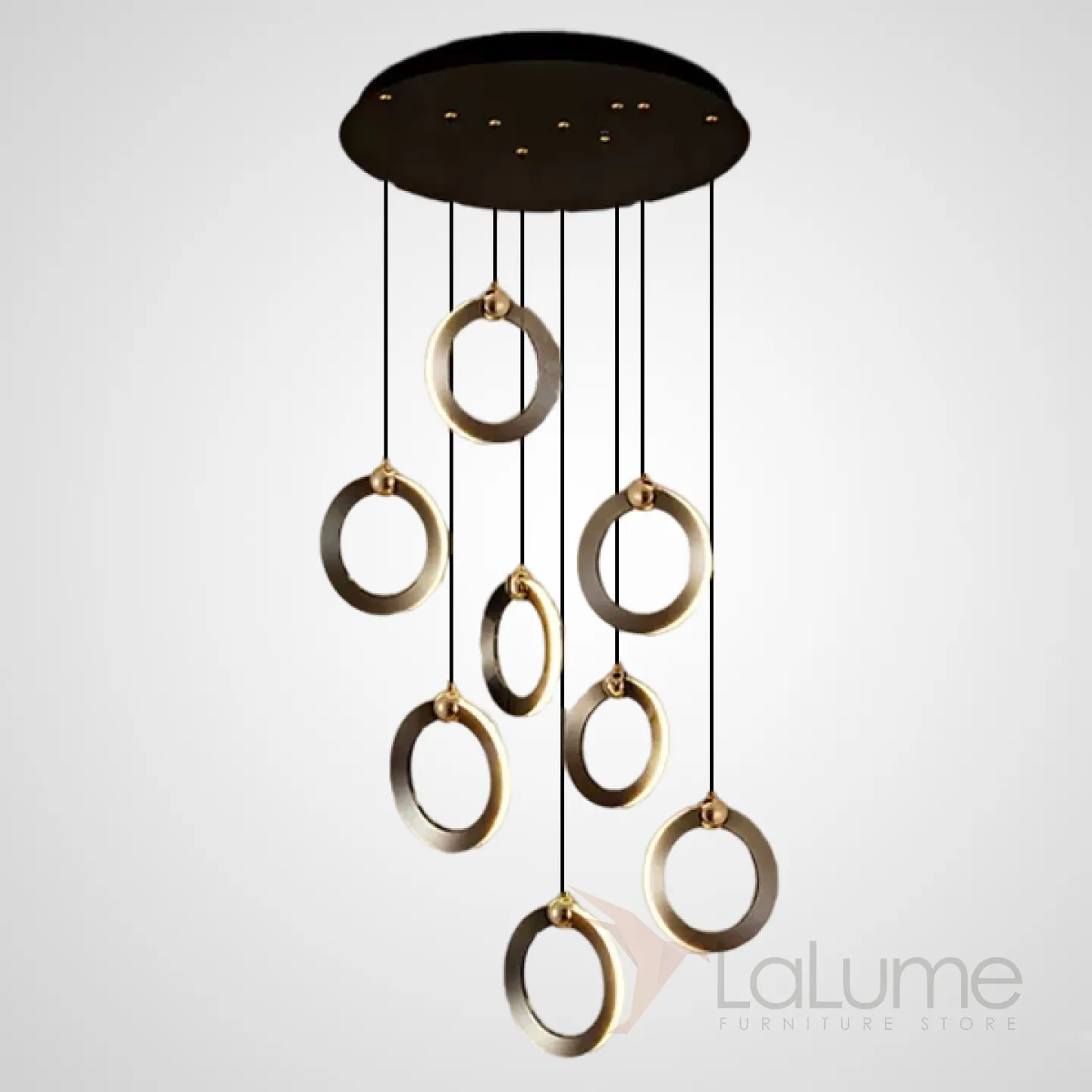 Готовая комбинация подвесных светильников с кольцевидными плафонами с белыми матовыми LED-панелями по внешнему контуру корпуса KARI L8 Brown