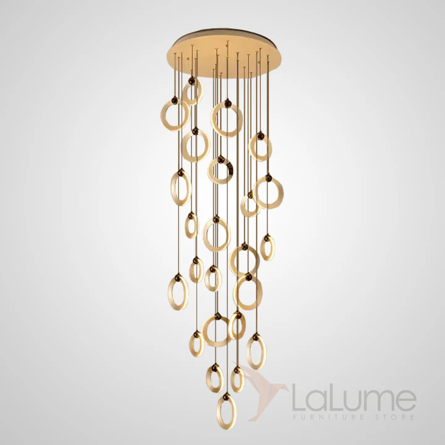 Готовая комбинация подвесных светильников с кольцевидными плафонами с белыми матовыми LED-панелями по внешнему контуру корпуса KARI L24 Brass