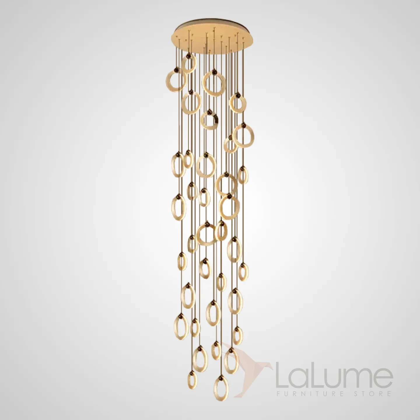 Готовая комбинация подвесных светильников с кольцевидными плафонами с белыми матовыми LED-панелями по внешнему контуру корпуса KARI L36 Brass