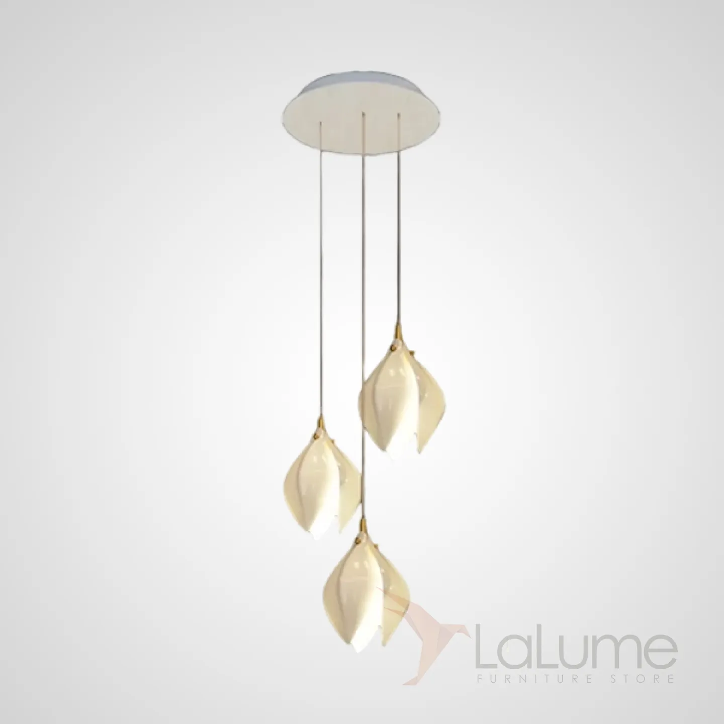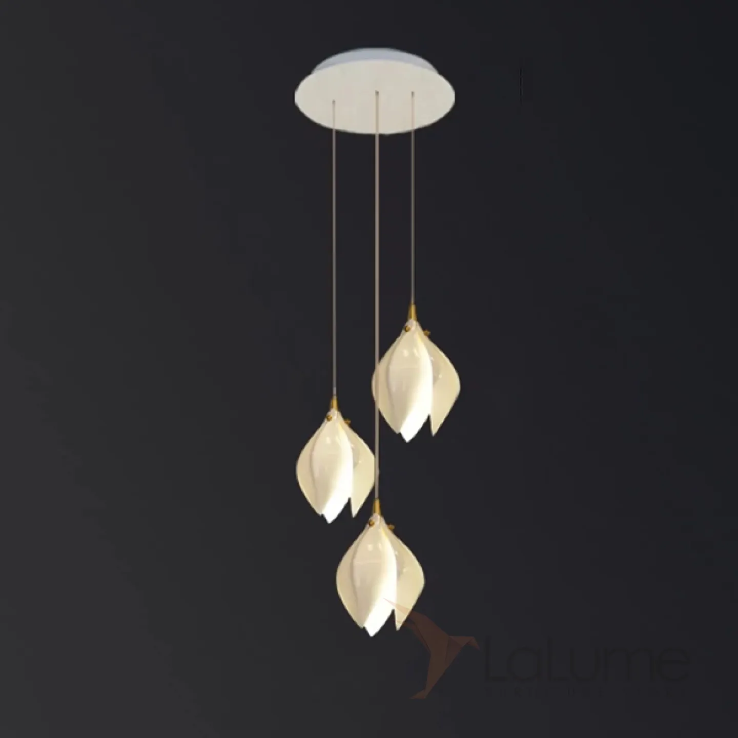 Готовая комбинация подвесных светильников с каплевидными плафонами из нефритового фарфора в форме белых бутонов LEA MORE D22
