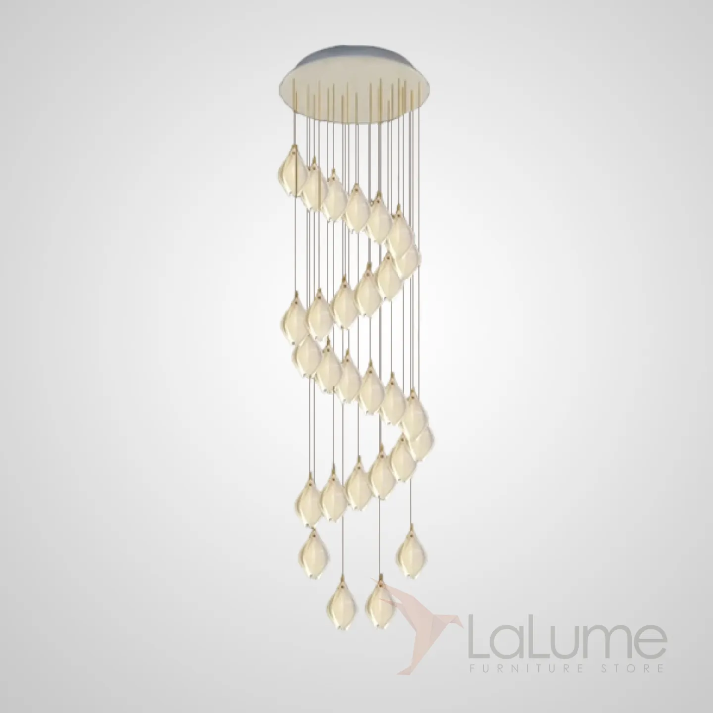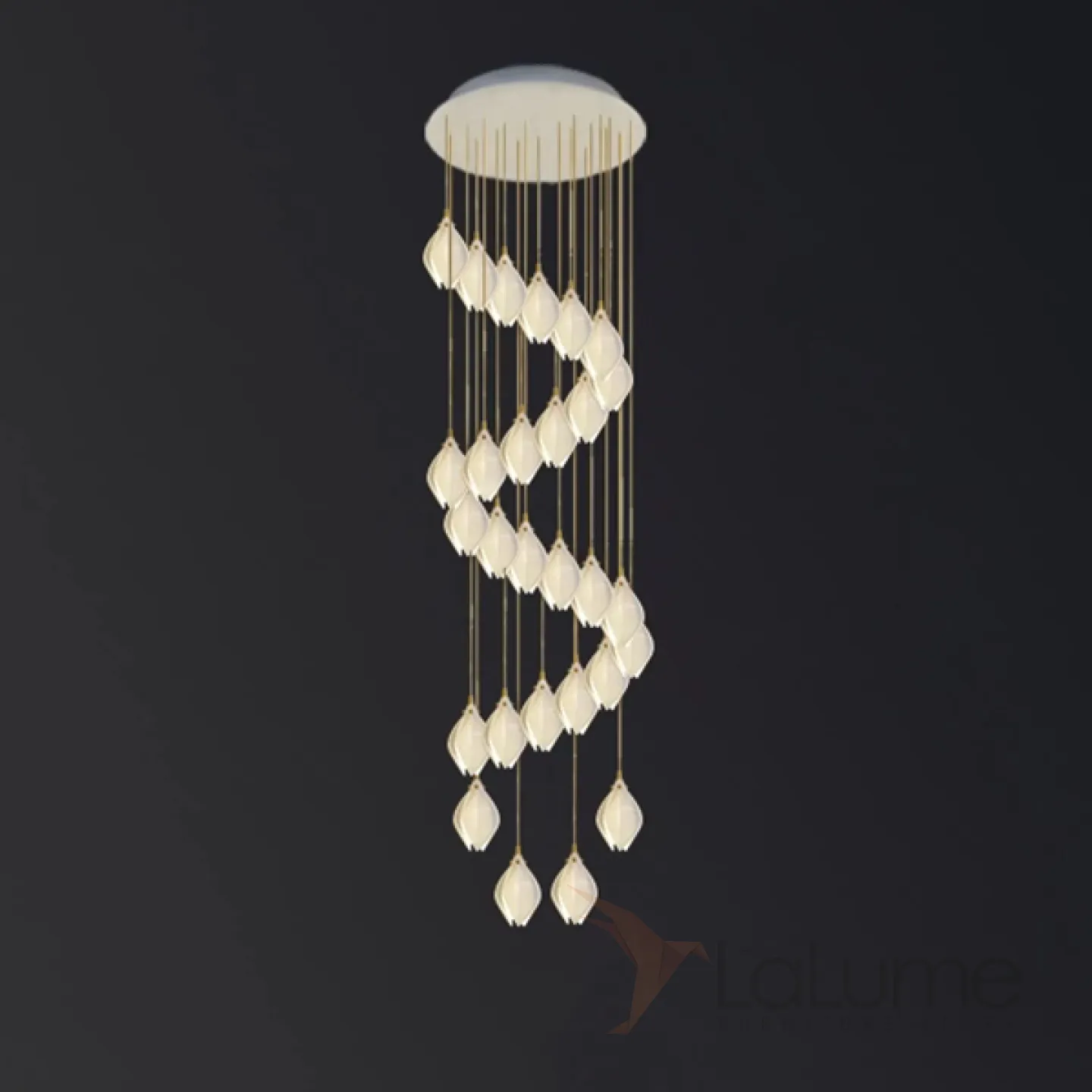 Готовая комбинация подвесных светильников с каплевидными плафонами из нефритового фарфора в форме белых бутонов LEA MORE D60