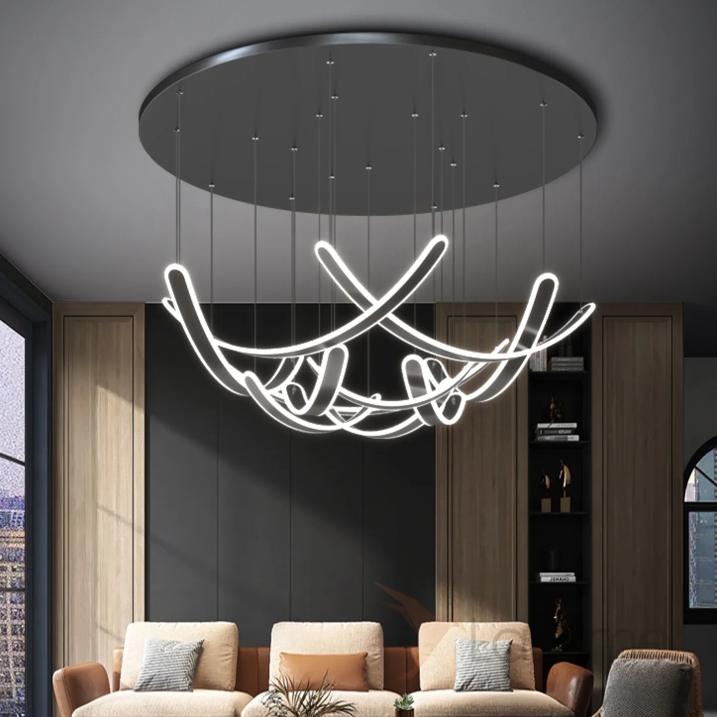Готовая комбинация подвесных светодиодных светильников c вытянутыми изогнутыми плафонами со скругленными краями TEOLINE DISK L40+60