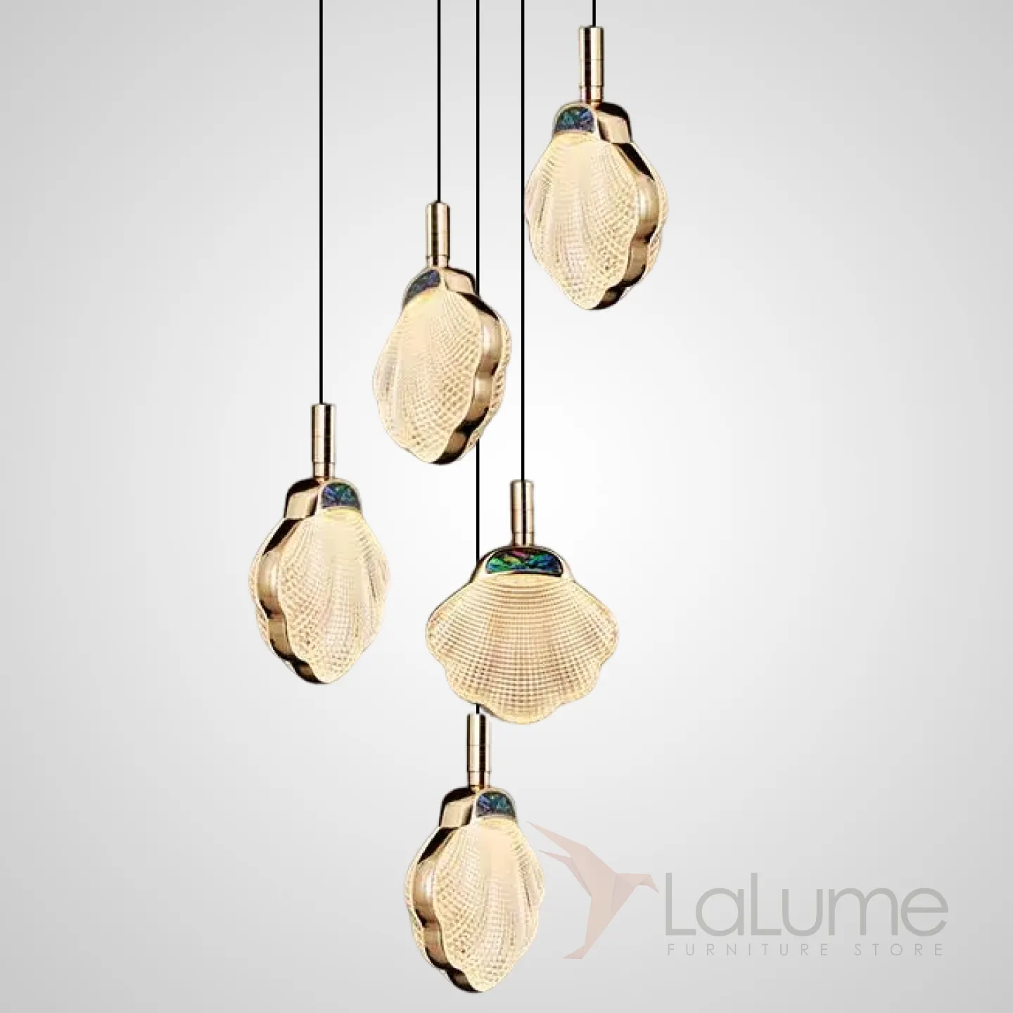 Готовая комбинация подвесных светодиодных светильников с рельефными плафонами в форме ракушек с перламутровыми вставками RAPHAELA MORE L5