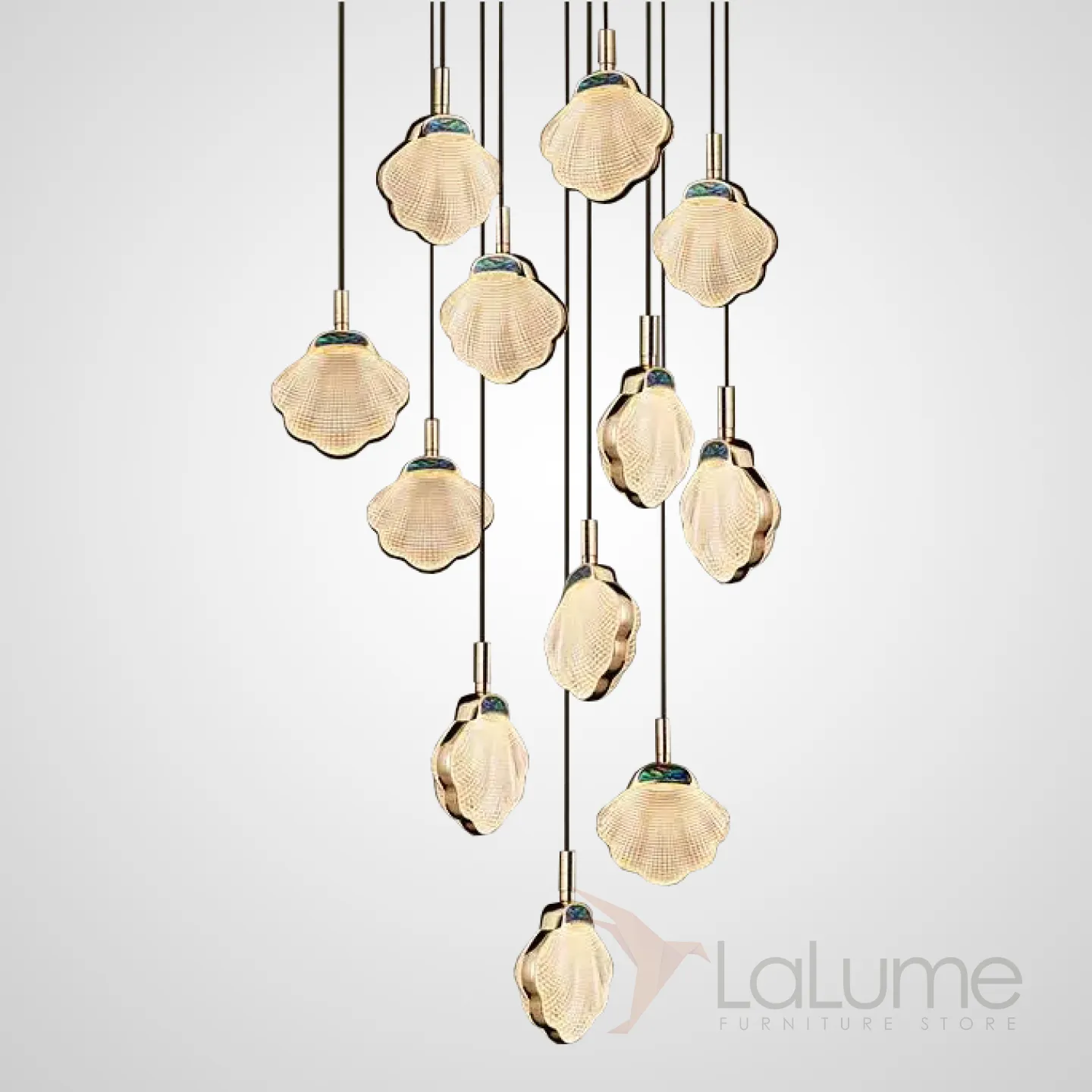Готовая комбинация подвесных светодиодных светильников с рельефными плафонами в форме ракушек с перламутровыми вставками RAPHAELA MORE L12