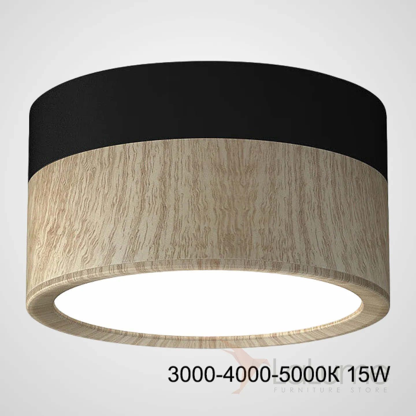 Серия накладных точечных светильников с черным или белым основанием и корпусом с окраской, имитирующей светлое дерево FOG WOOD