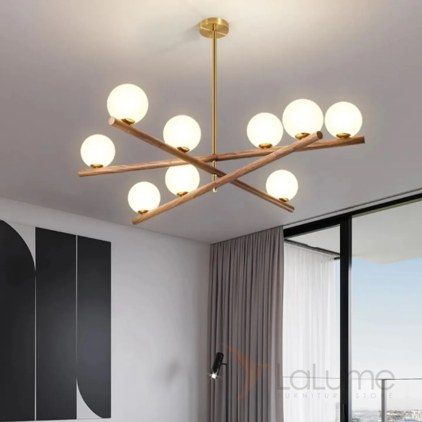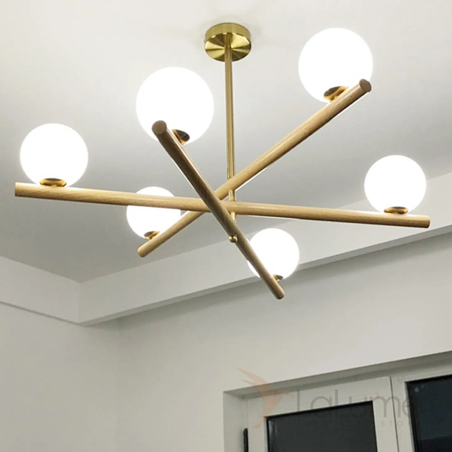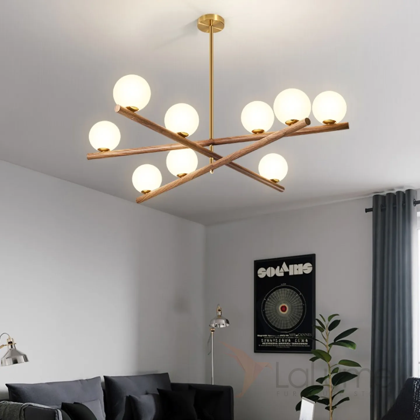 Люстра со стеклянными шарообразными плафонами на деревянных перекрещенных рожках PRIMA