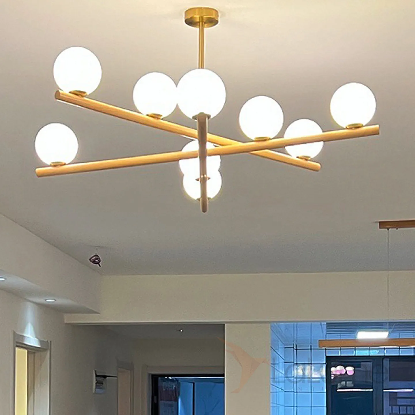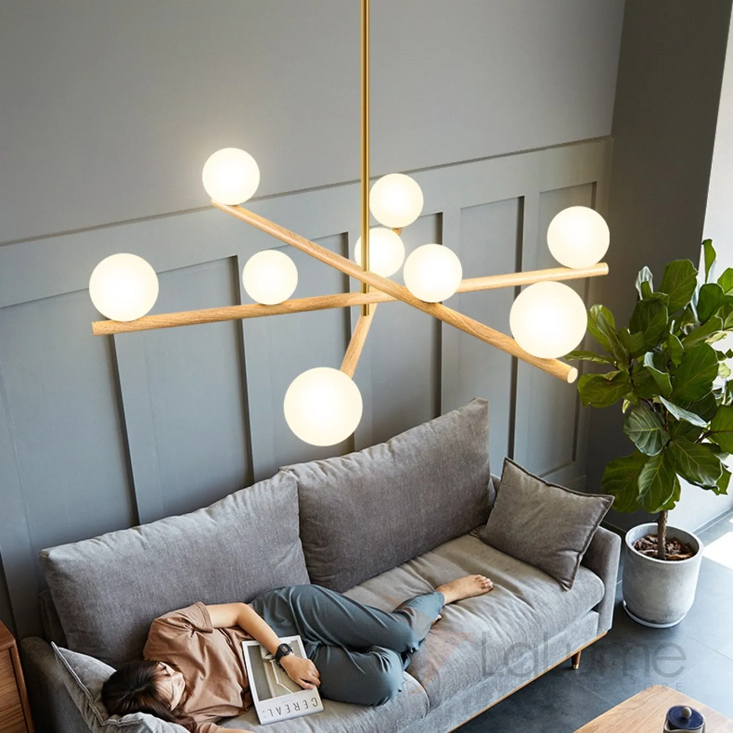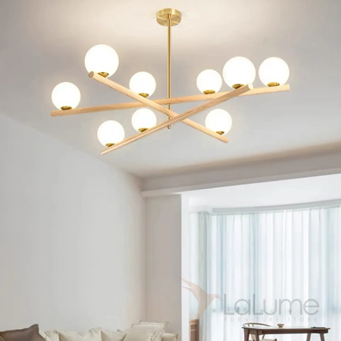 Люстра со стеклянными шарообразными плафонами на деревянных перекрещенных рожках PRIMA