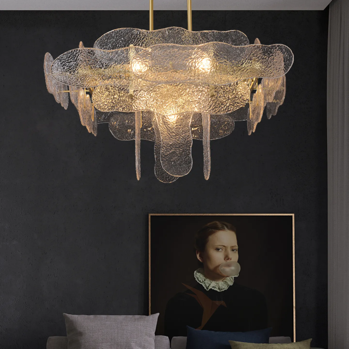 Люстра с плафоном из стеклянных рельефных пластин MELIA