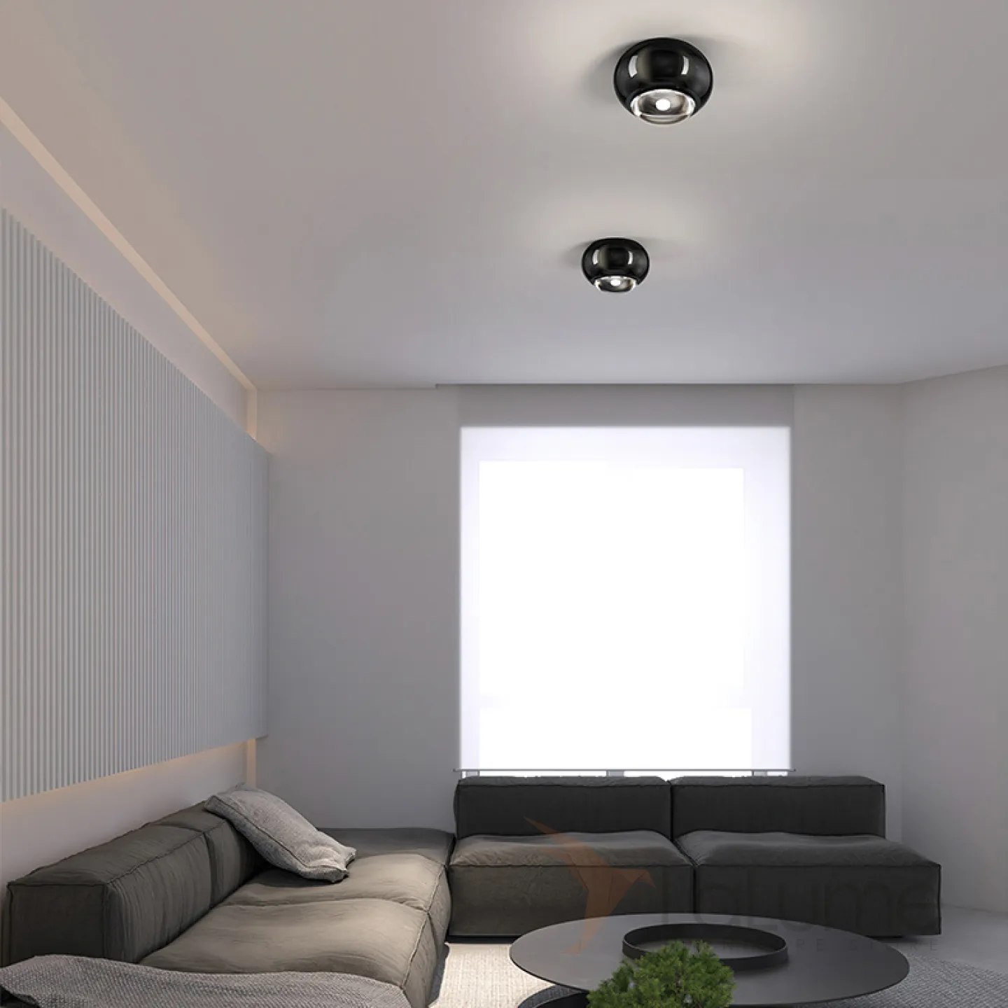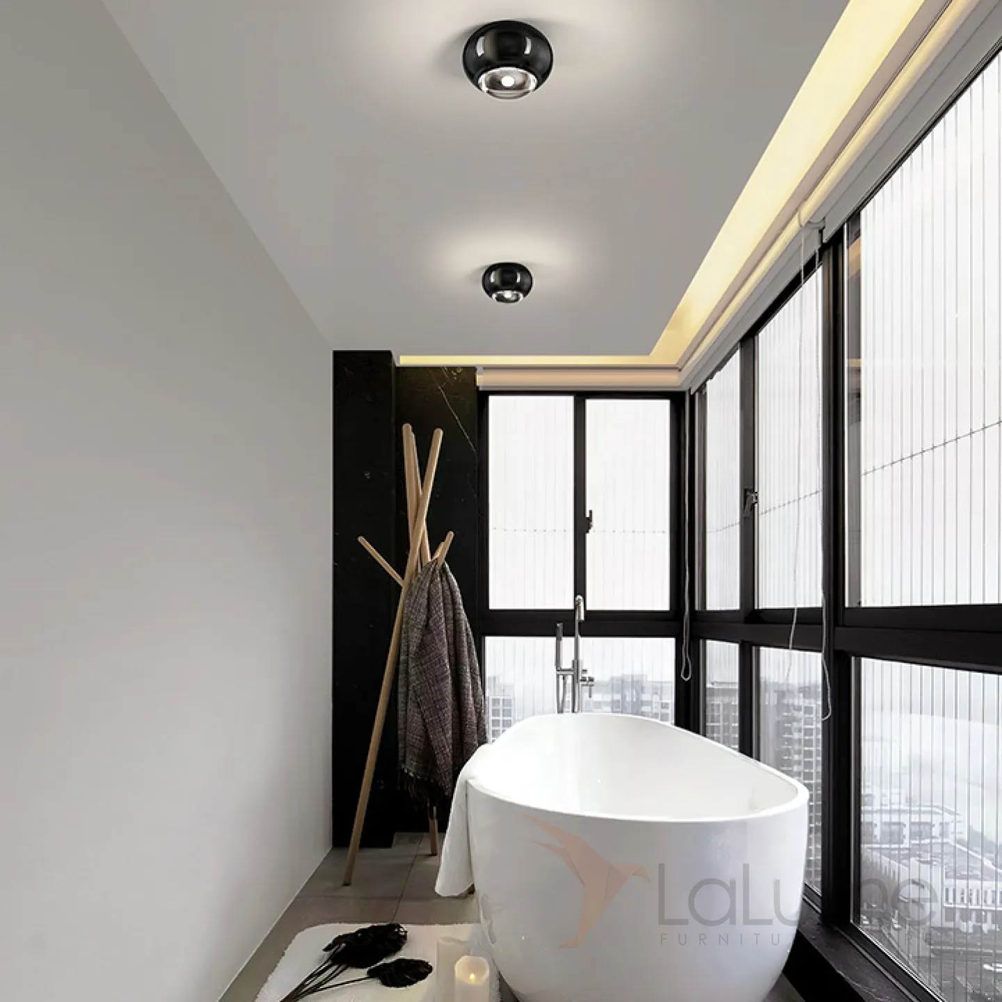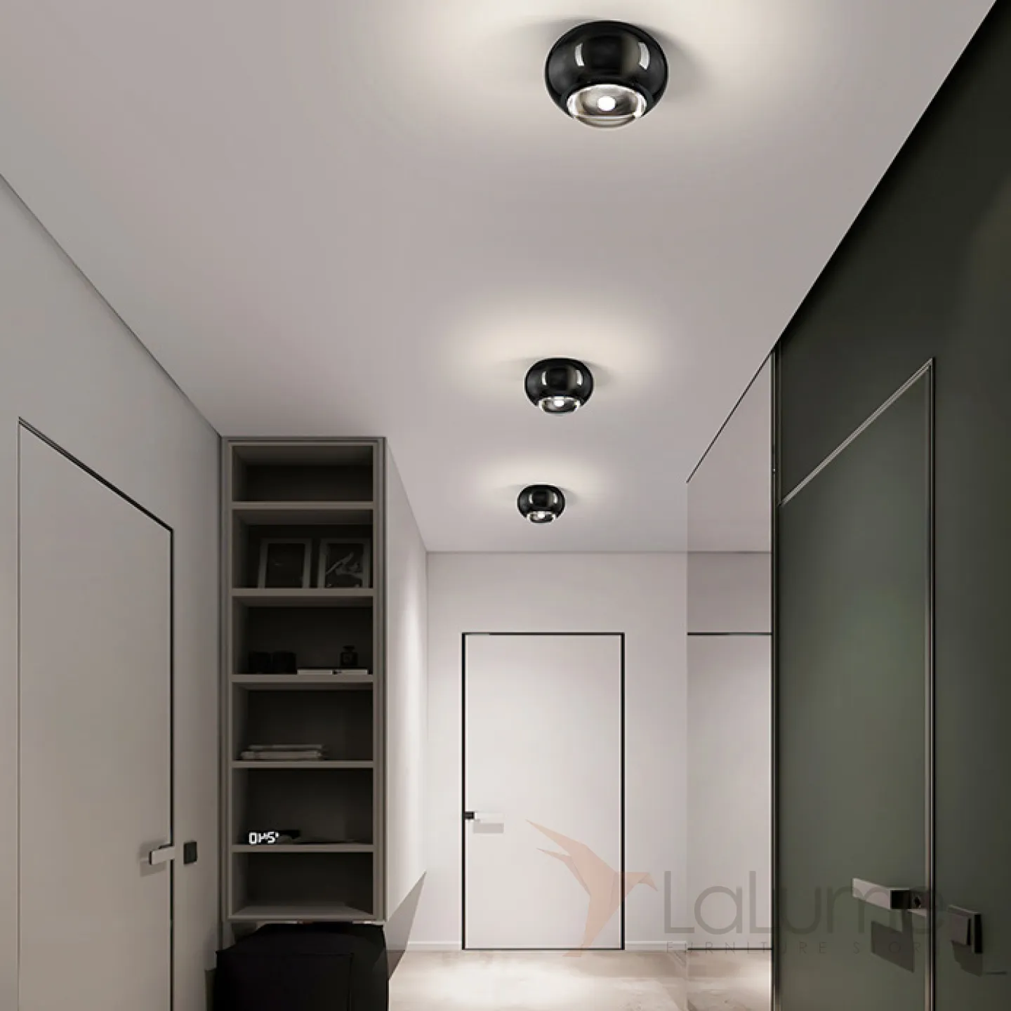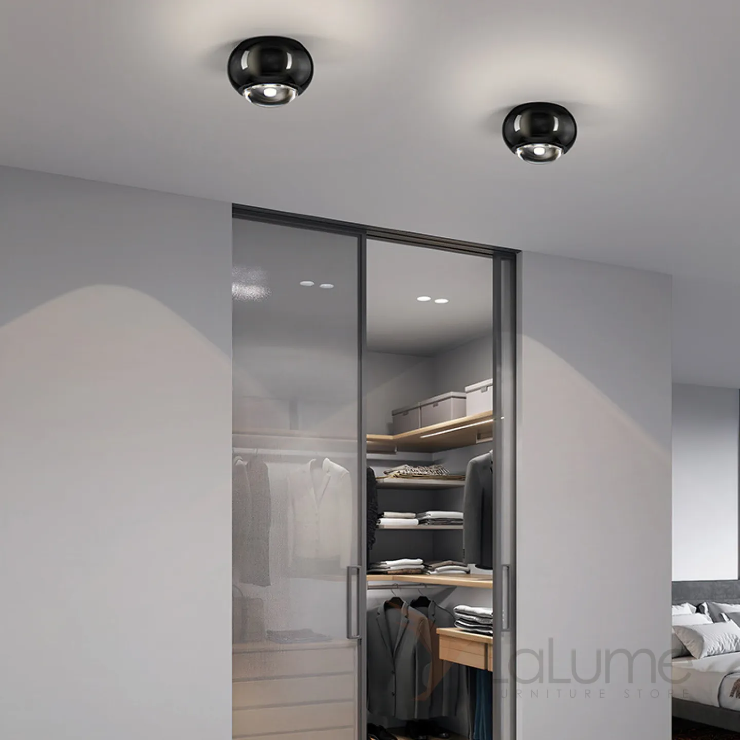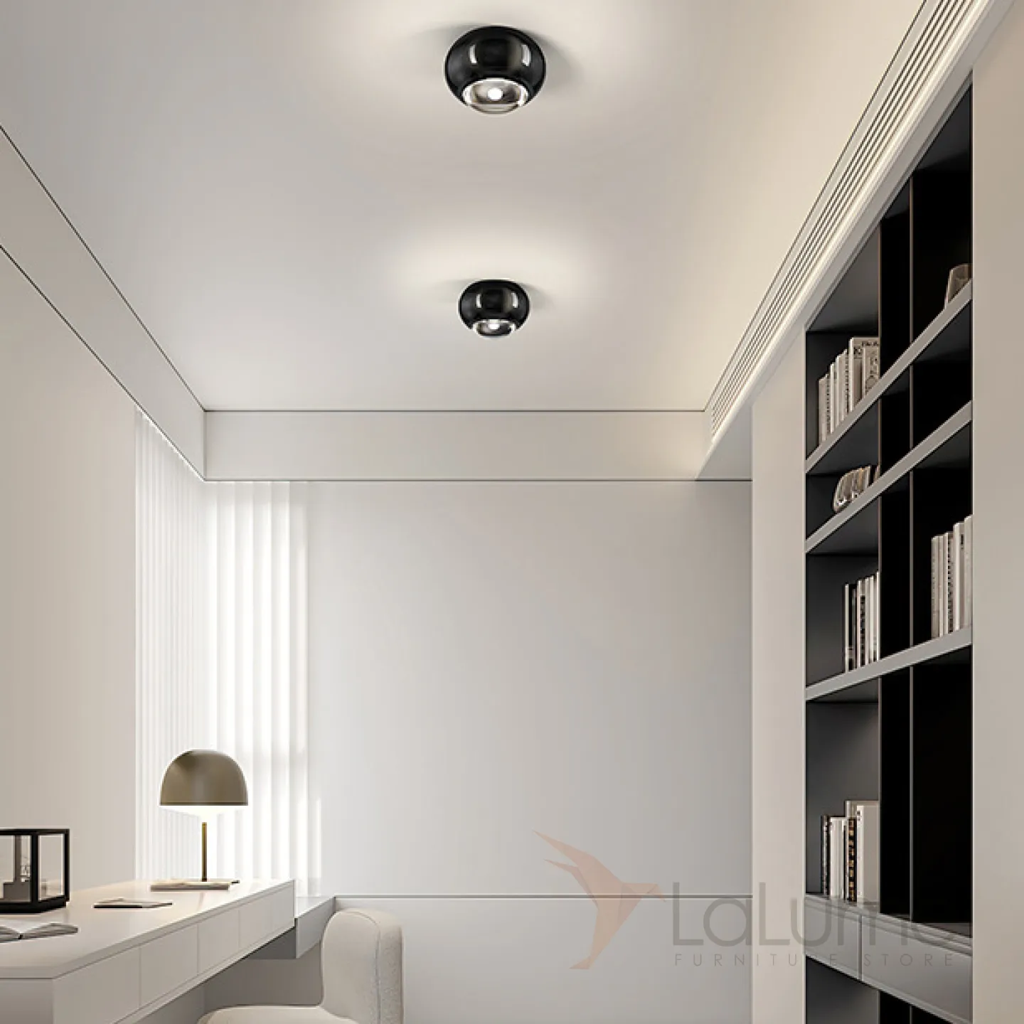 Точечный светодиодный светильник с черным глянцевым корпусом шаровидной формы со встроенной оптической линзой AMDI