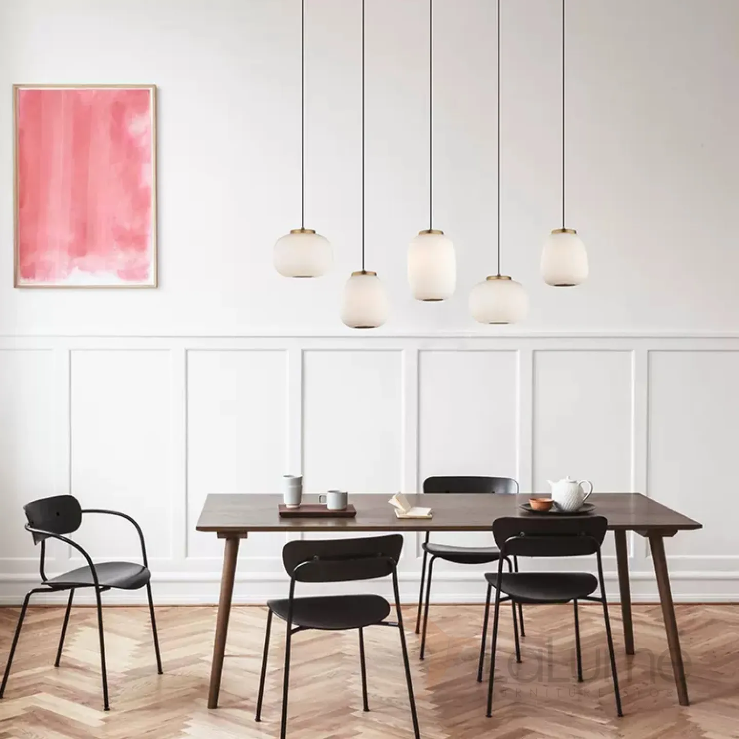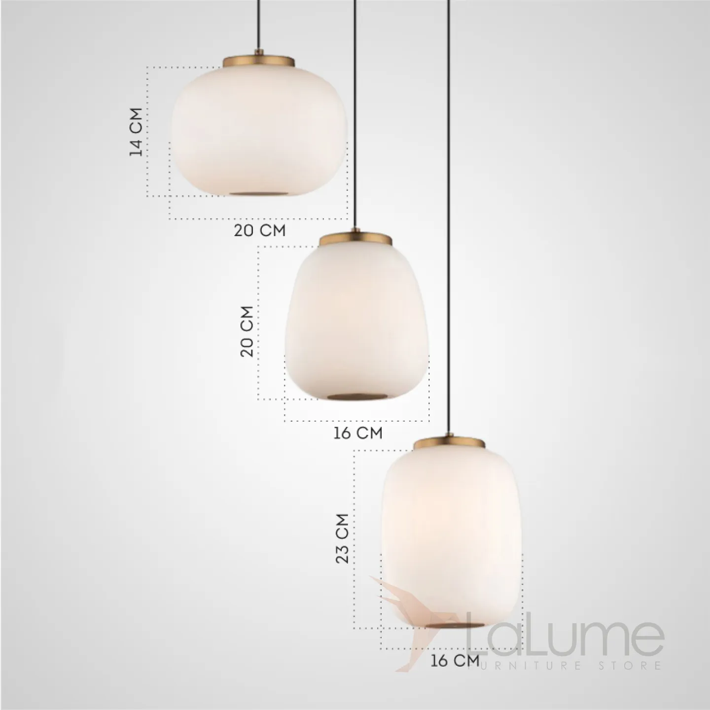 Готовая комбинация подвесных светодиодных светильников c белыми шарообразными плафонами из матового стекла HEMING COMBO L5 C Планка